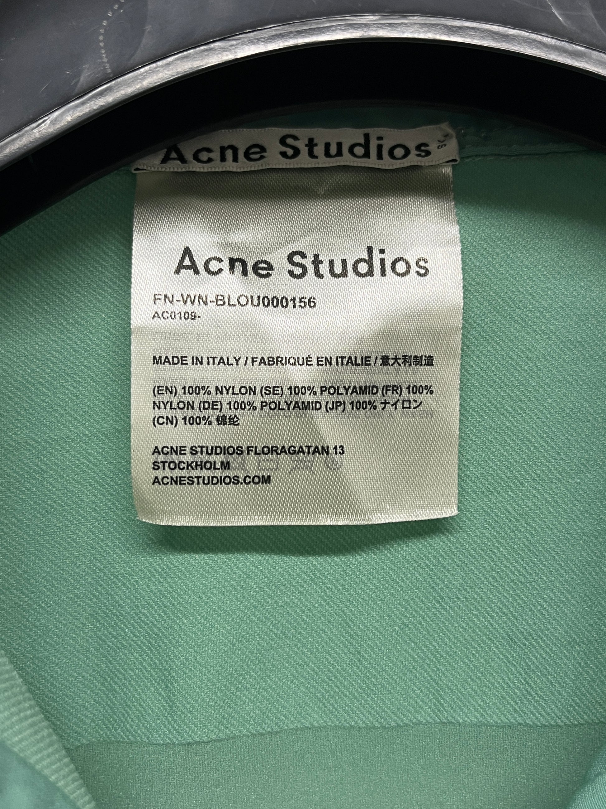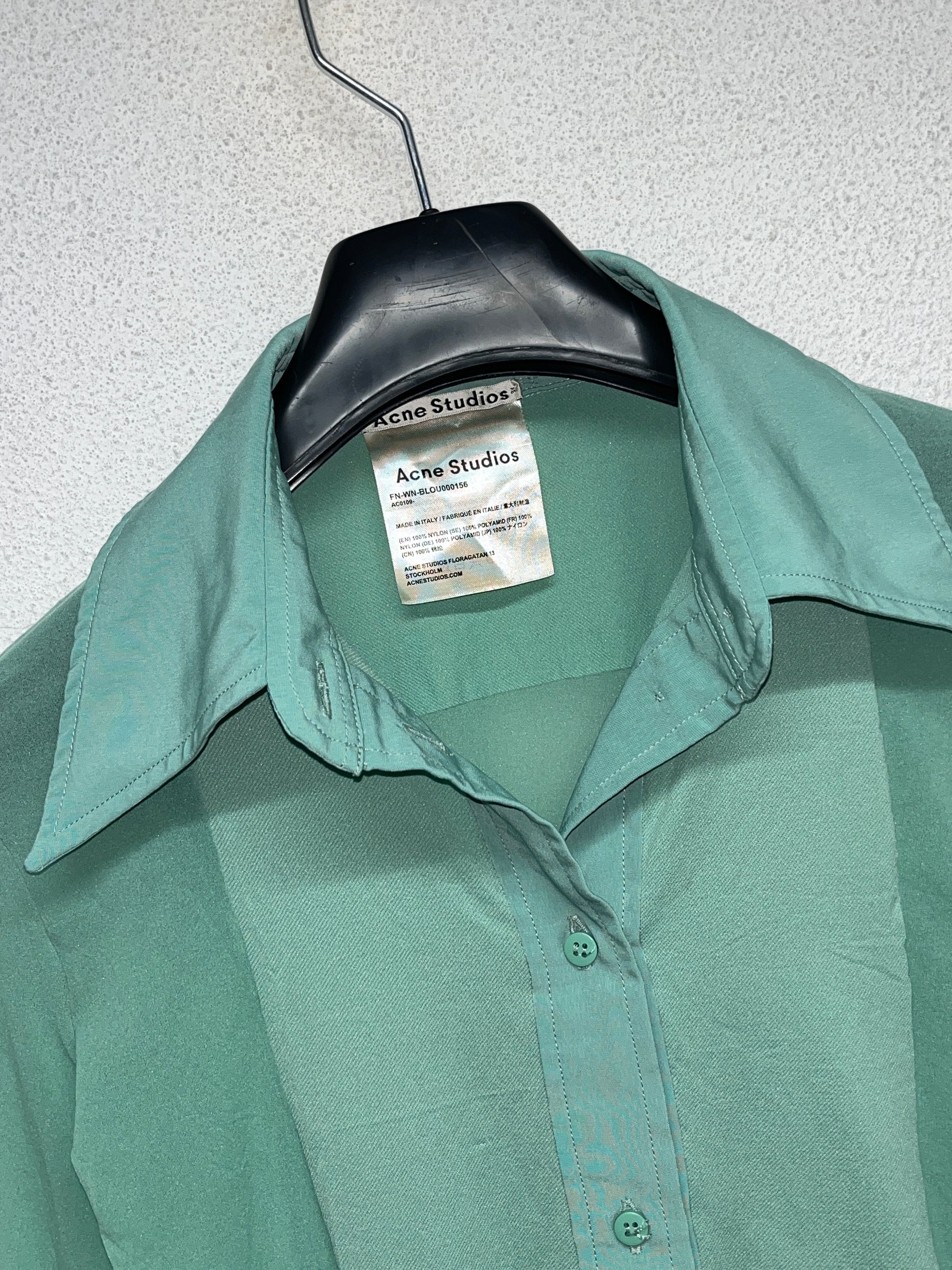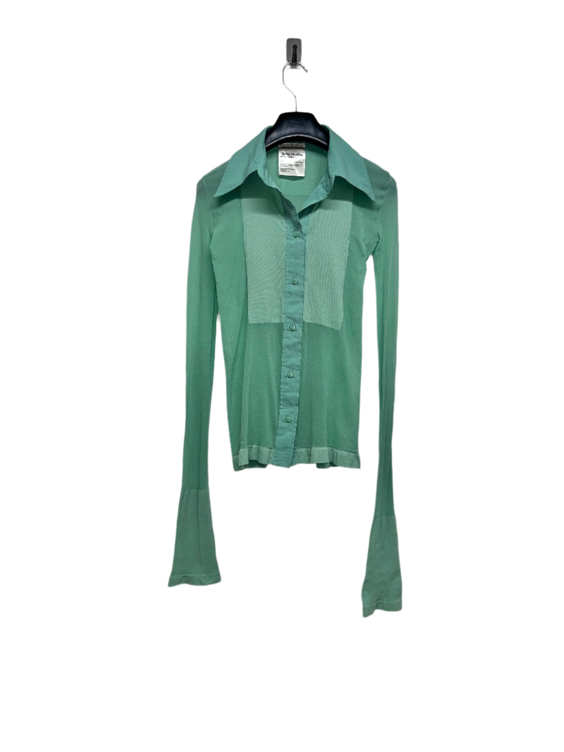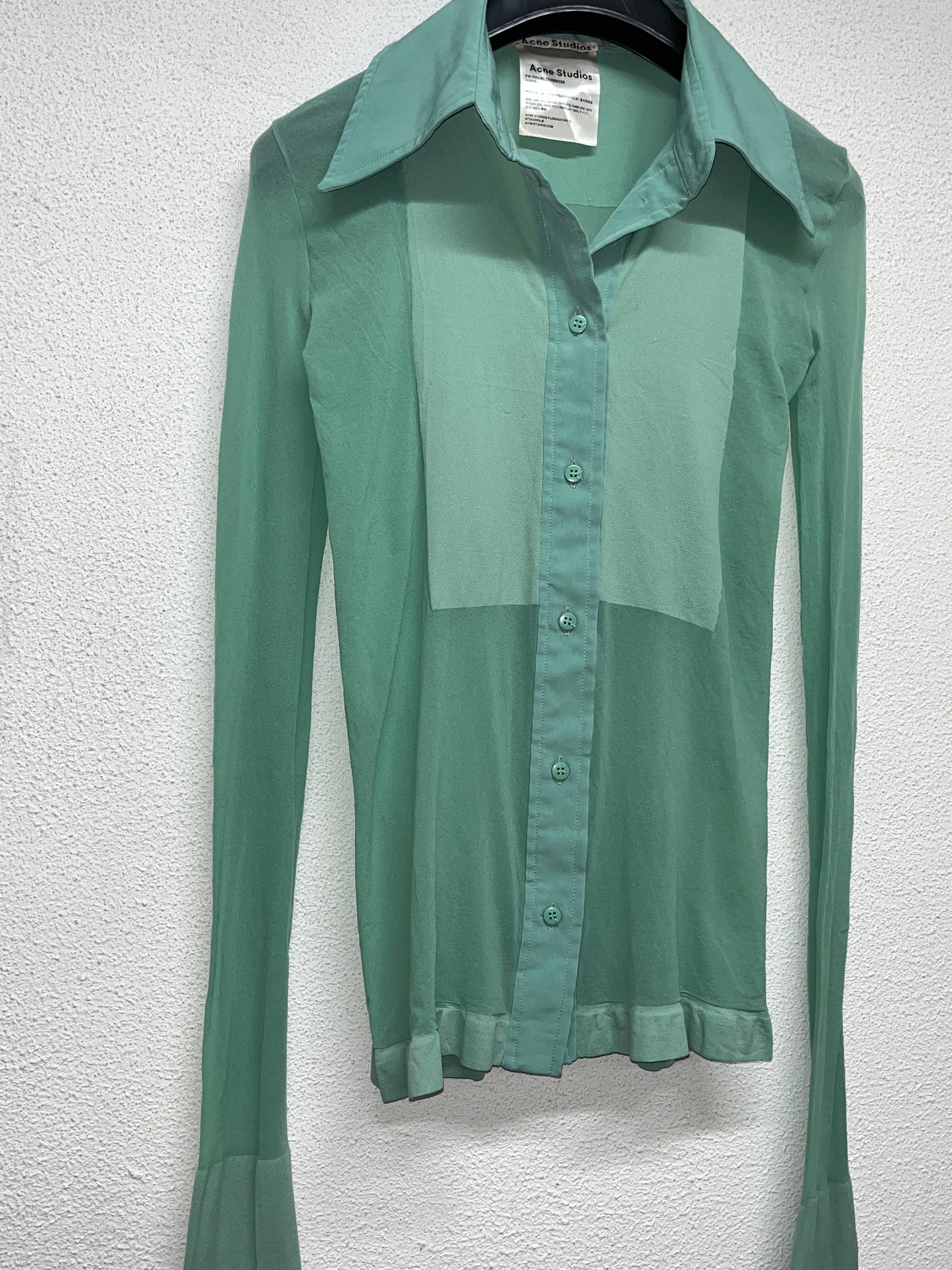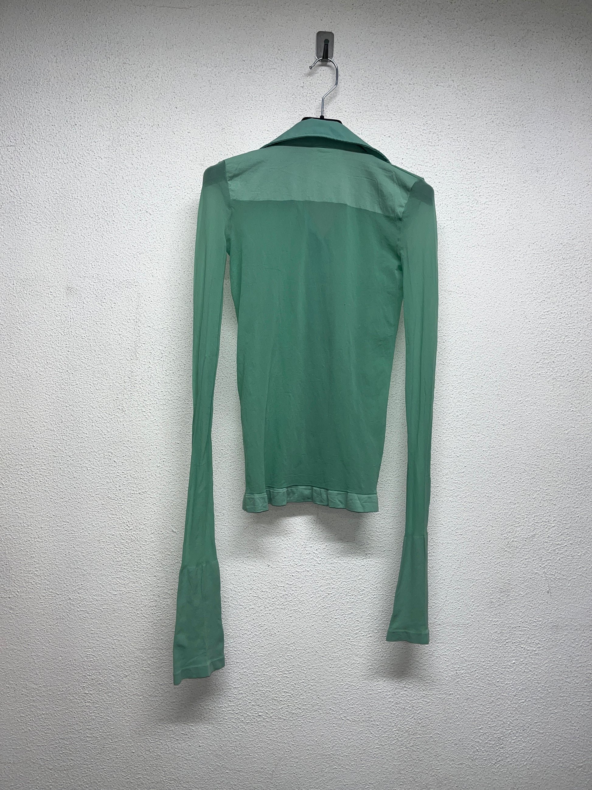 ACNE STUDIOS green sheer nylon stretchy shirt with extended sleeves (XS)