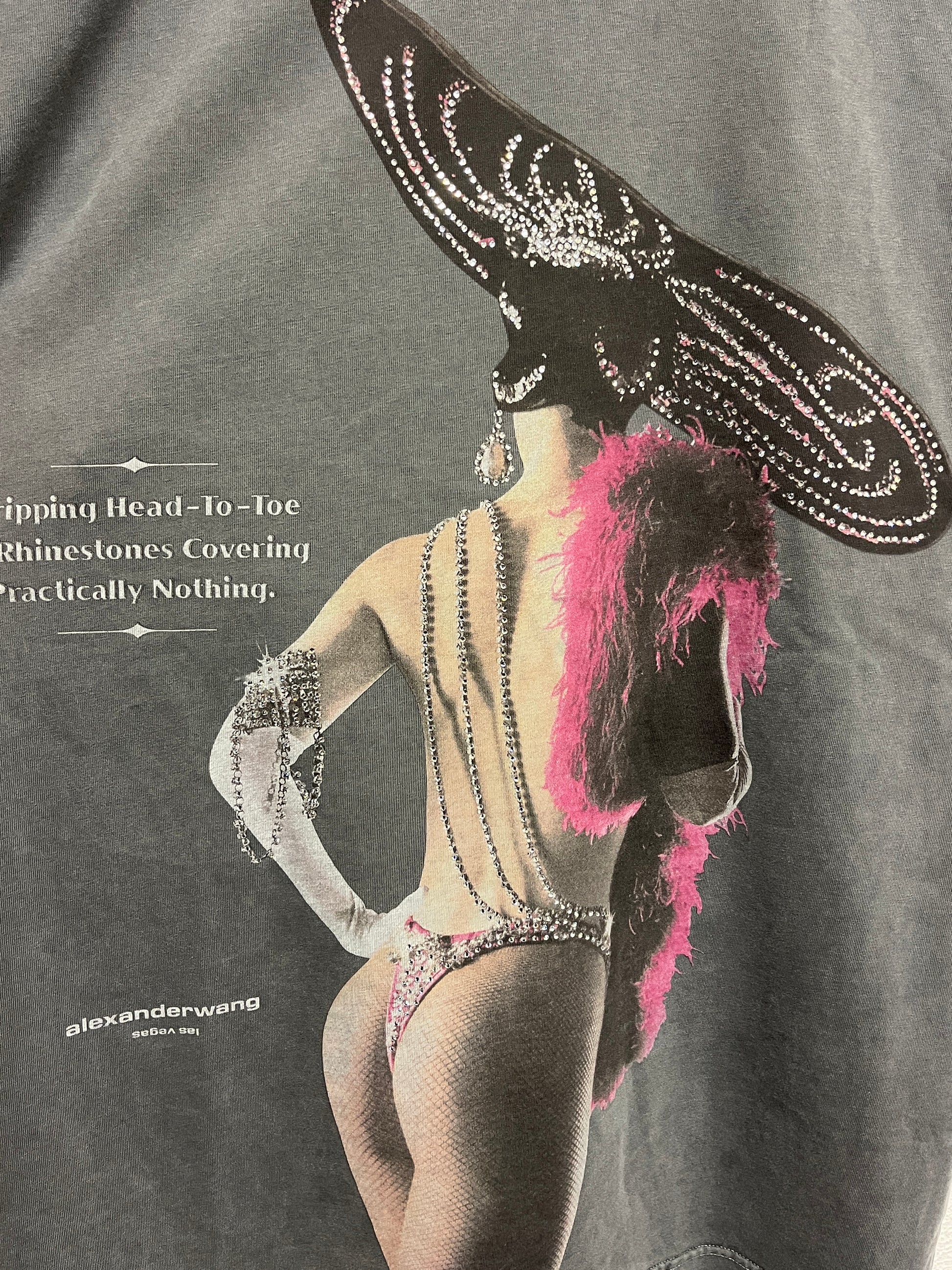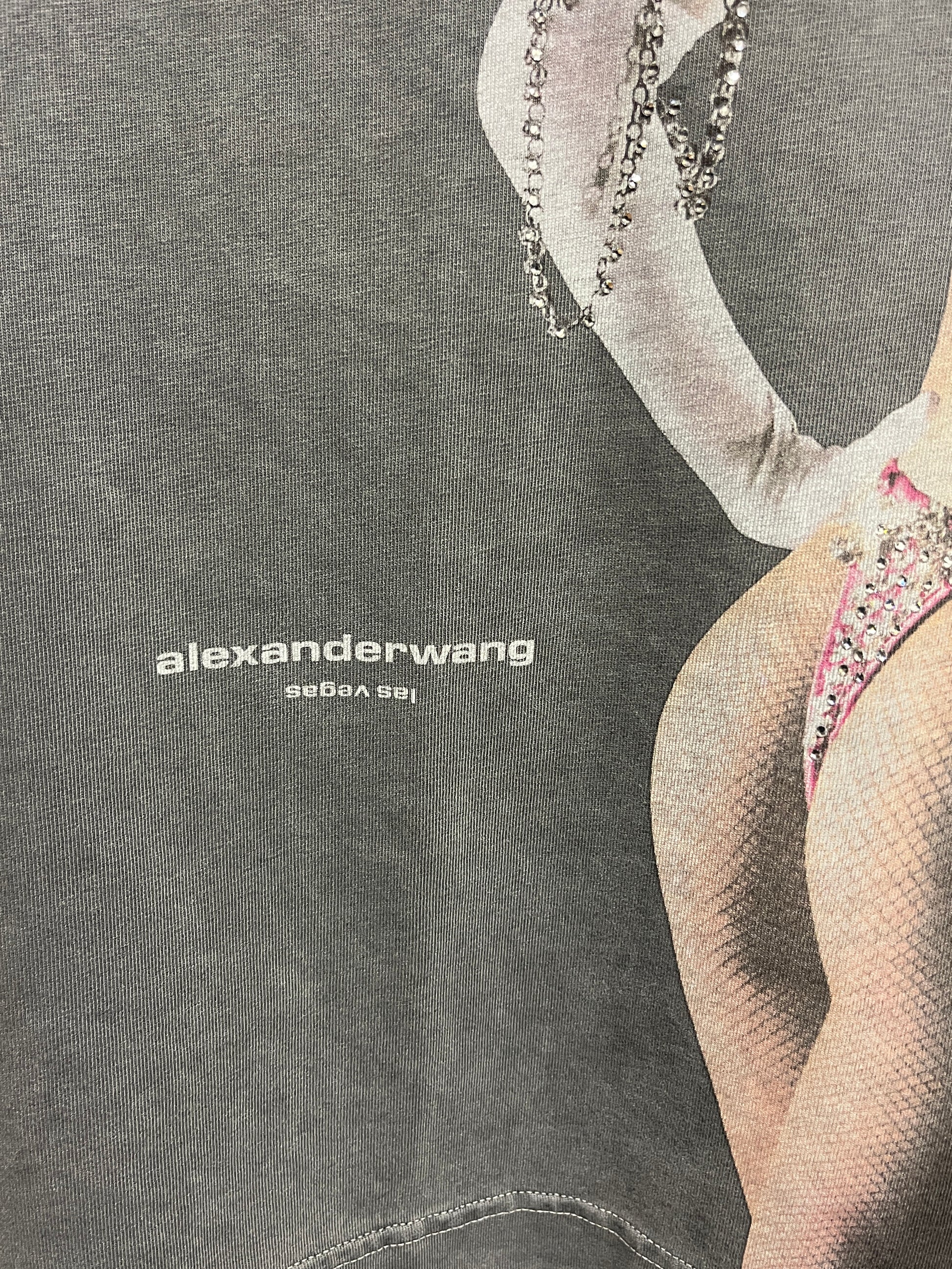 ALEXANDER WANG grey graphic tee with rhinestones (XL)