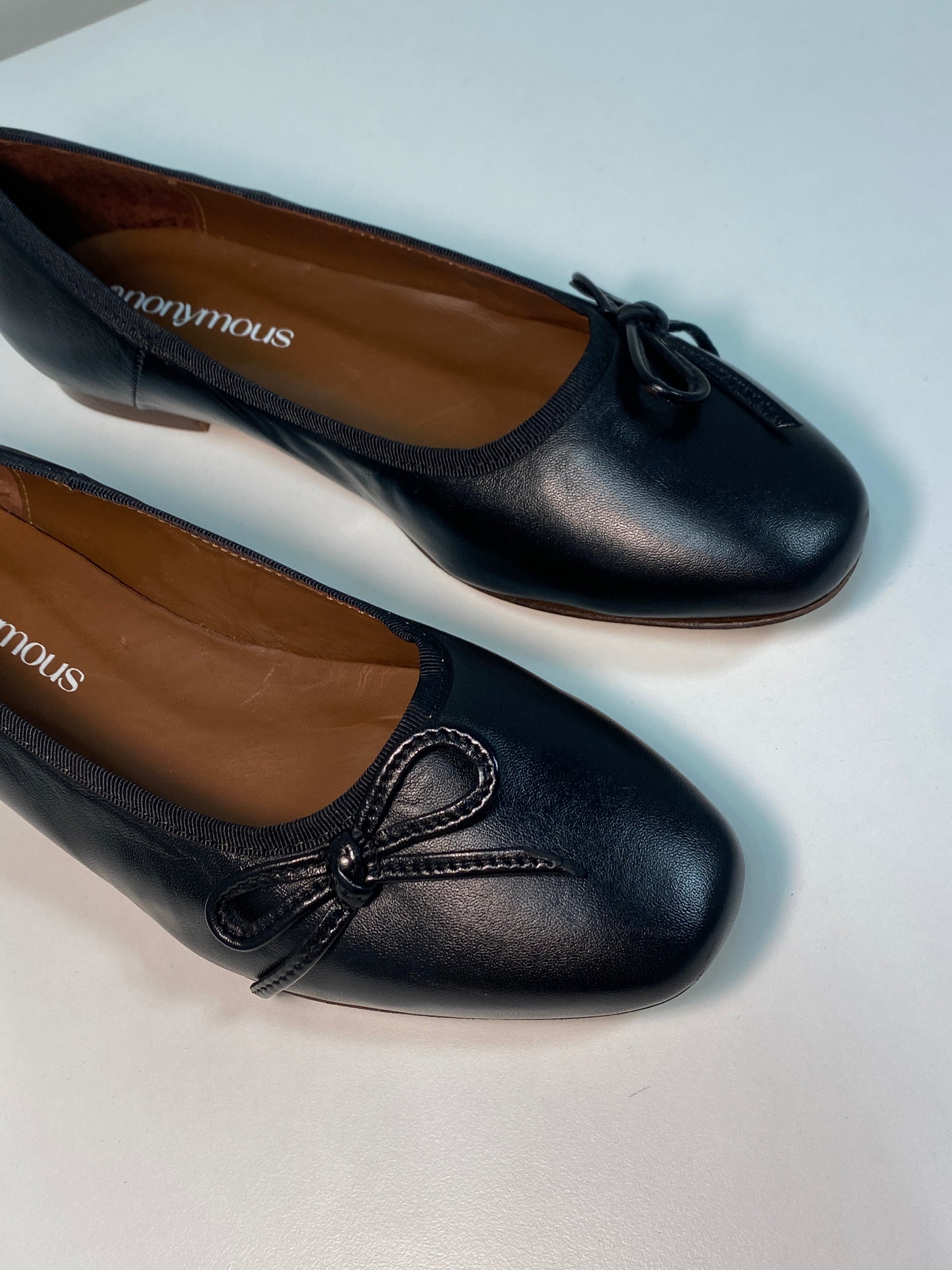 ANONYMOUS COPENHAGEN black leather ballet bow flats