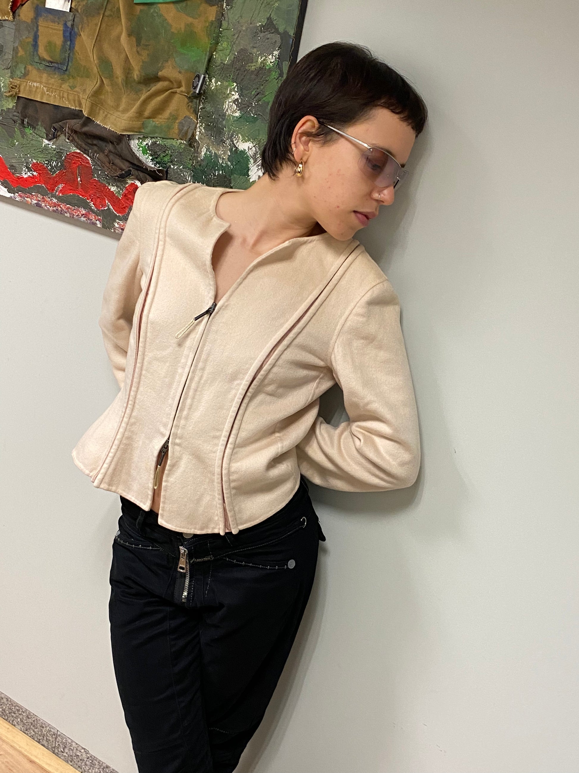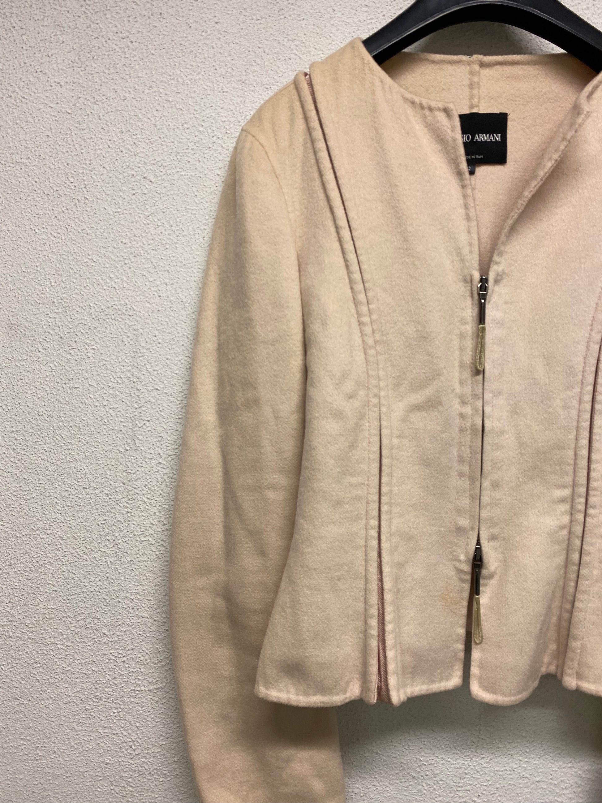 ARMANI corseted zip up cashemere beige blazer-jacket, tiny flaw as shown