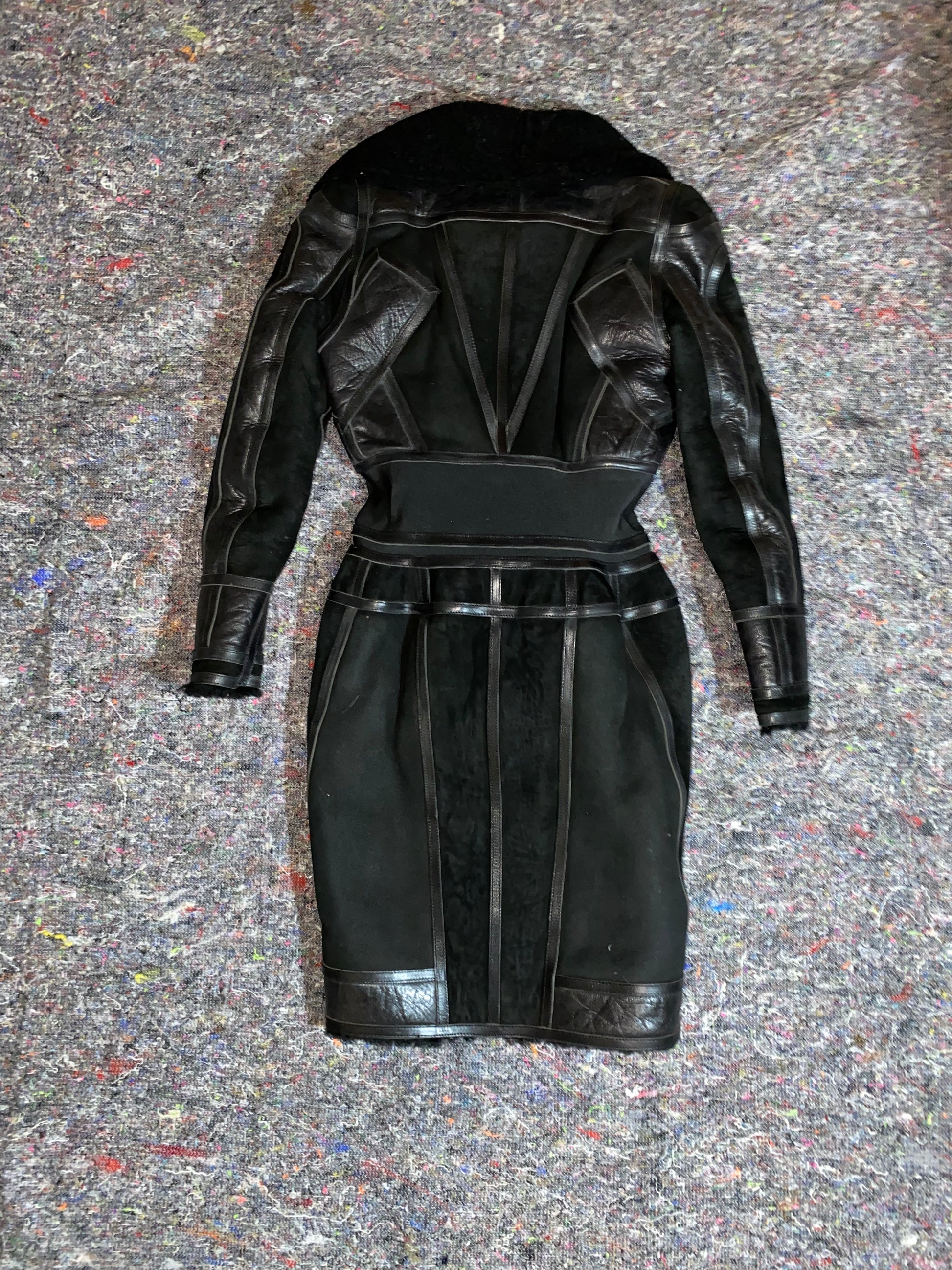 BALENCIAGA shearling lined suede and leather 2007 runway corset coat by Nicholas Ghesquière