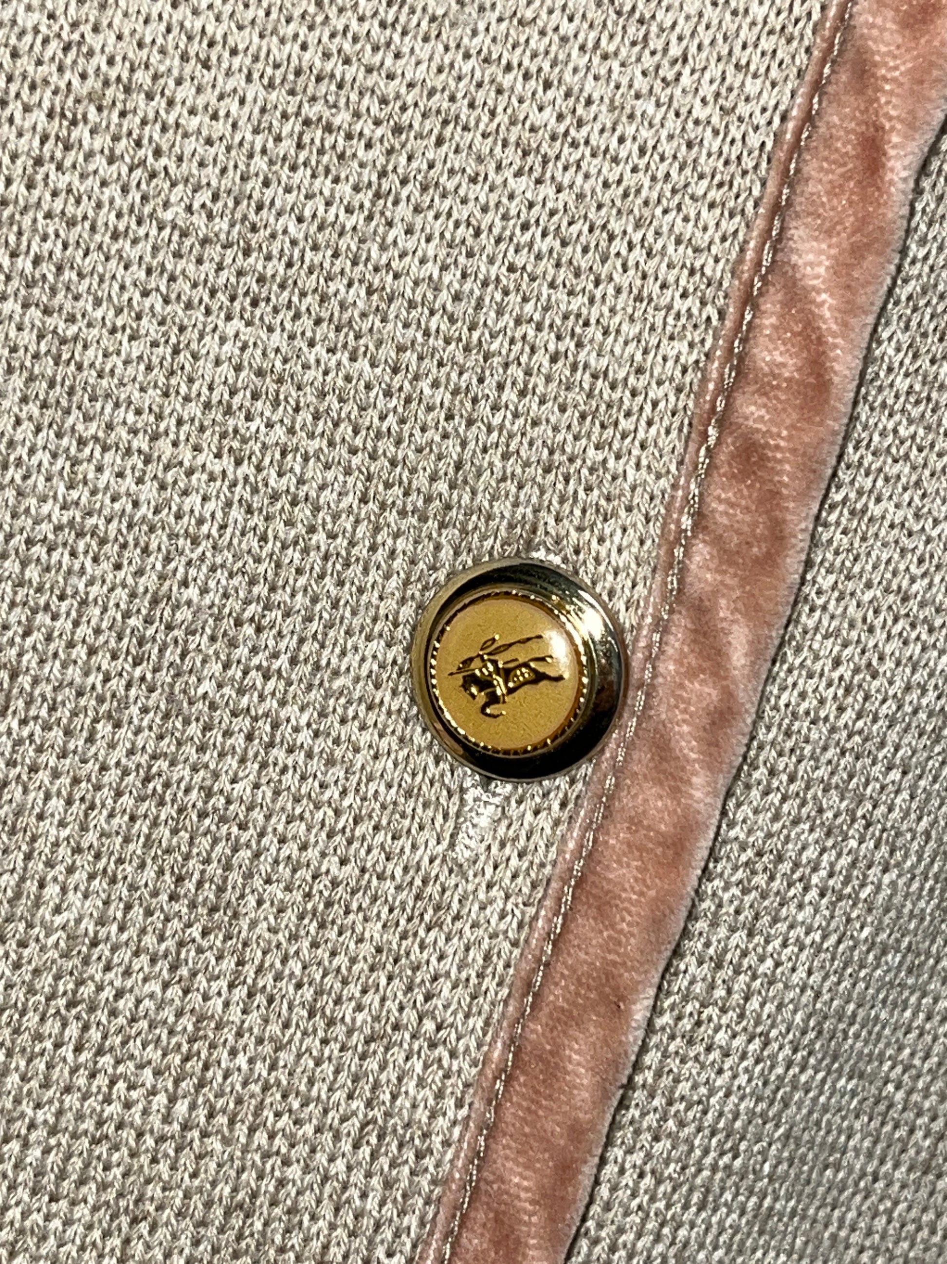 BURBERRY beige cotton blazer with peach orange velvet detailing and golden logo buttons