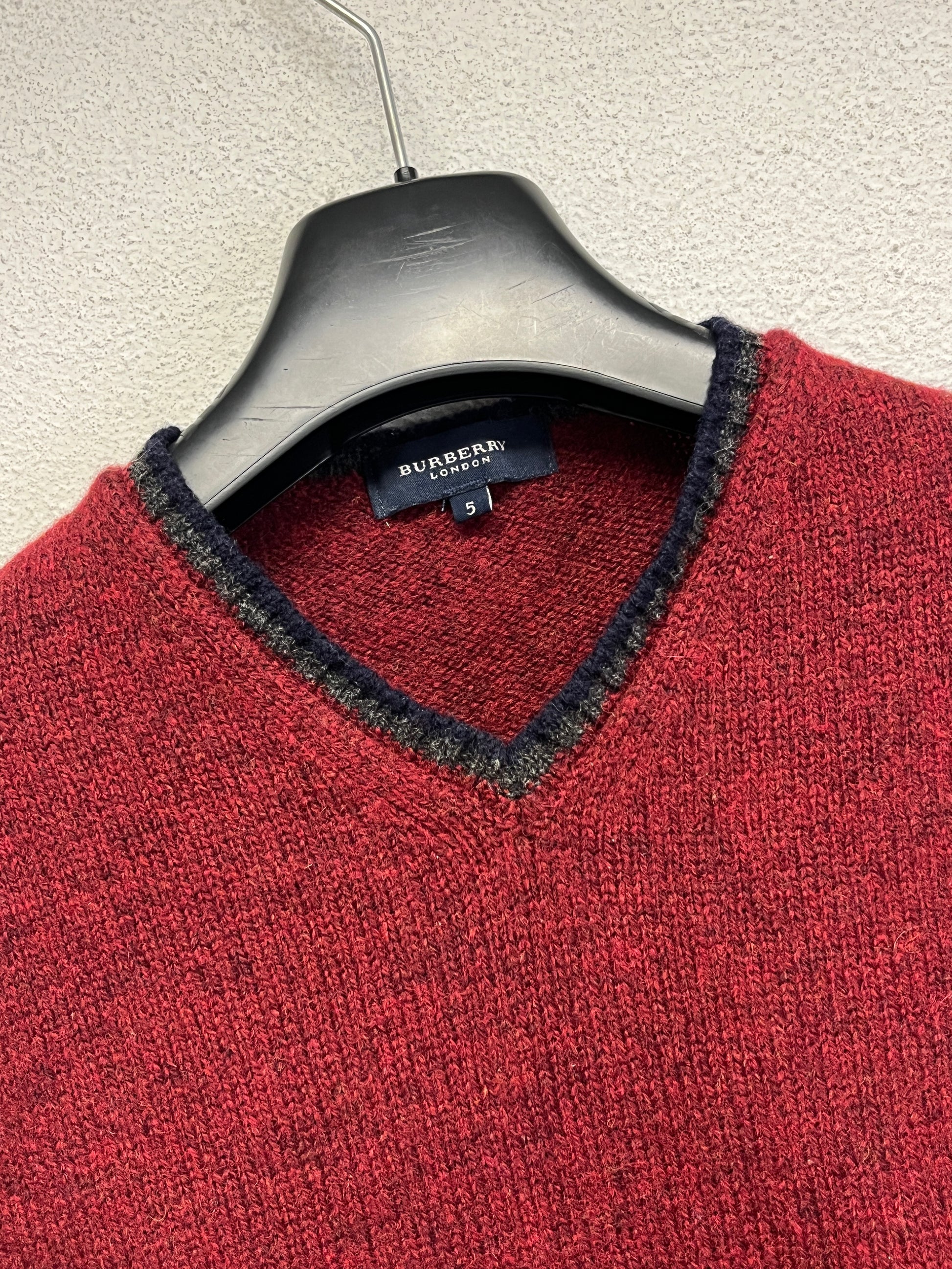 BURBERRY red wool V neck vest