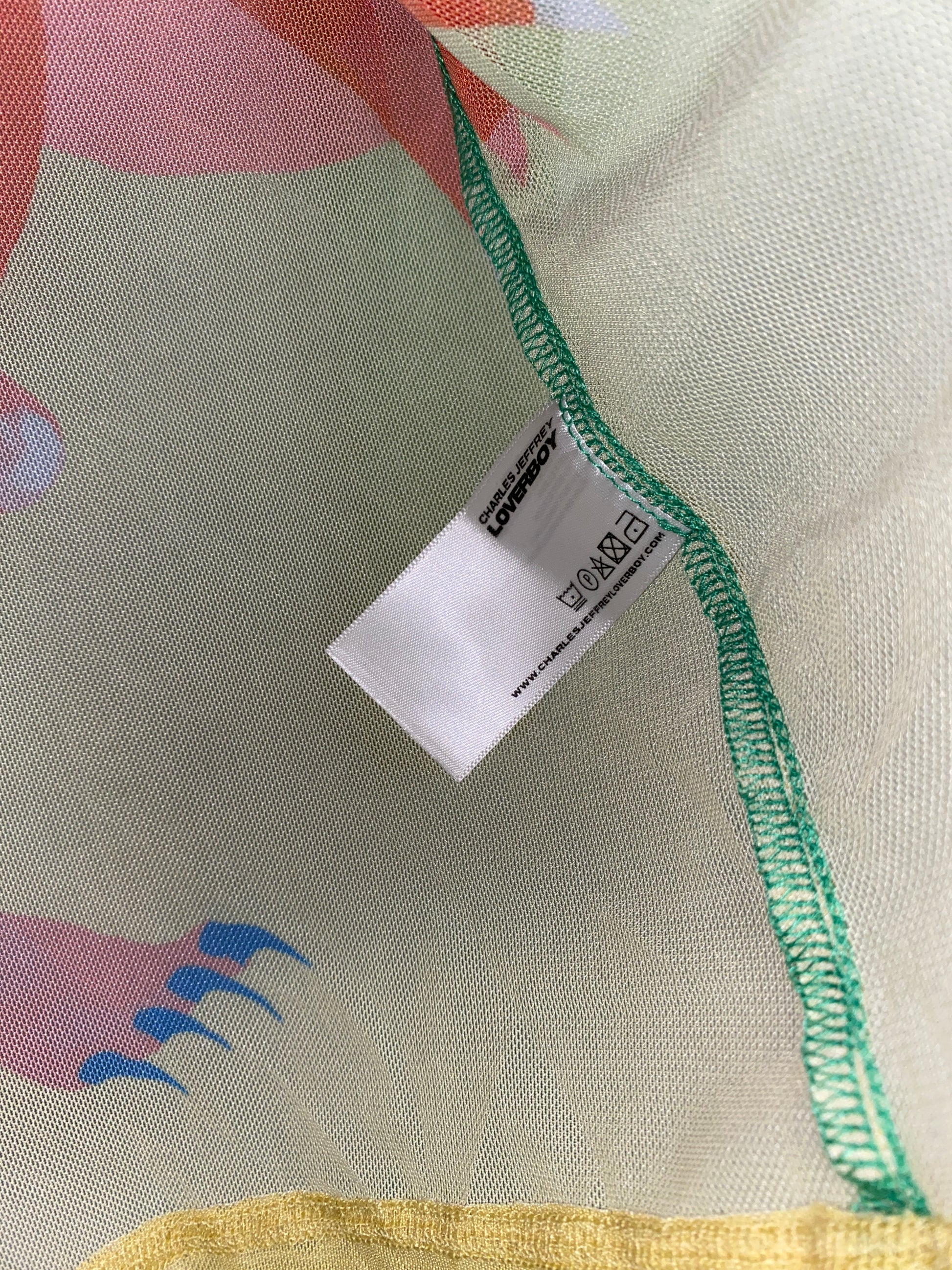 CHARLES JEFFREY LOVERBOY multicolour graphic longsleeve mesh top, condition like new but has a small flaw in the back of one sleeve as seen in the last photo