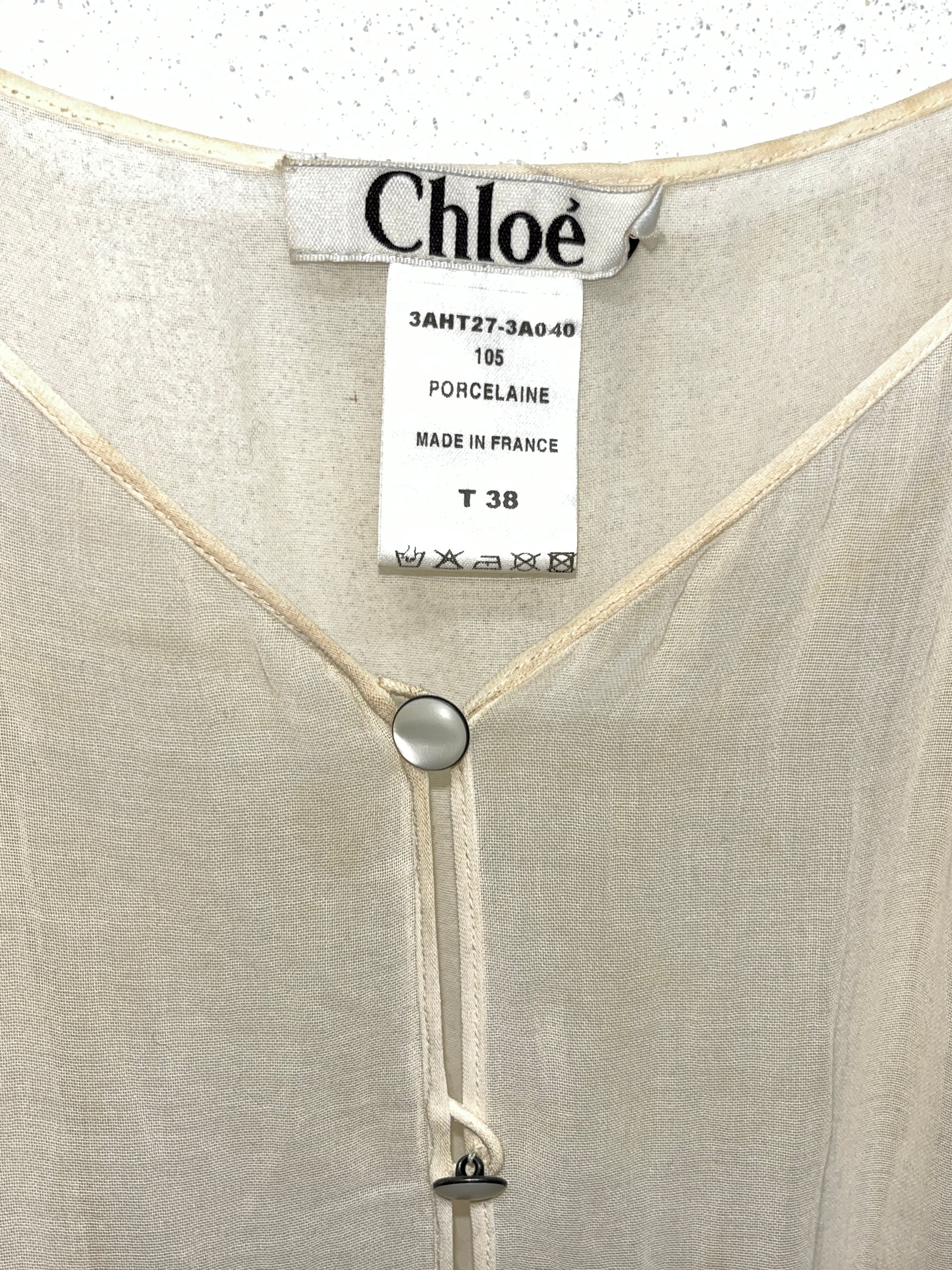 CHLOÉ “porcelaine” cotton sheer button-up camy top