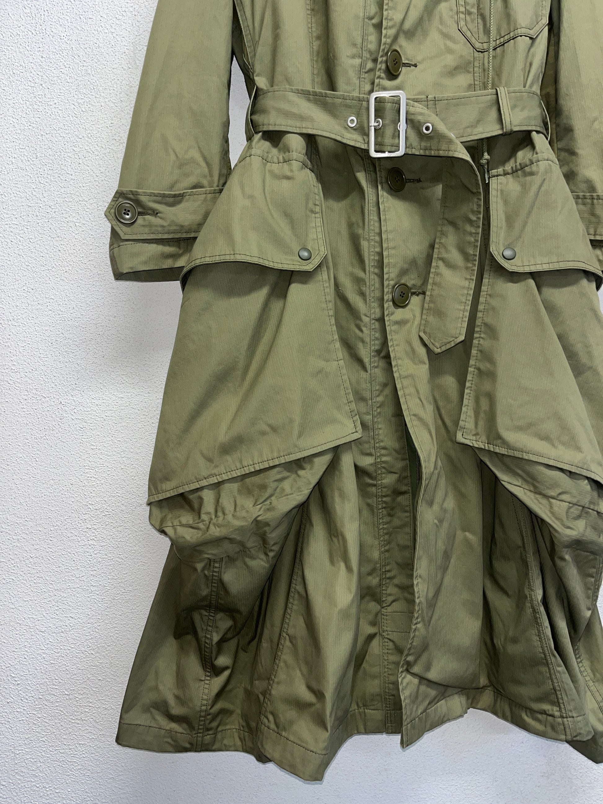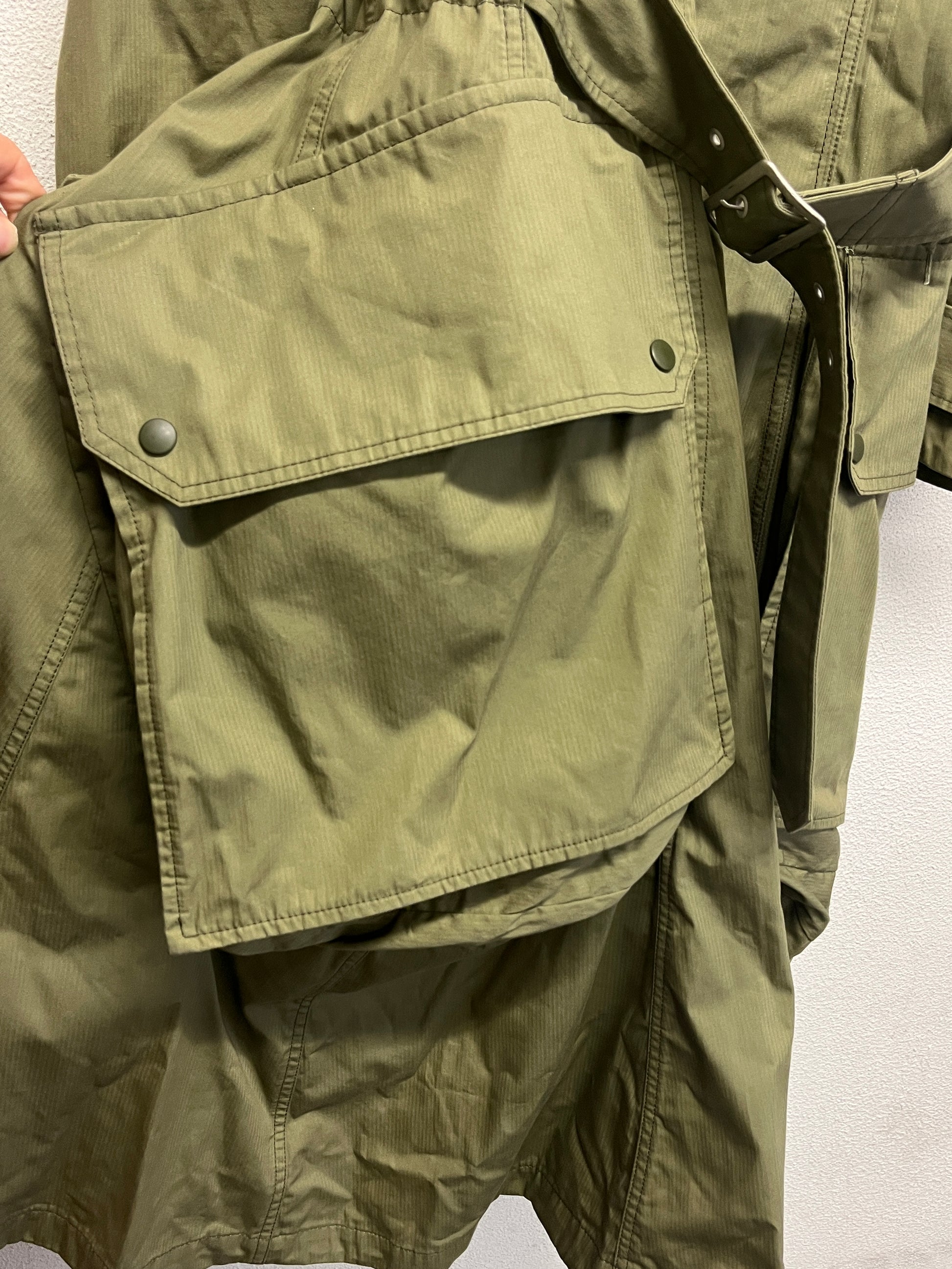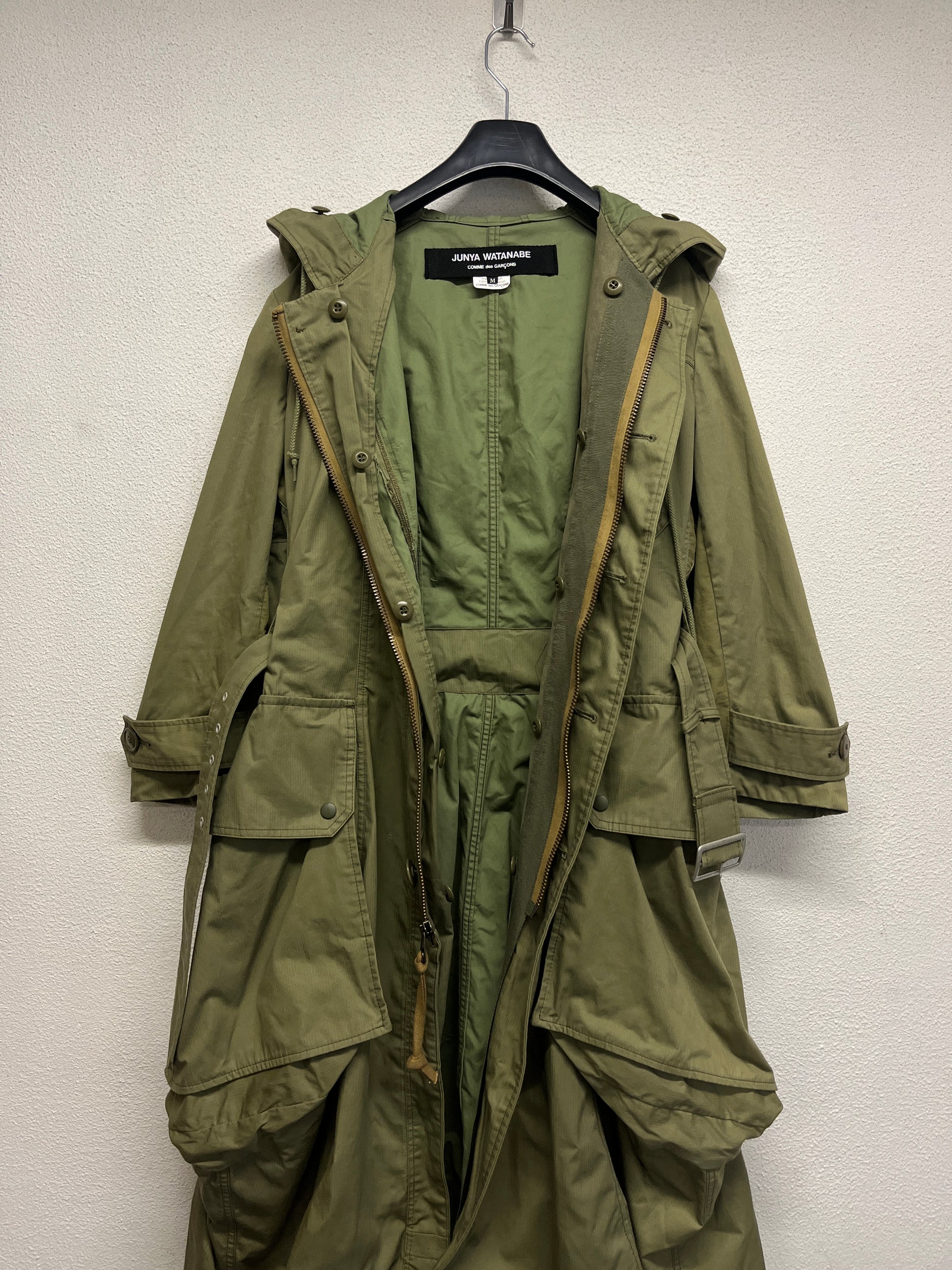 COMME DES GARÇONS JUNYA WATANABE cargo khaki oversized pocket coat with another separate coat inside and included belt, both can be used separately or together in multiple styles