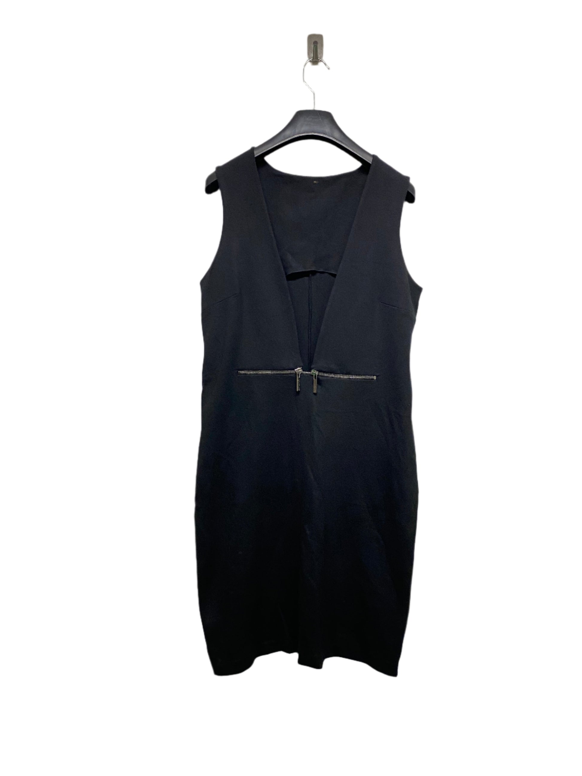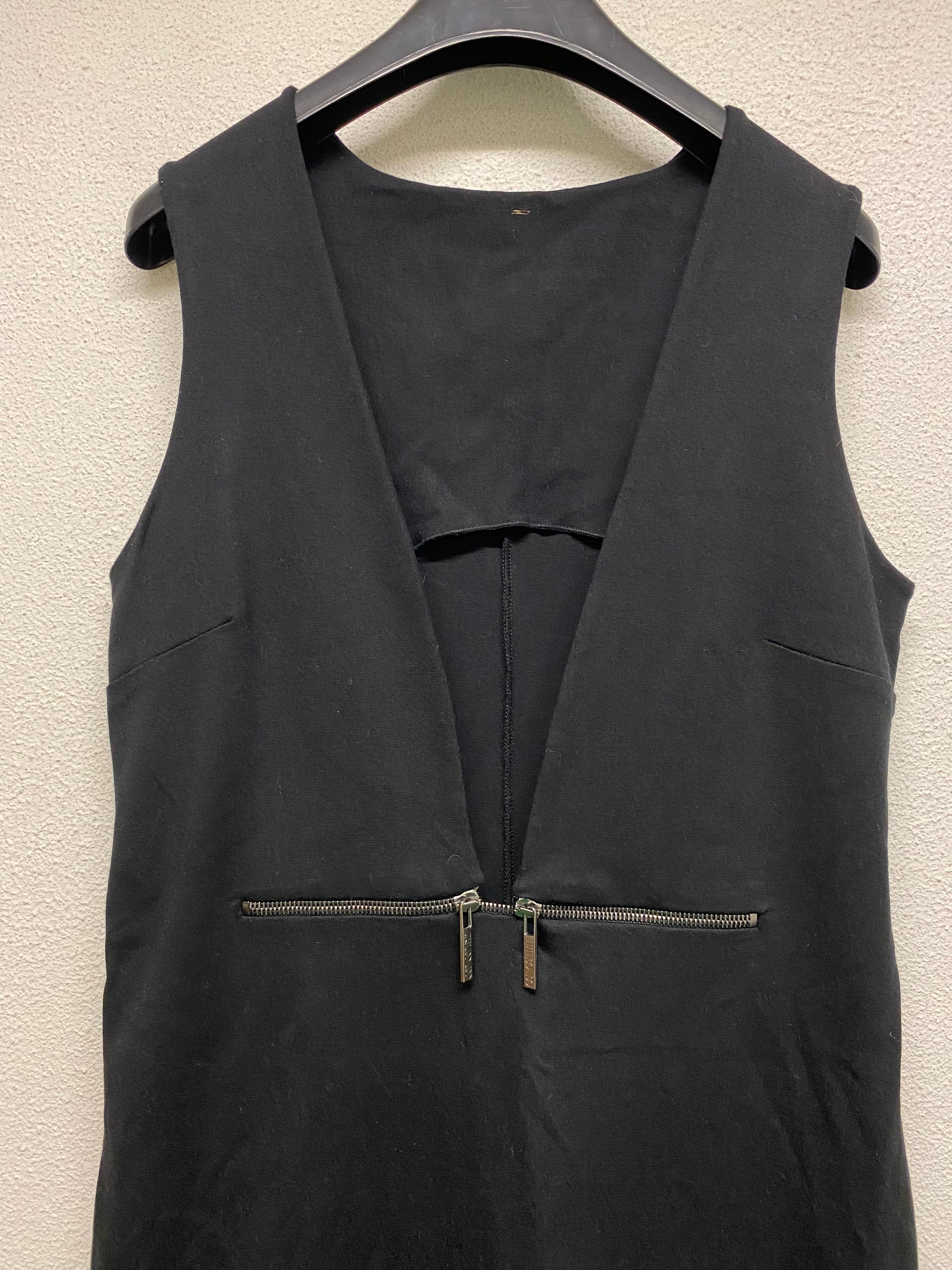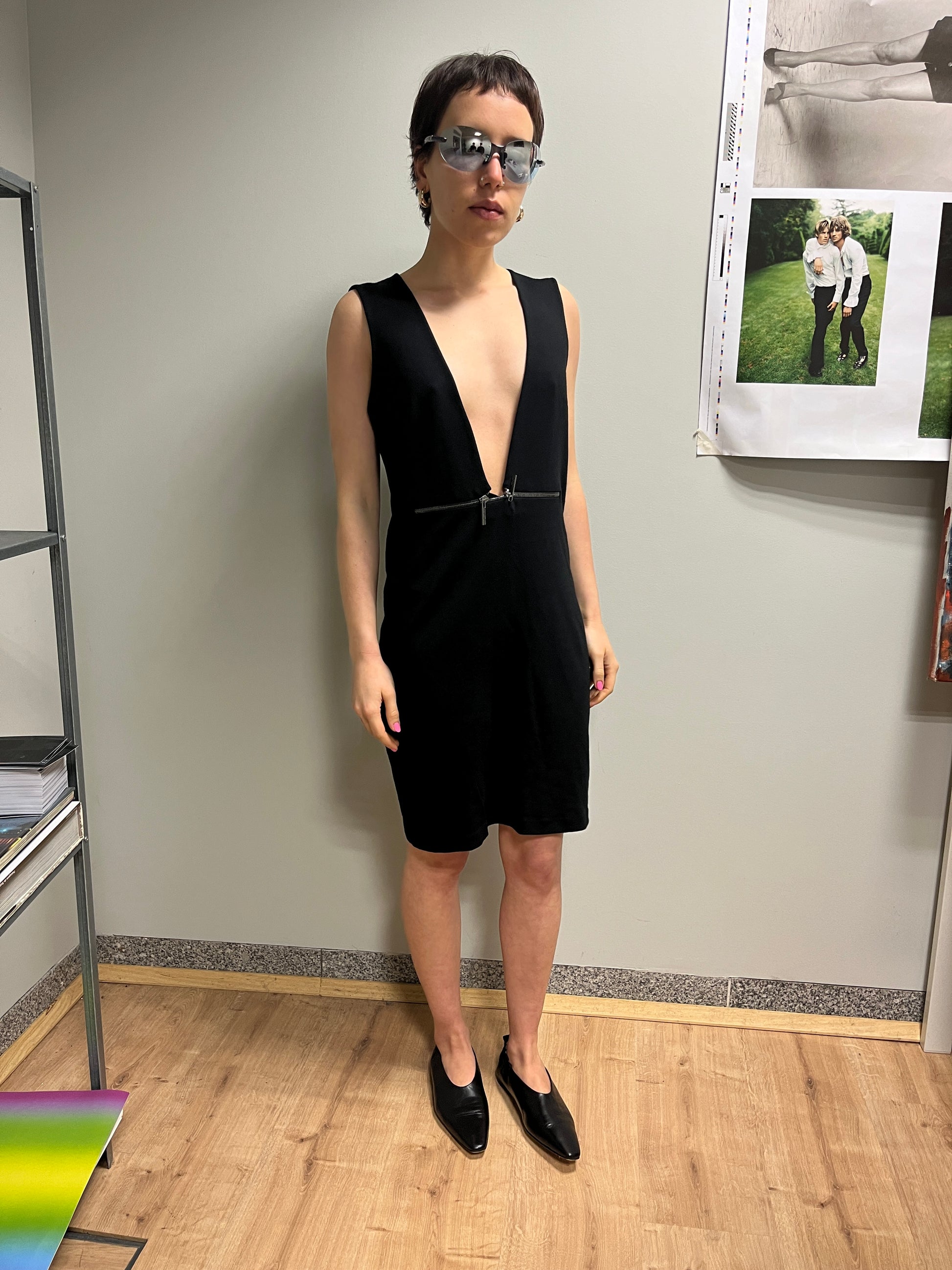 COP COPINE viscose black deep V-neck zipped dress (L)