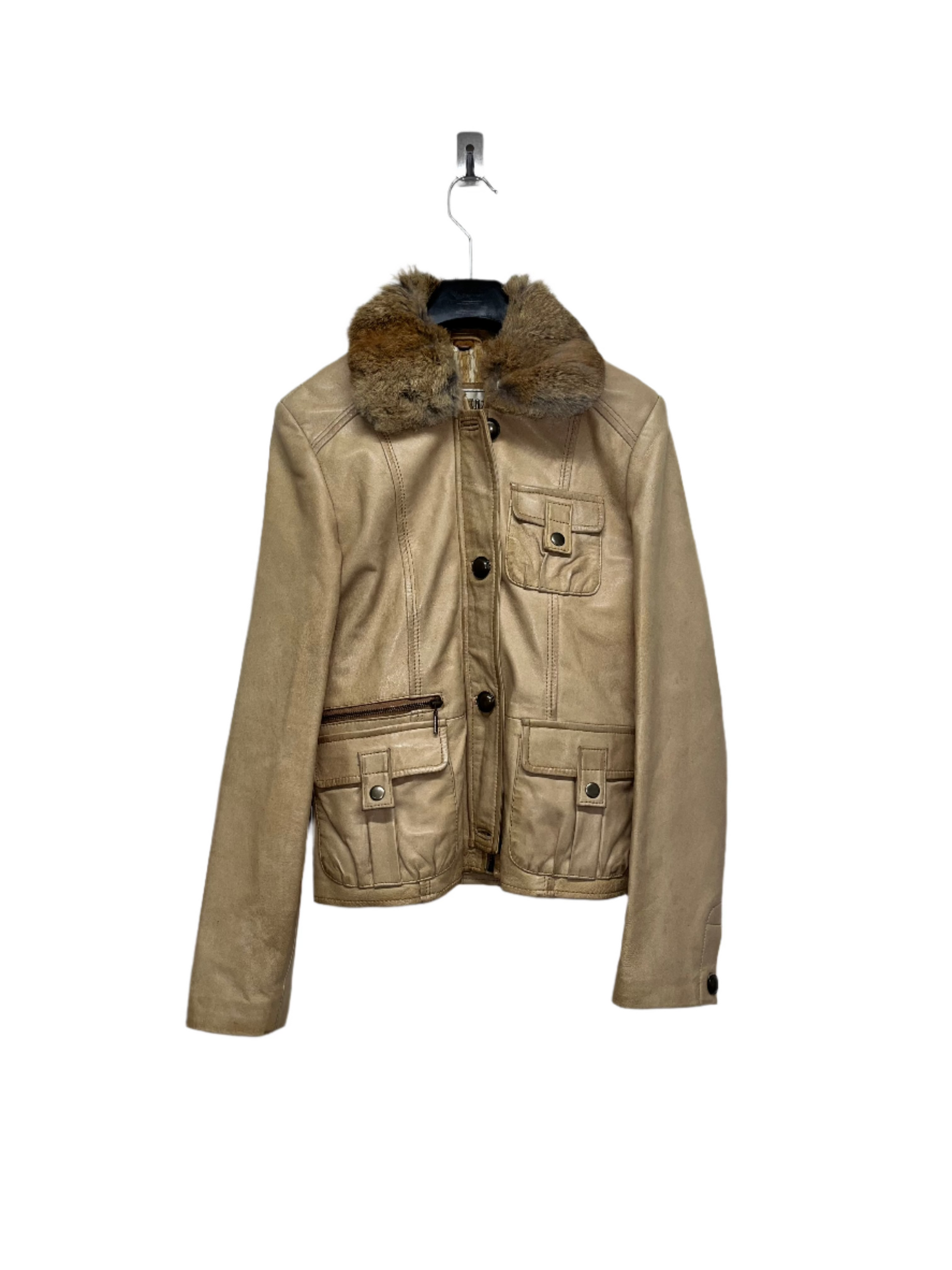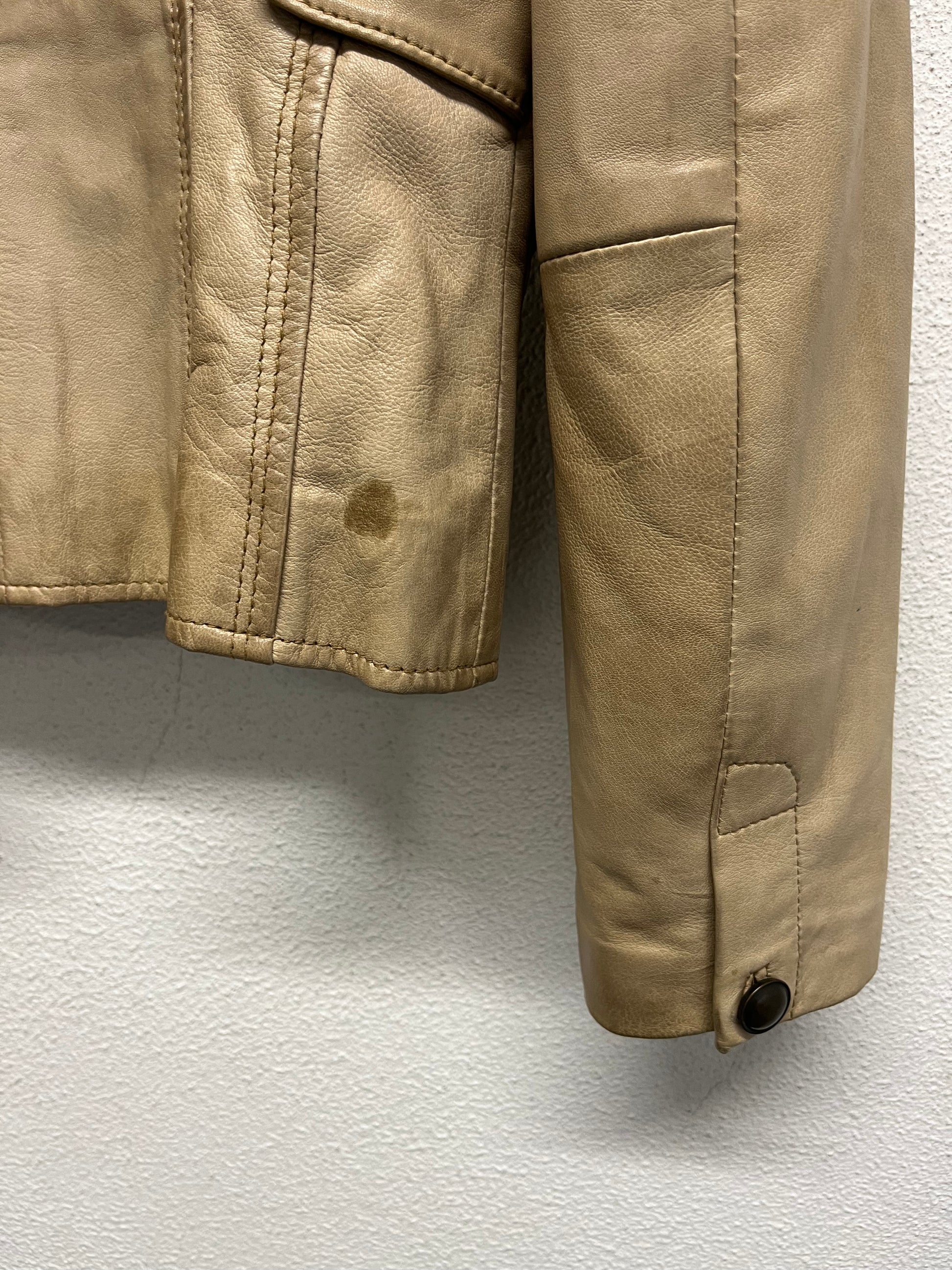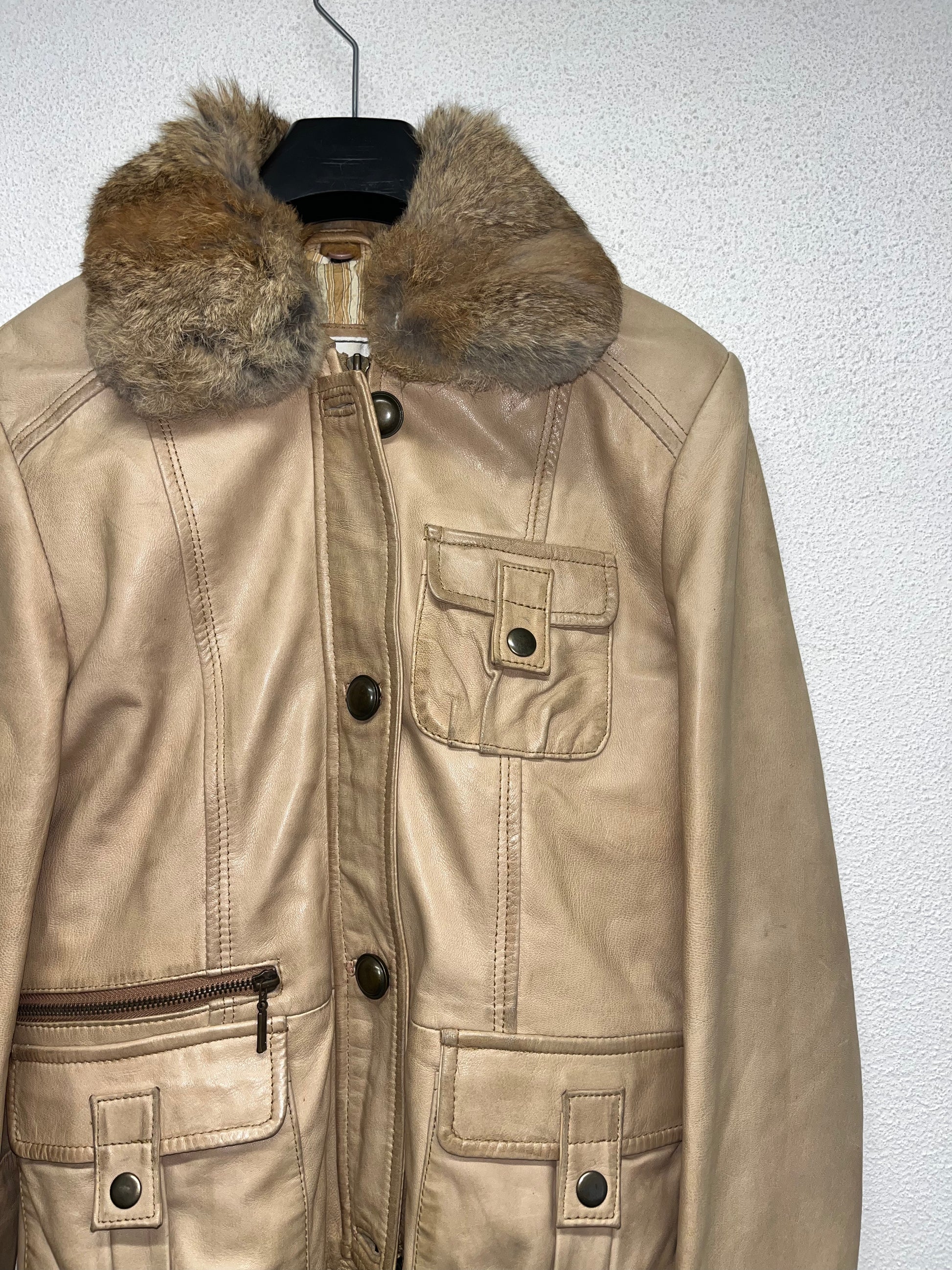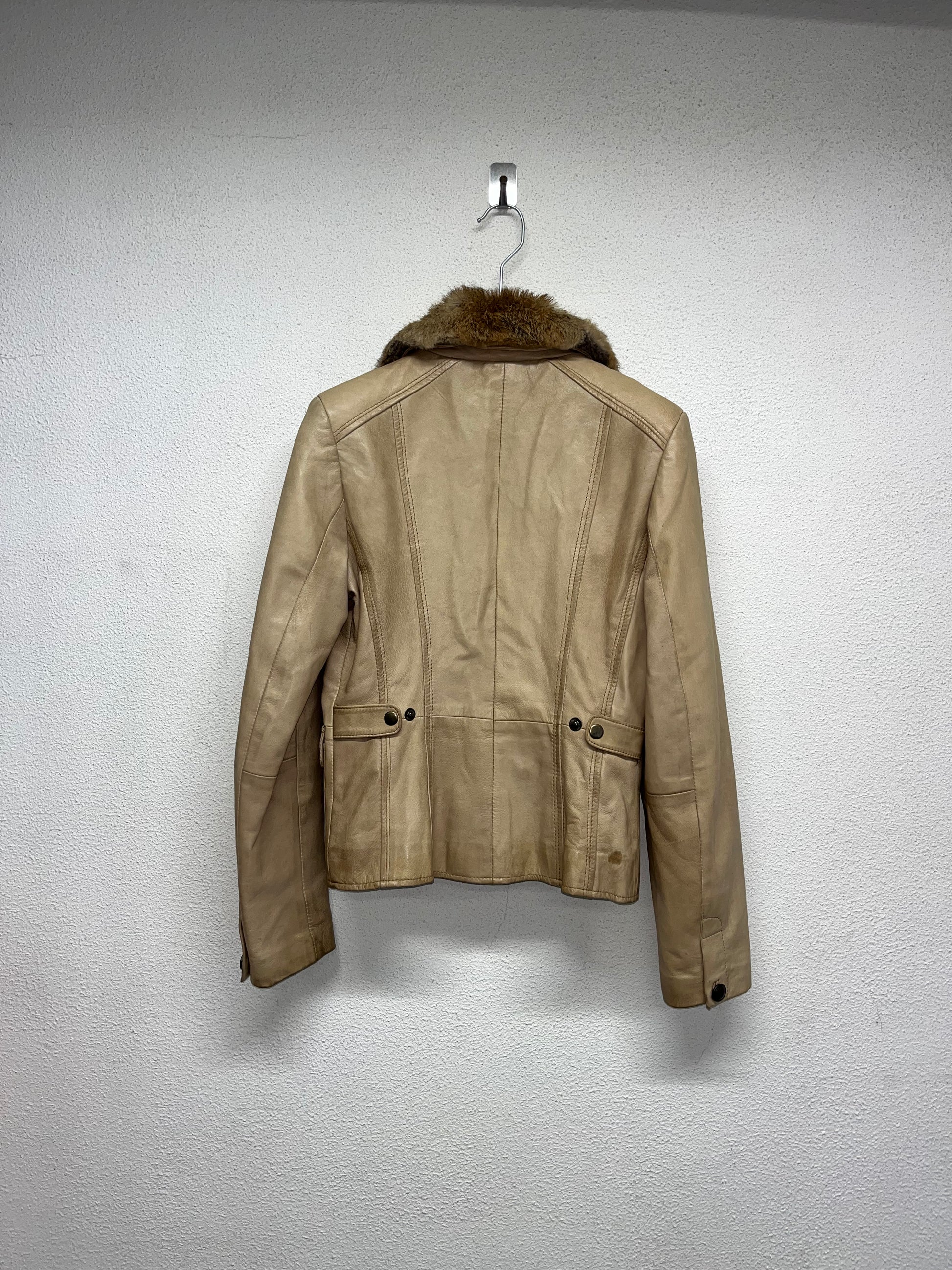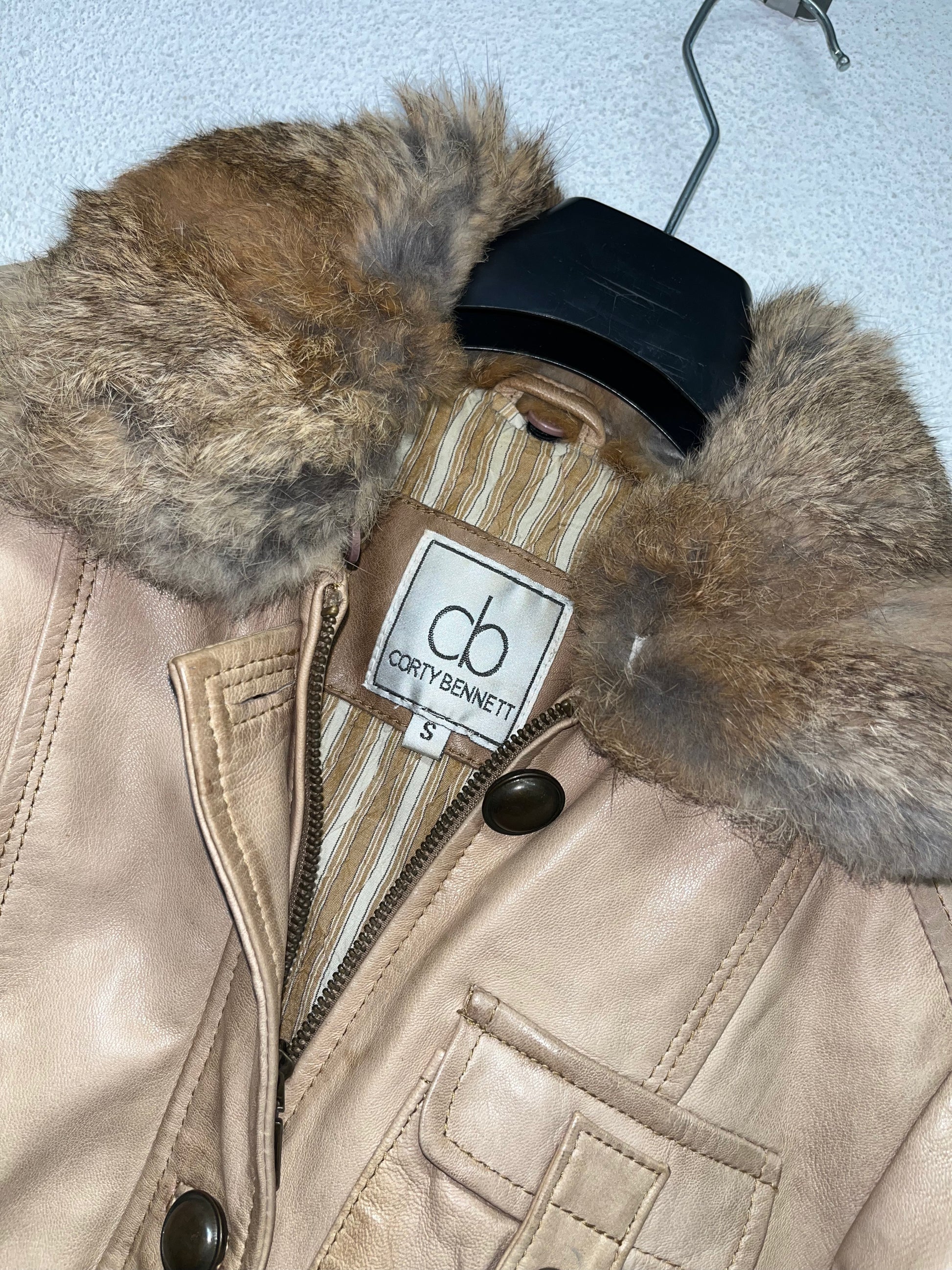 CORTY BENNETT beige leather jacket with fur collar, overall great condition except the mark shown in the last photo.