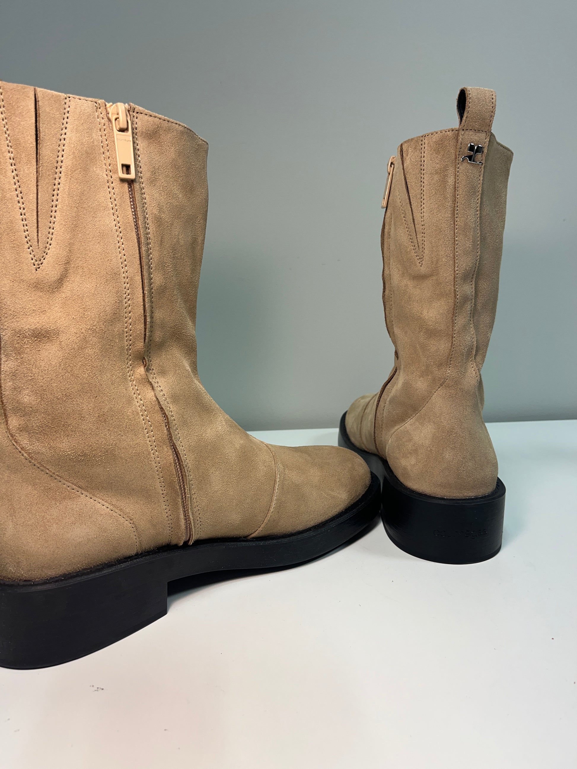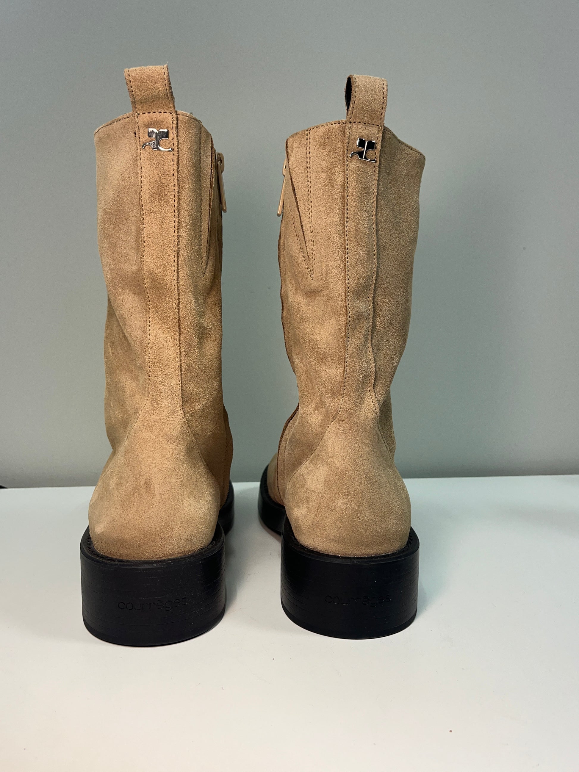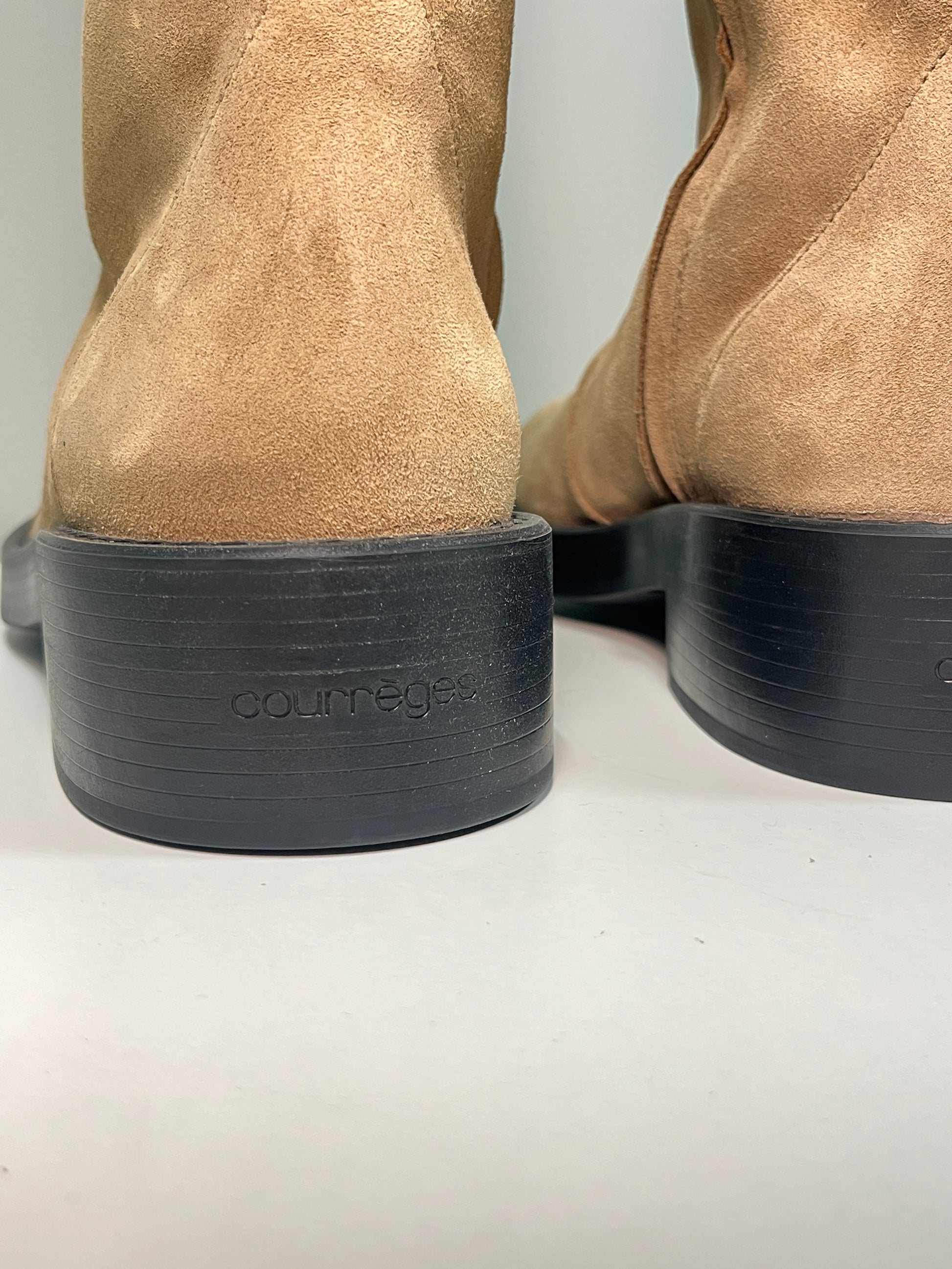 COURREGES beige-camel suede leather rounded toe boots (42)