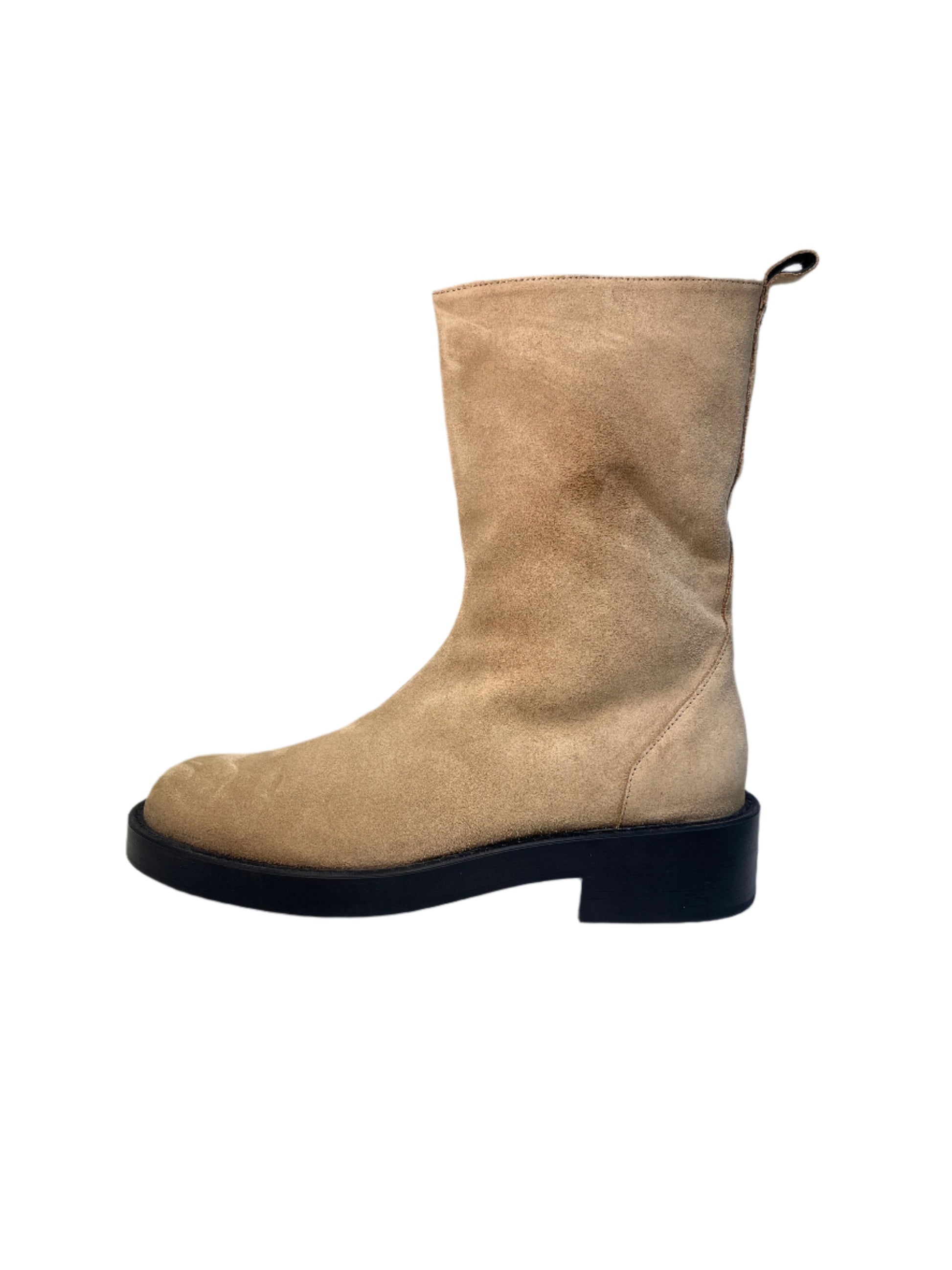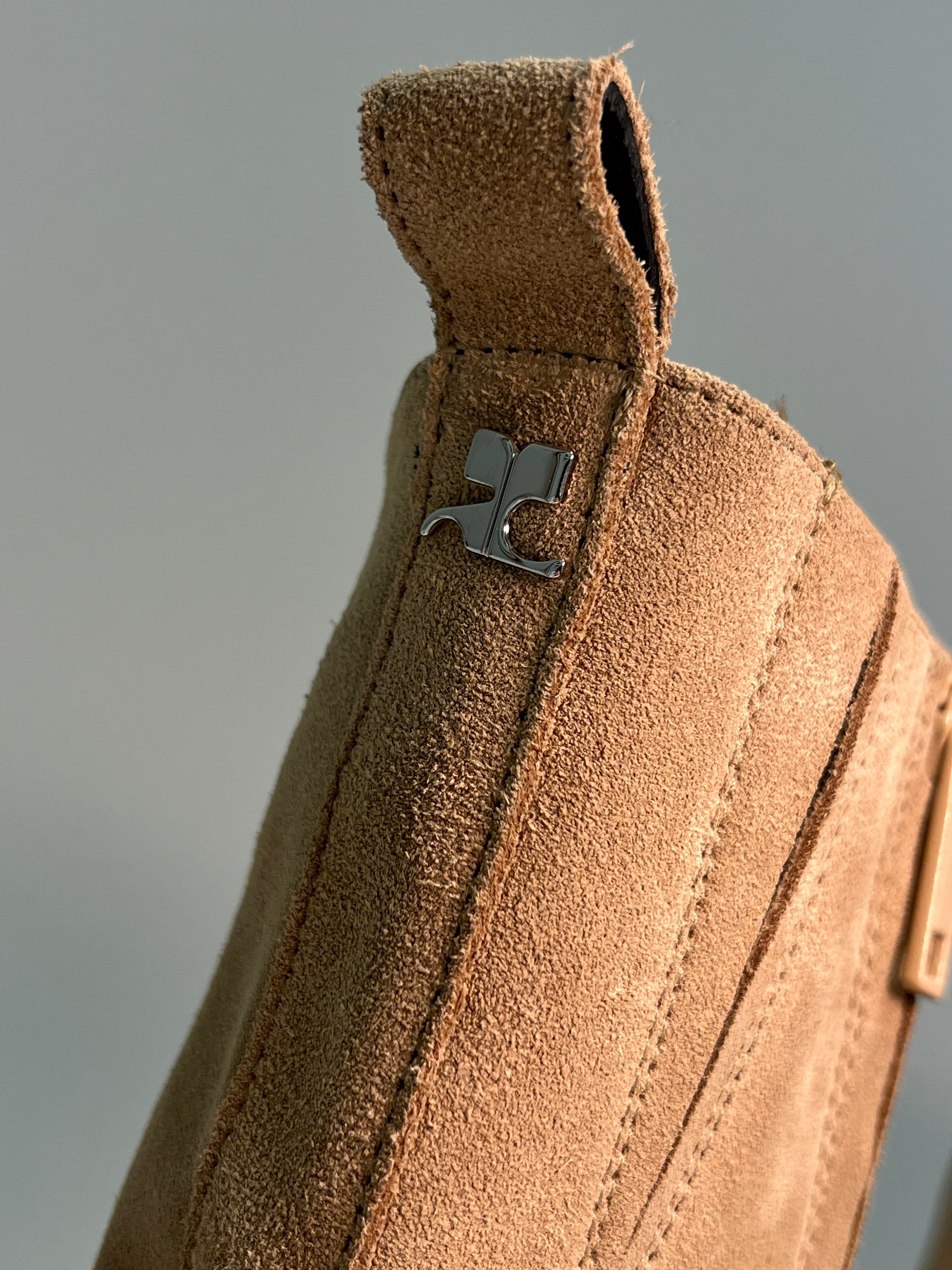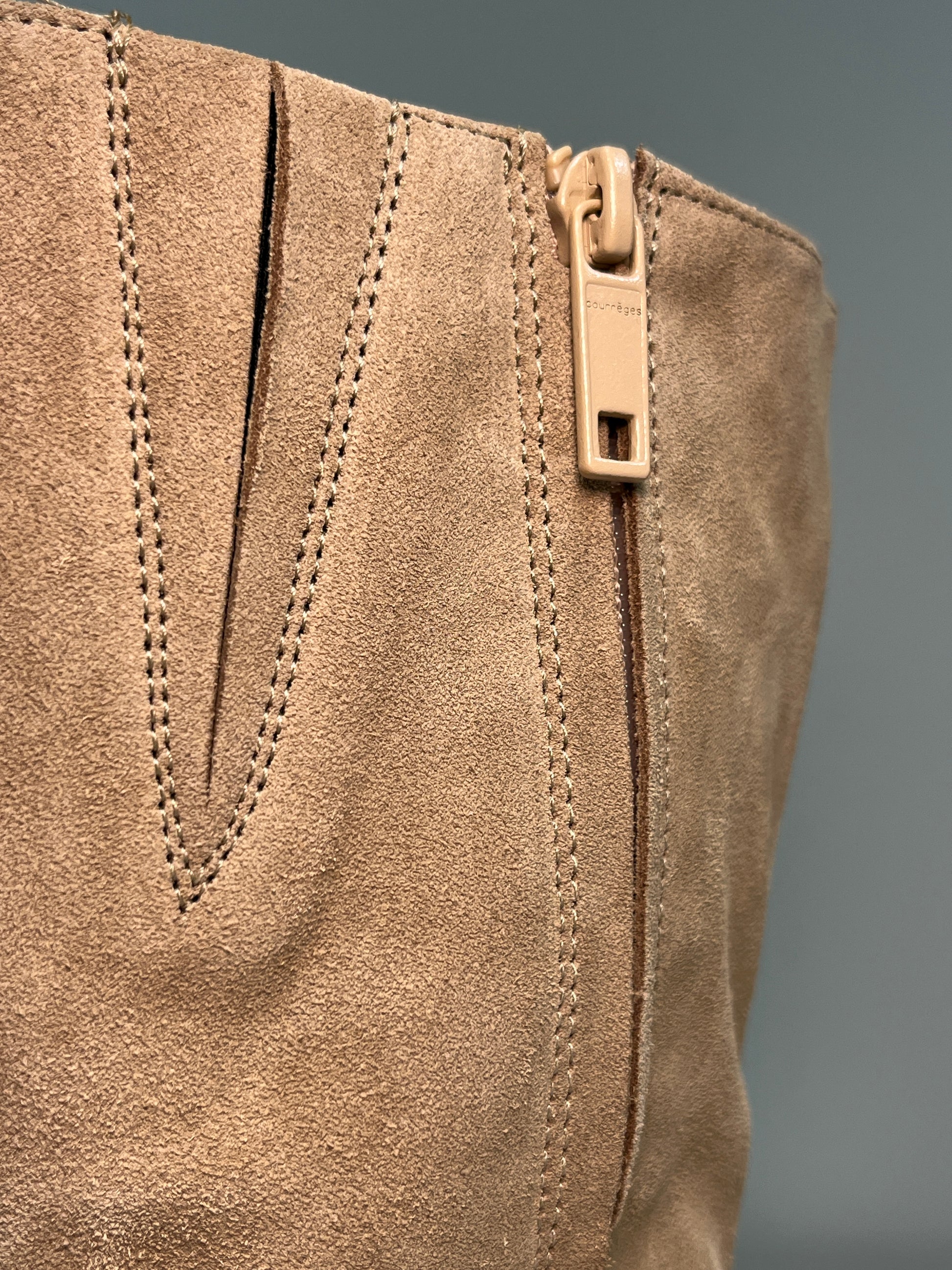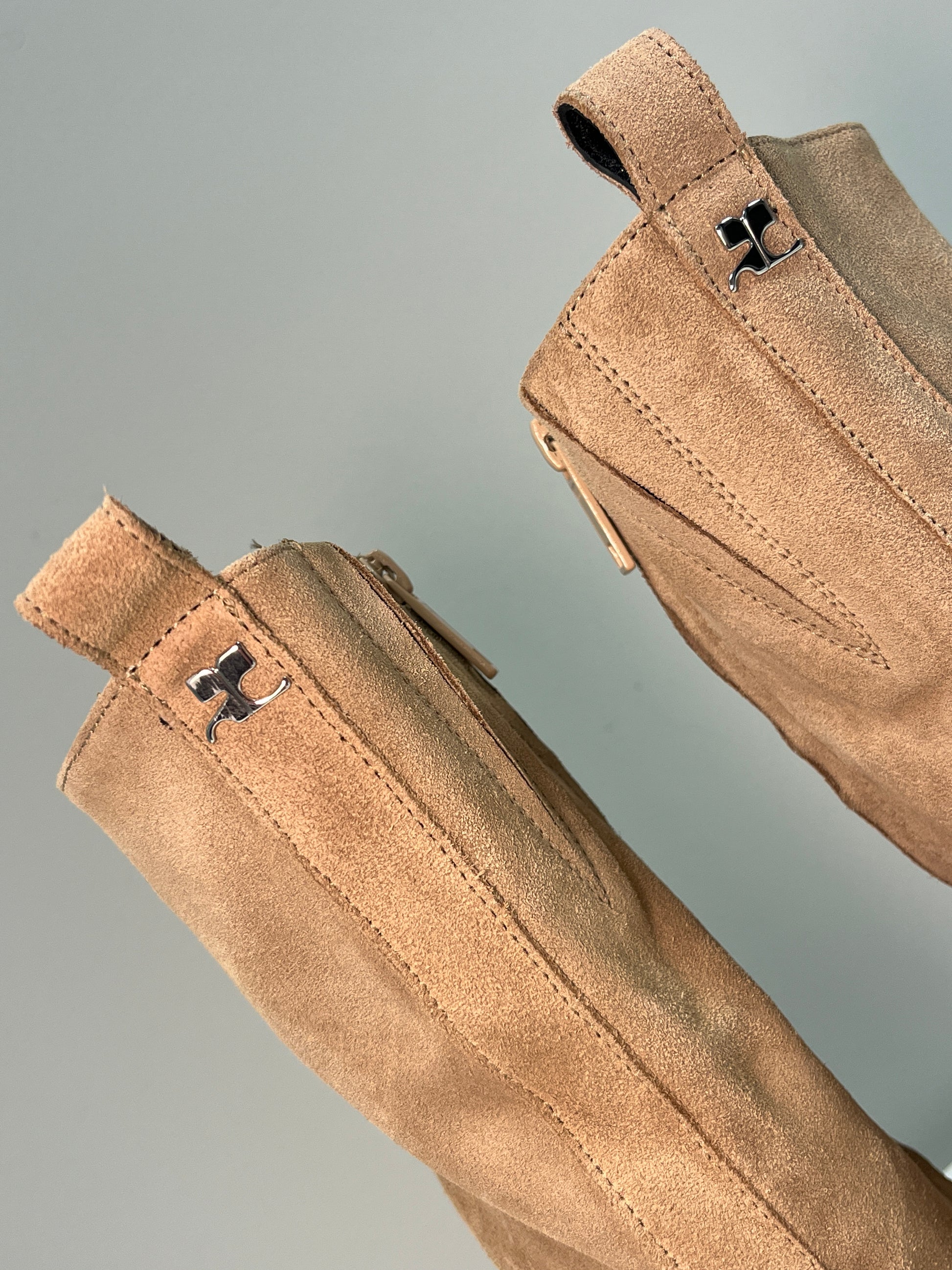 COURREGES beige-camel suede leather rounded toe boots (42)
