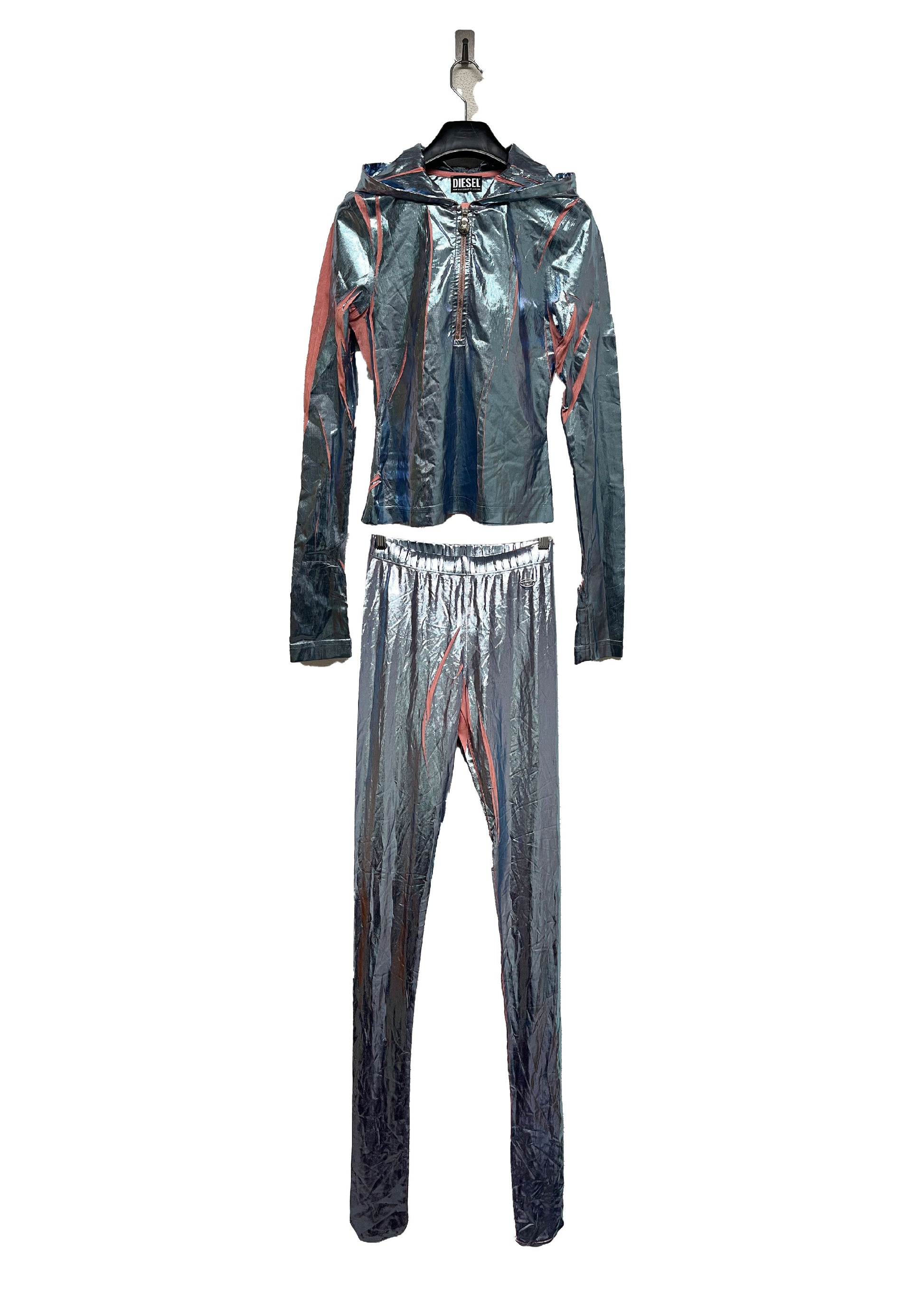 DIESEL by Glenn Martens metallic blue and pink twin set jacket and leggings