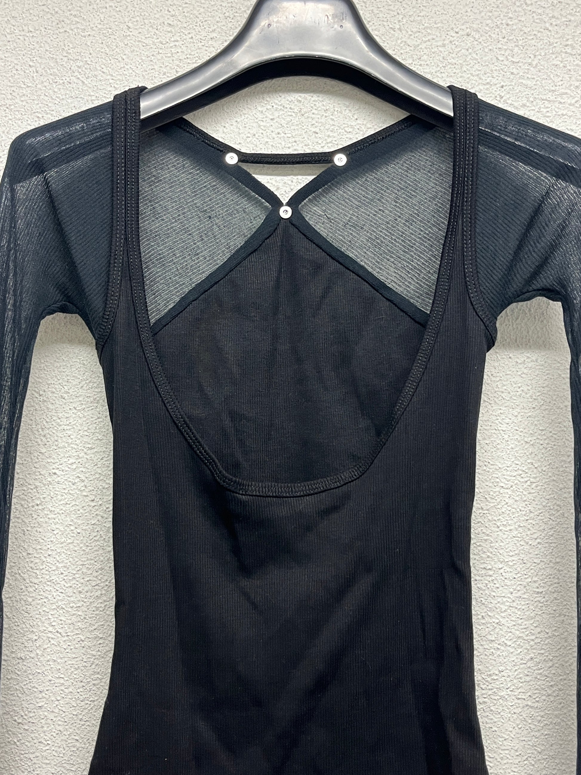 DION LEE black sheer long sleeve ribbed top with chest cut-out and open back