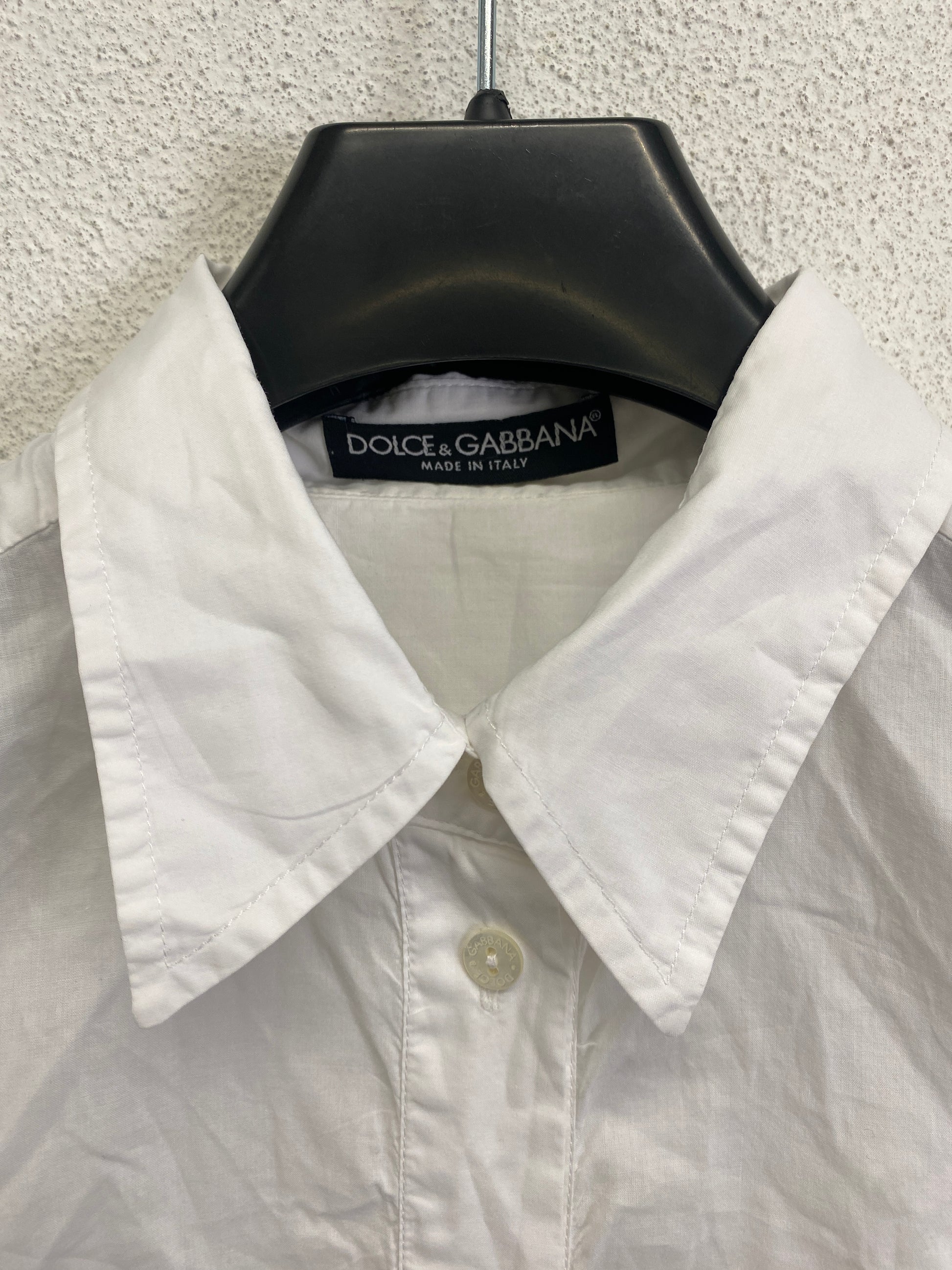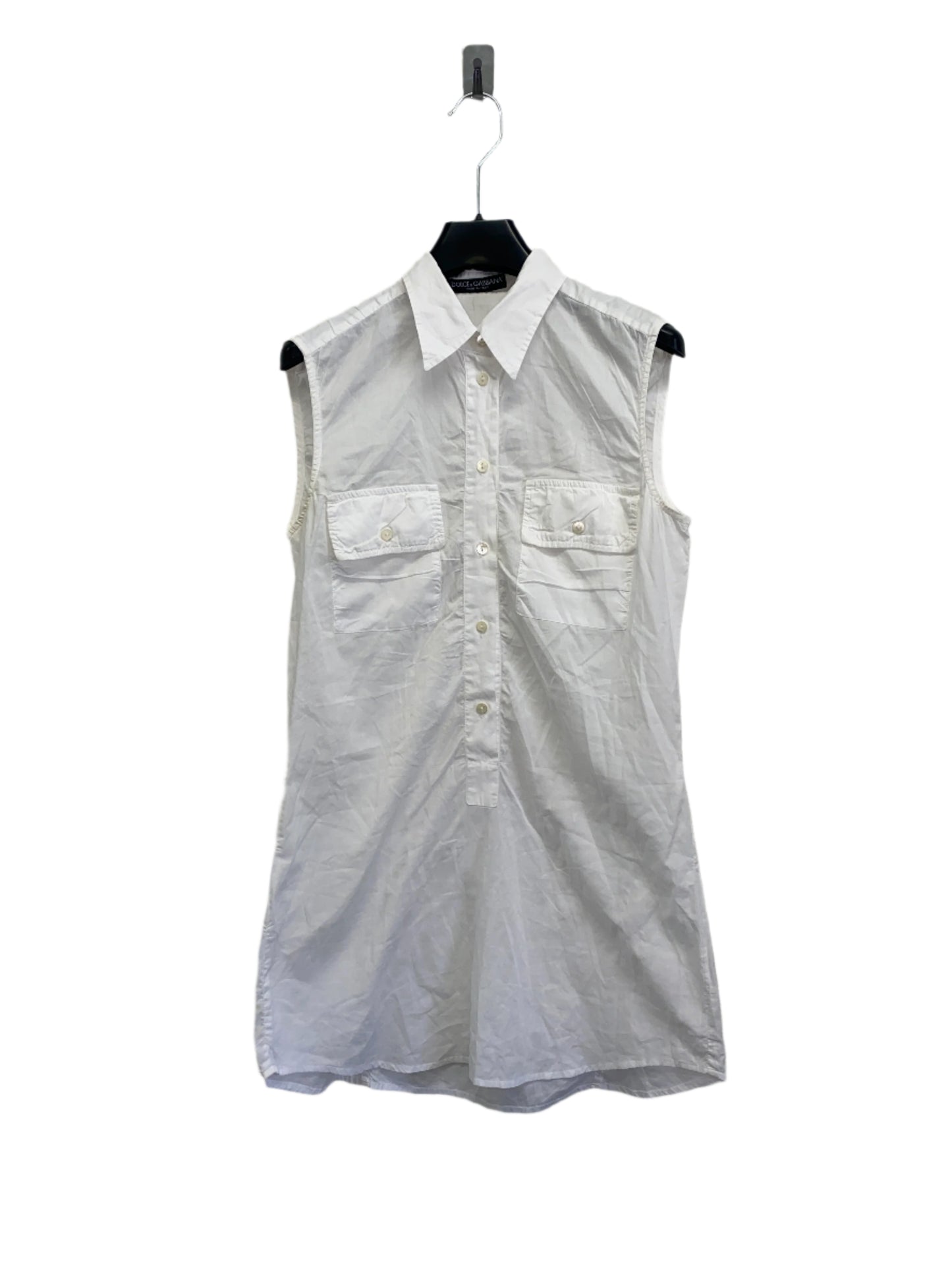 DOLCE & GABBANA white cotton button-up sleeveless dress-shirt