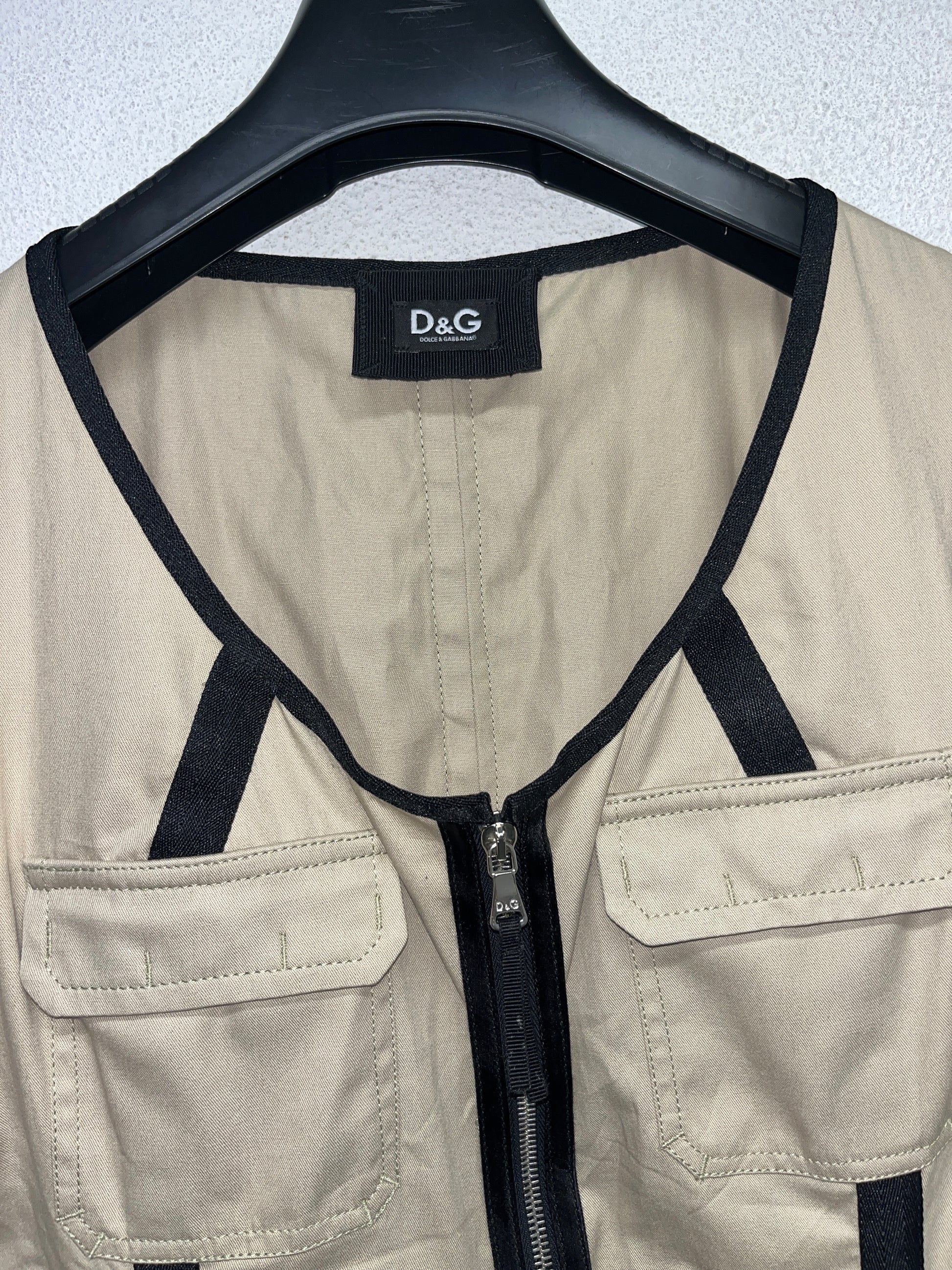 DOLCE & GABBANA beige and black utility cargo gillet belted vest