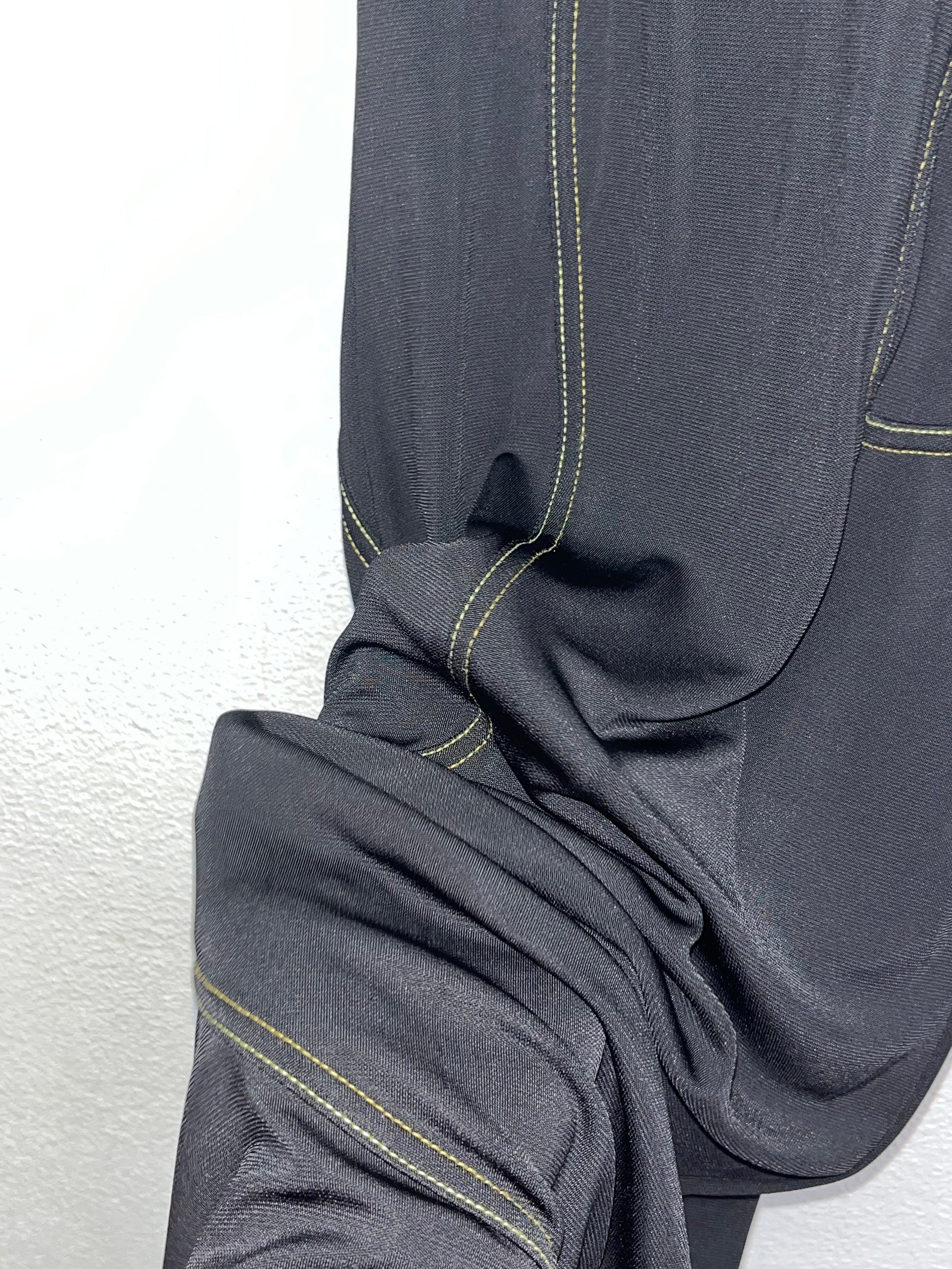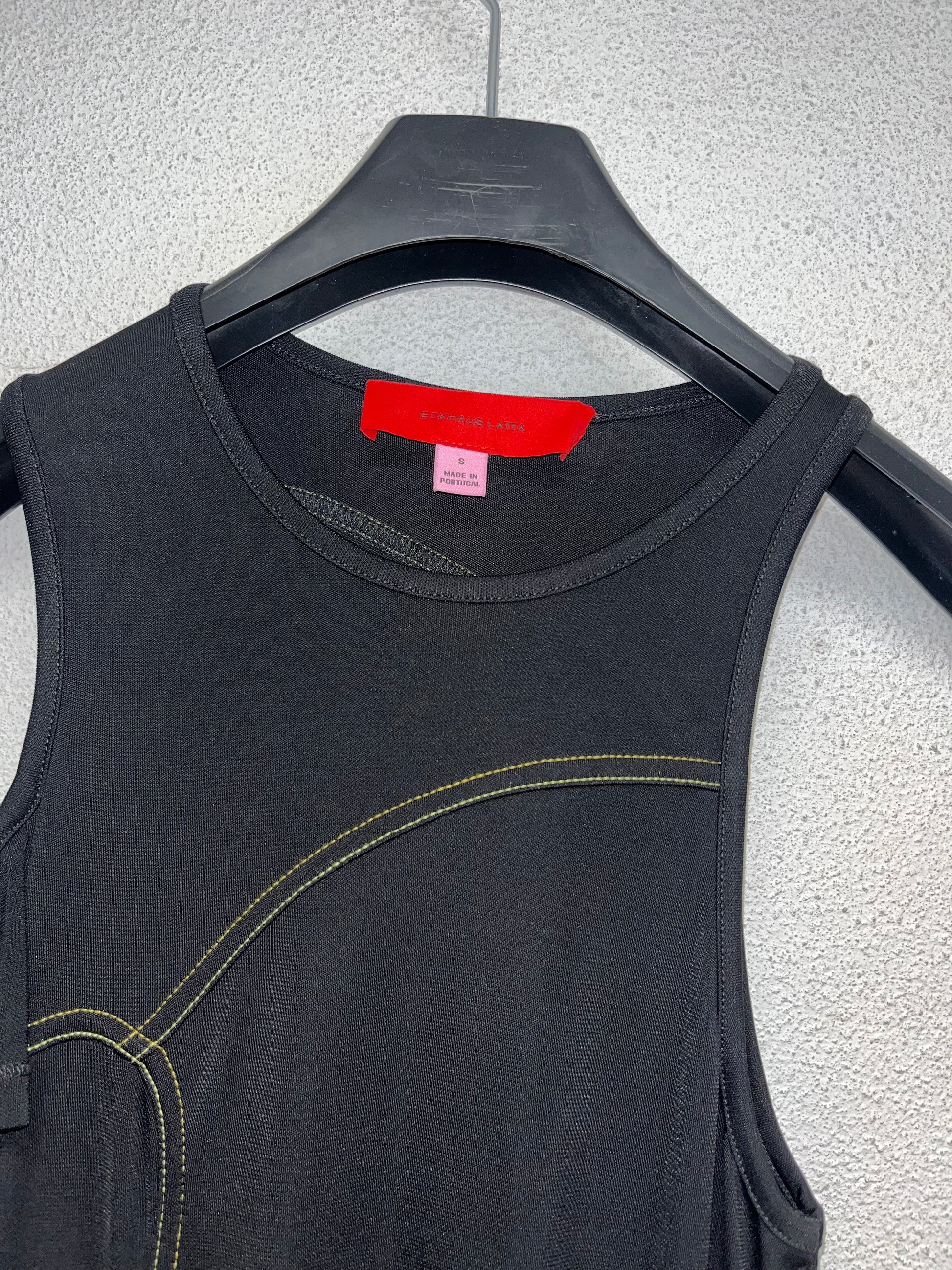 ECKHAUS LATTA stretchy black lime green contrast stitching dress