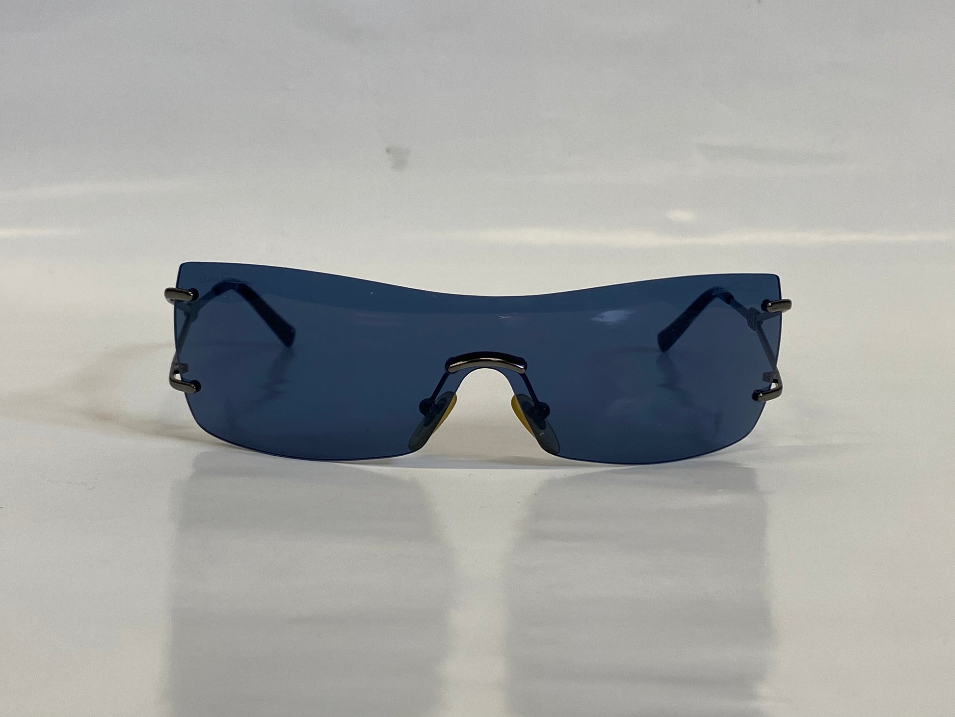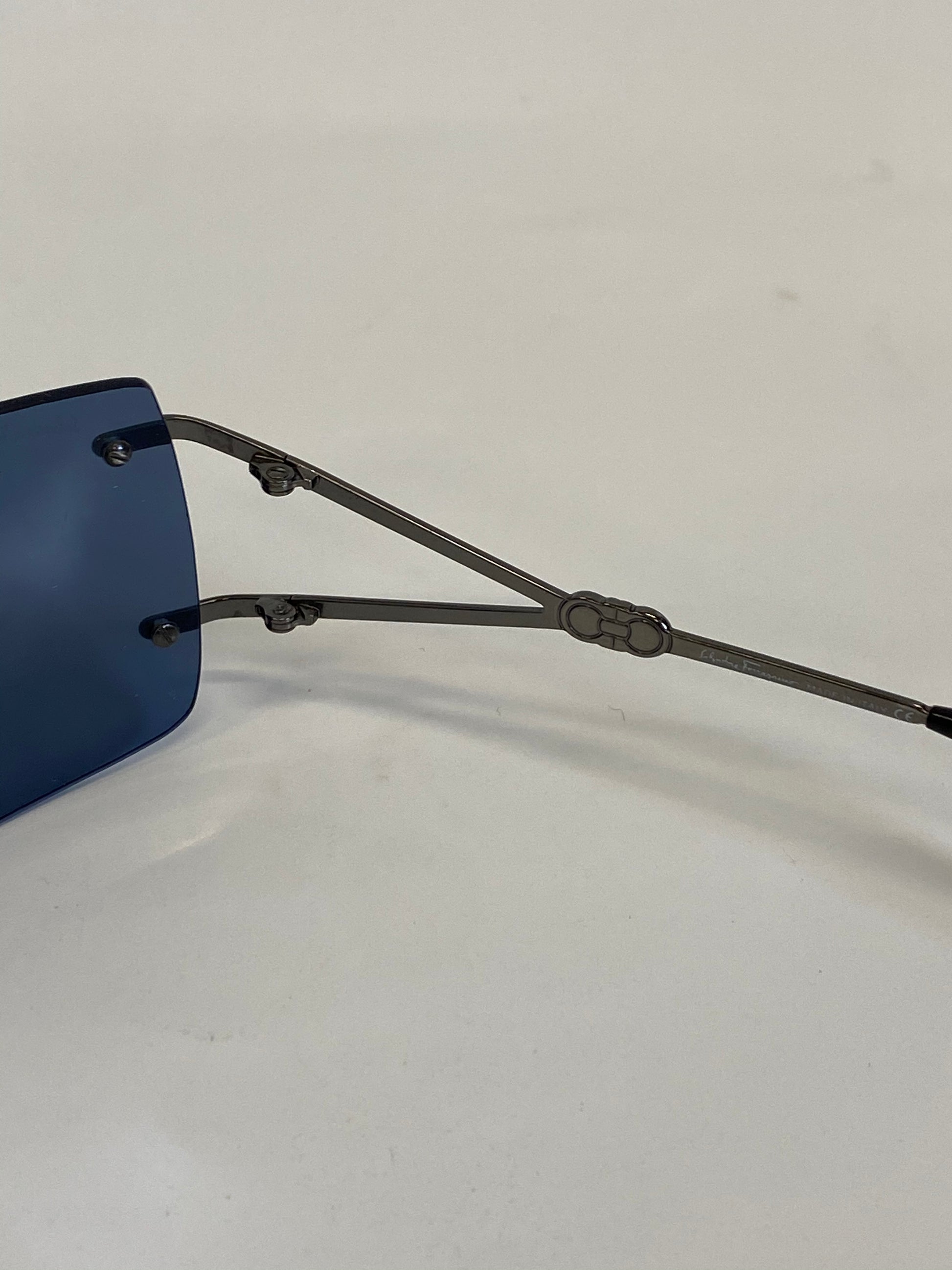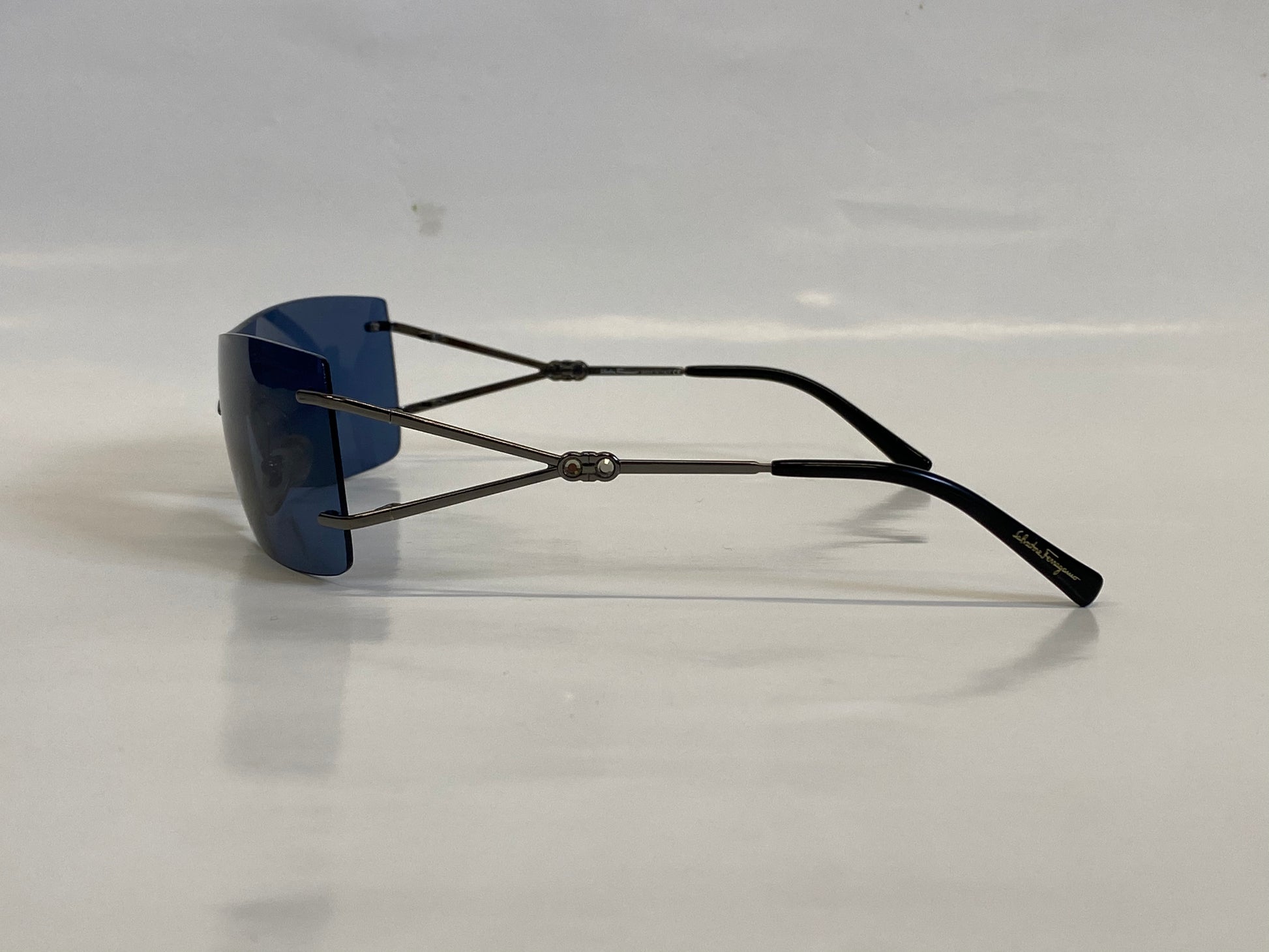 FERRAGAMO blue lens sunglasses with rhinestone detailing, lenses shows some signs of wear