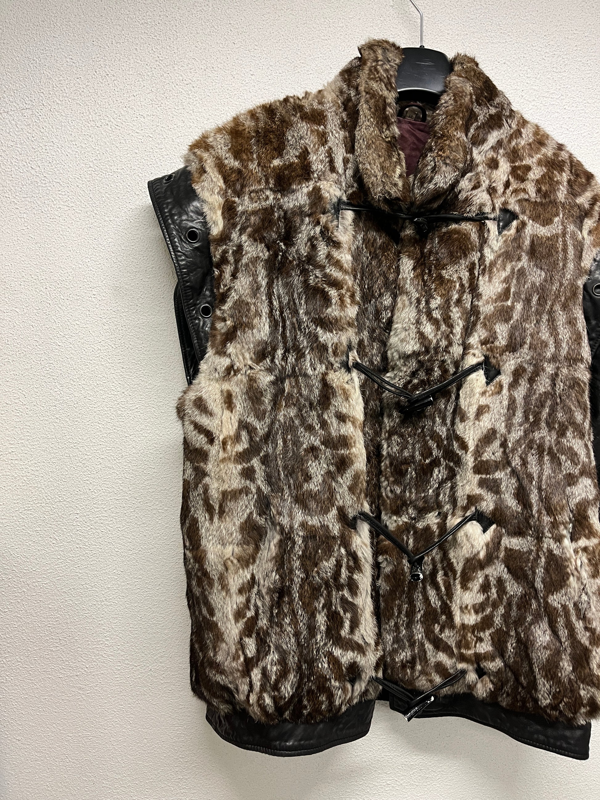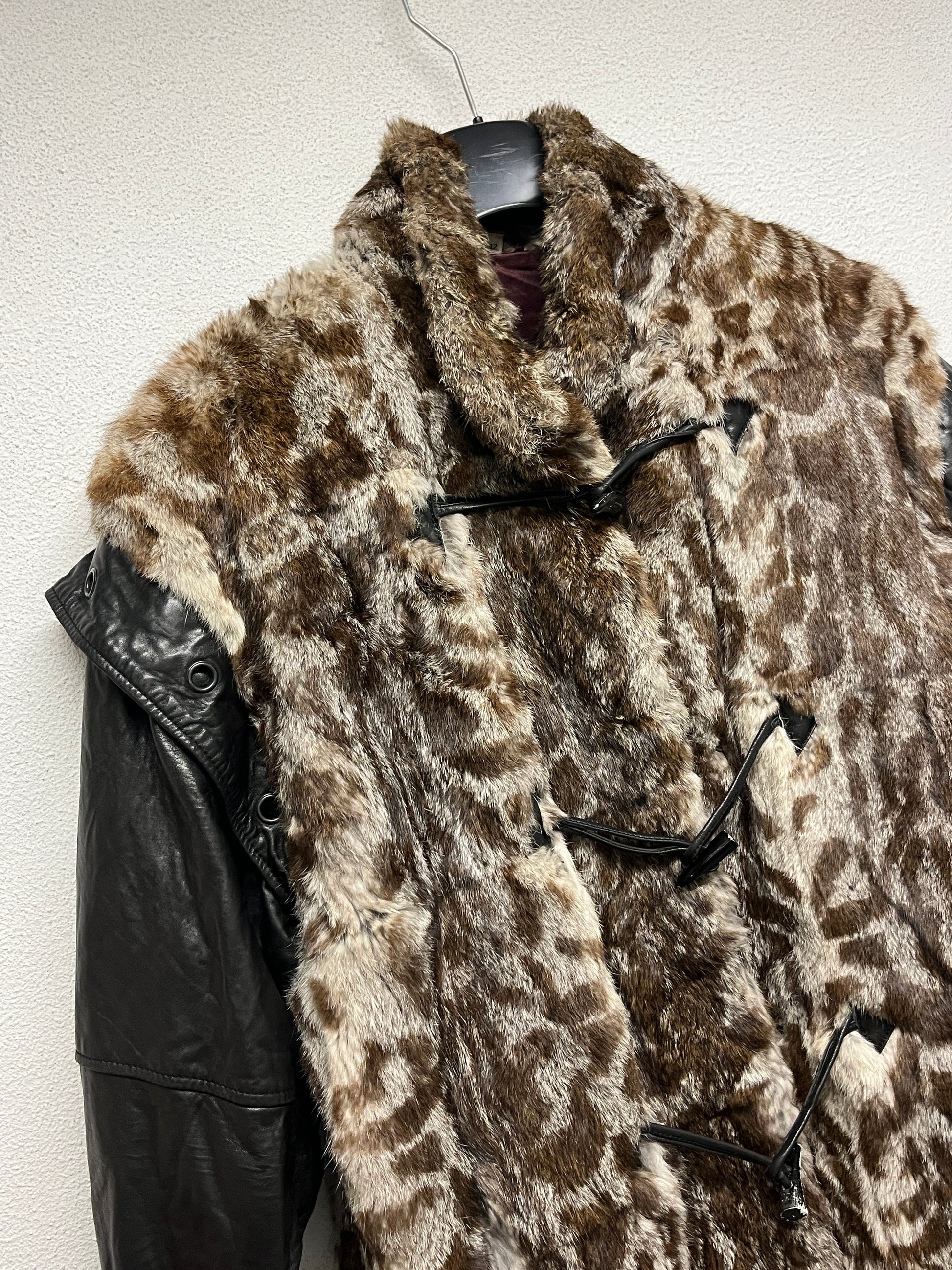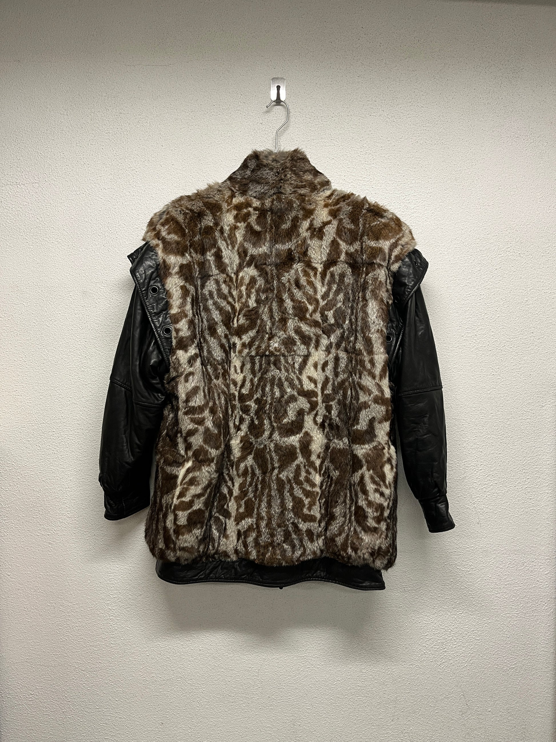 VINTAGE fur and leather coat with removable sleeves (XL)