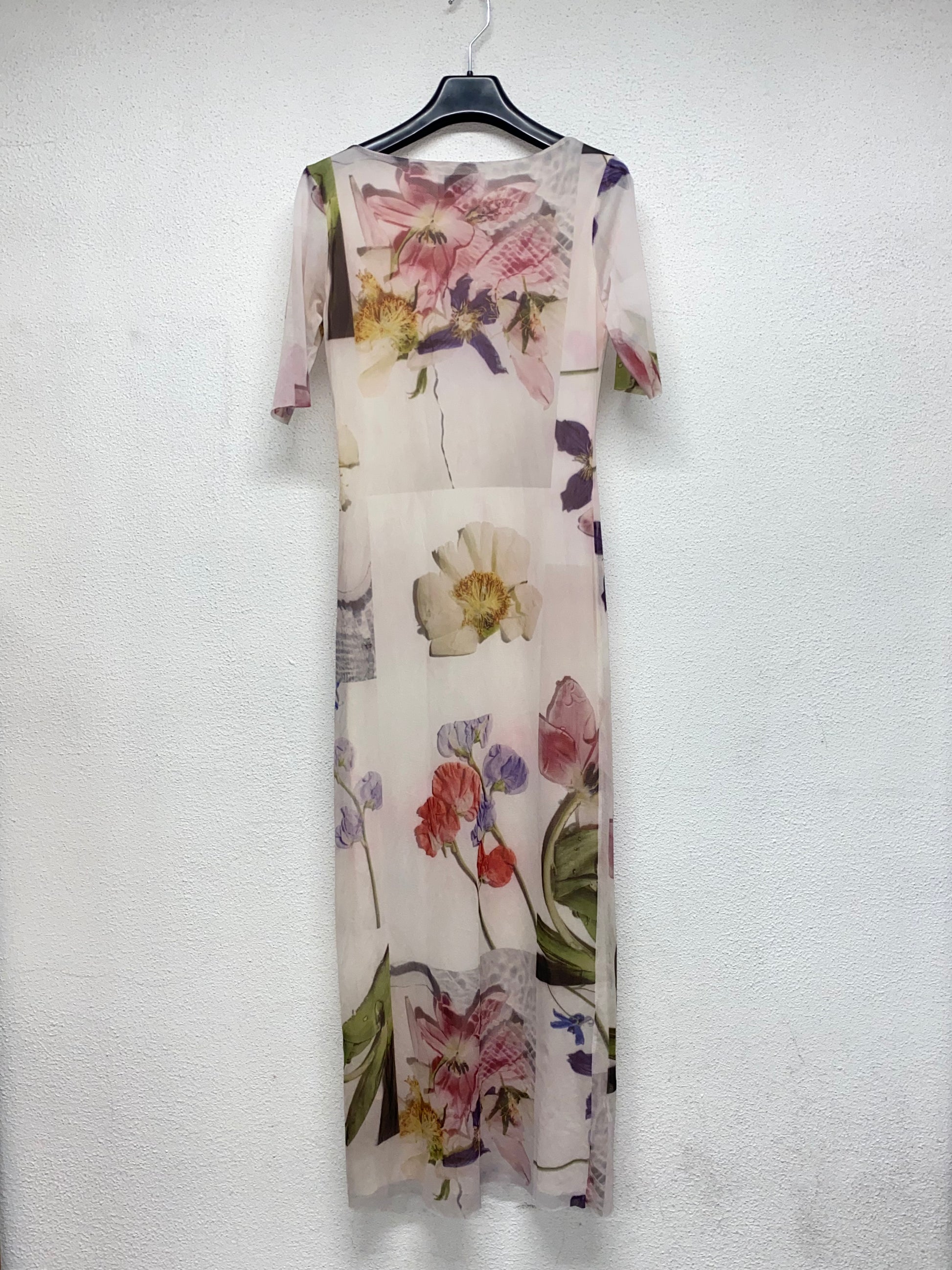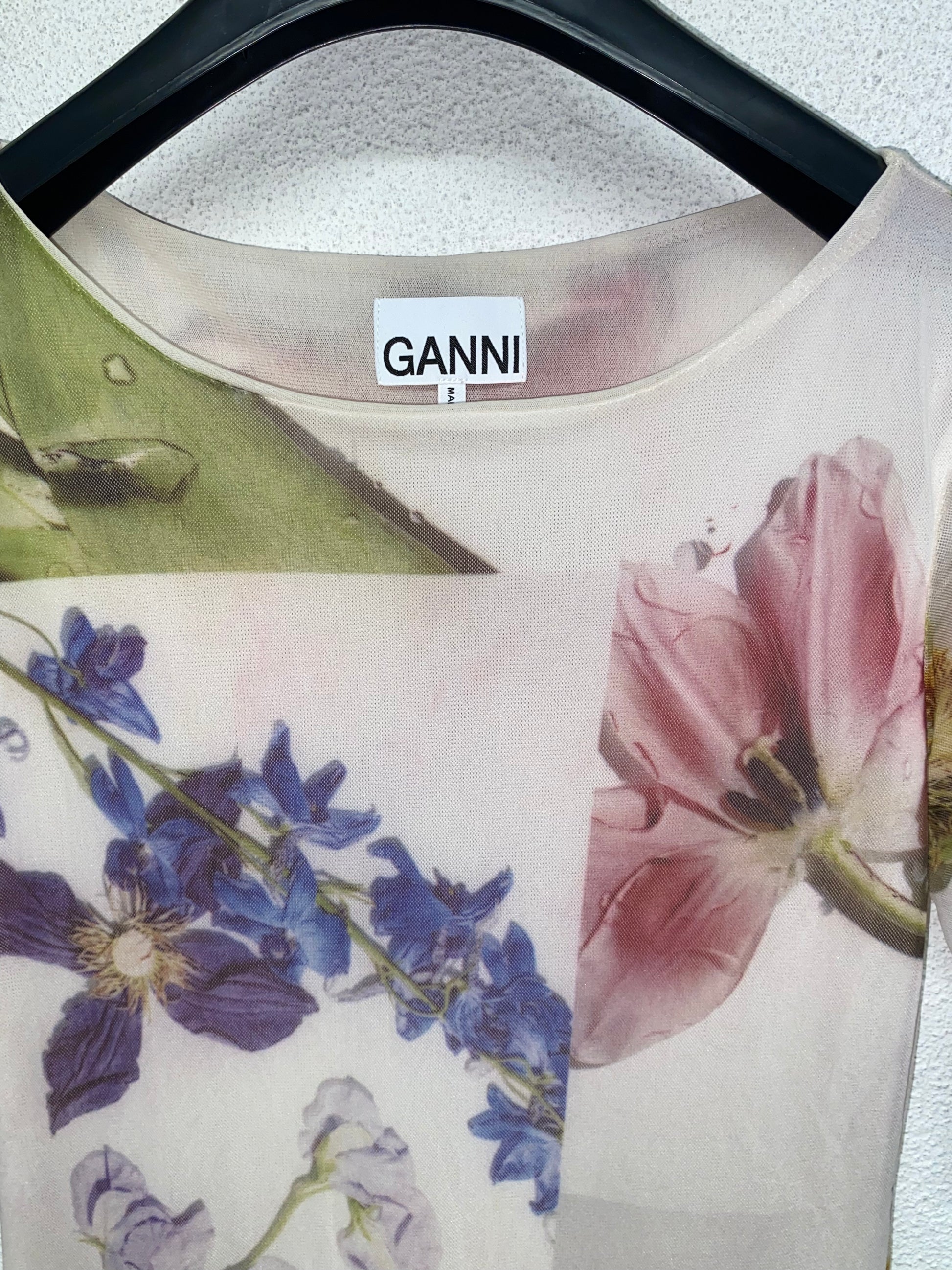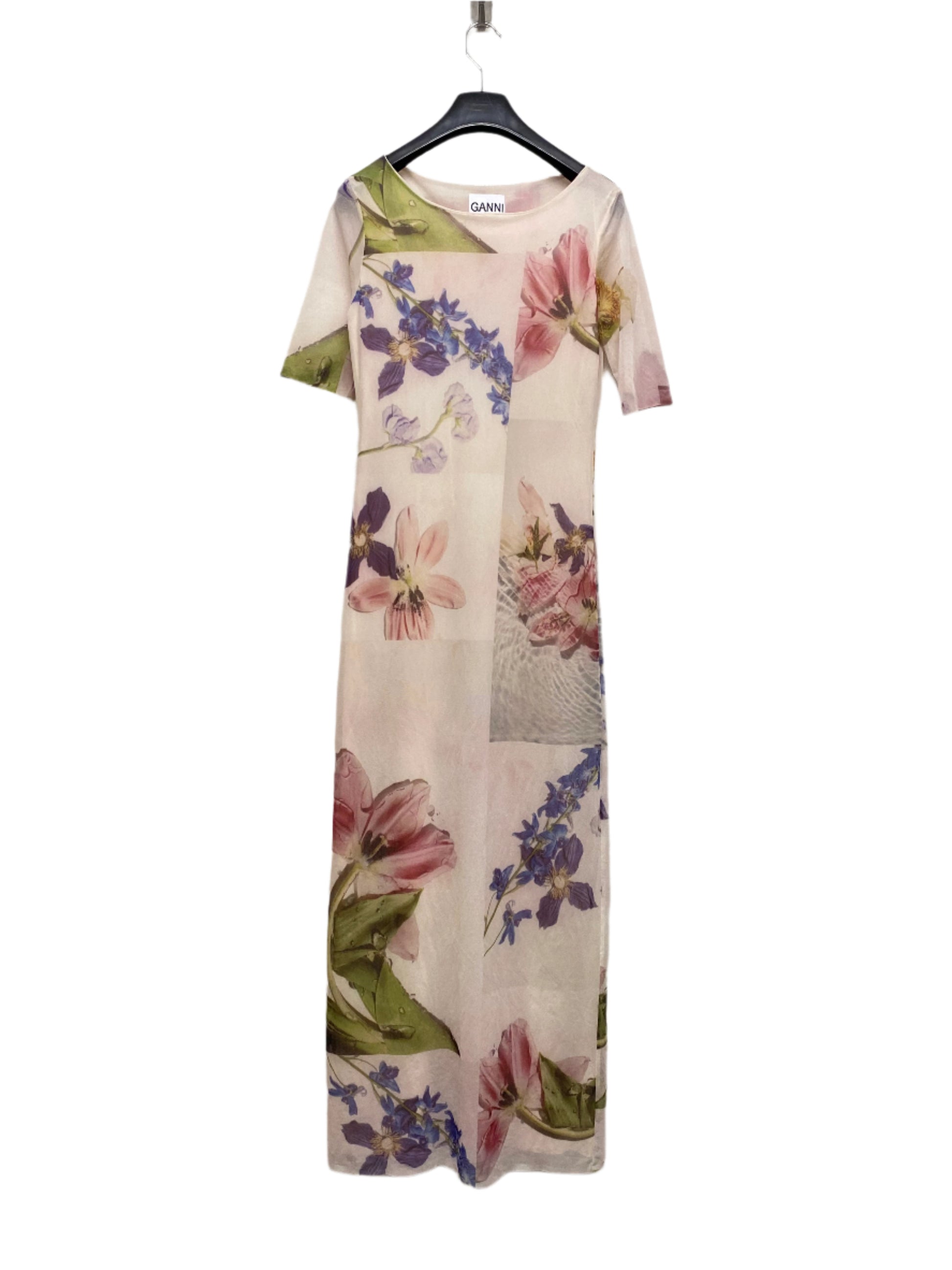 GANNI floral graphic maxi double layer mesh dress, stretchy fabric (S)