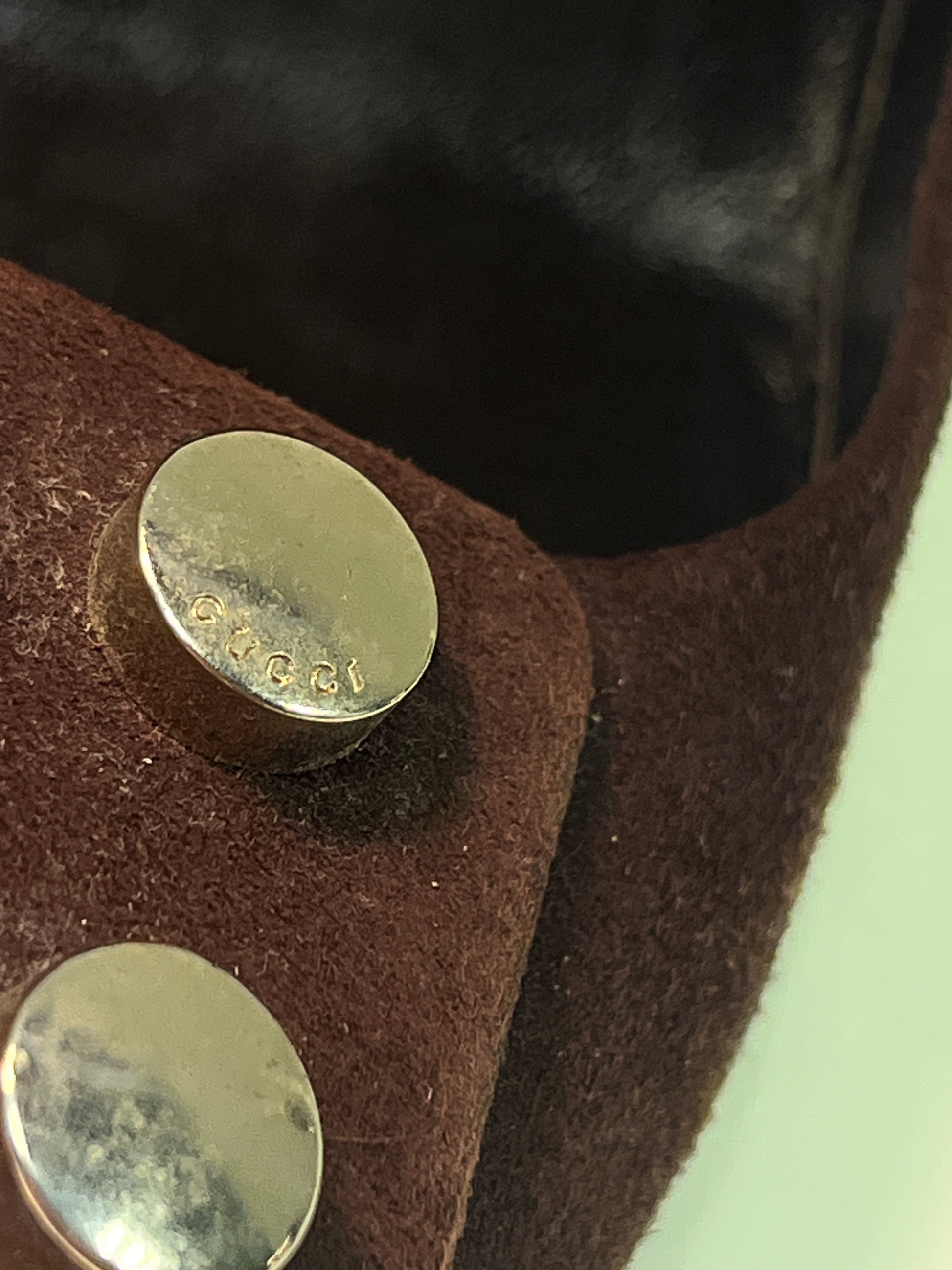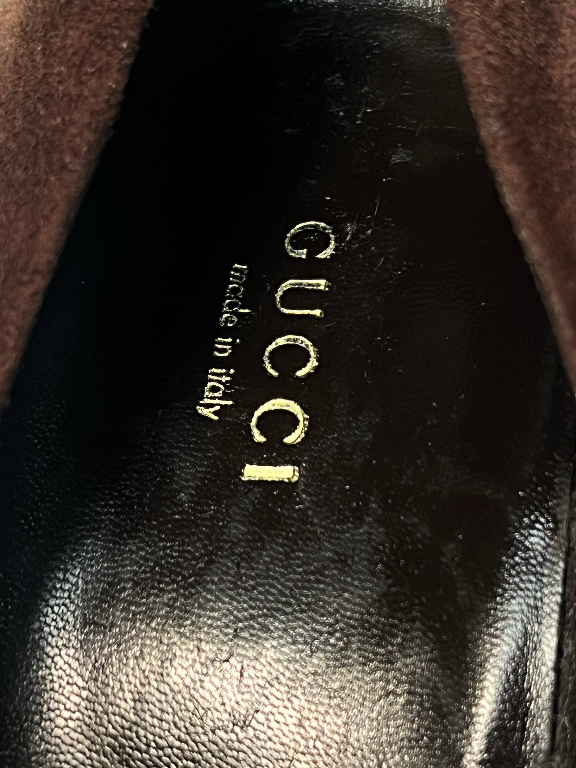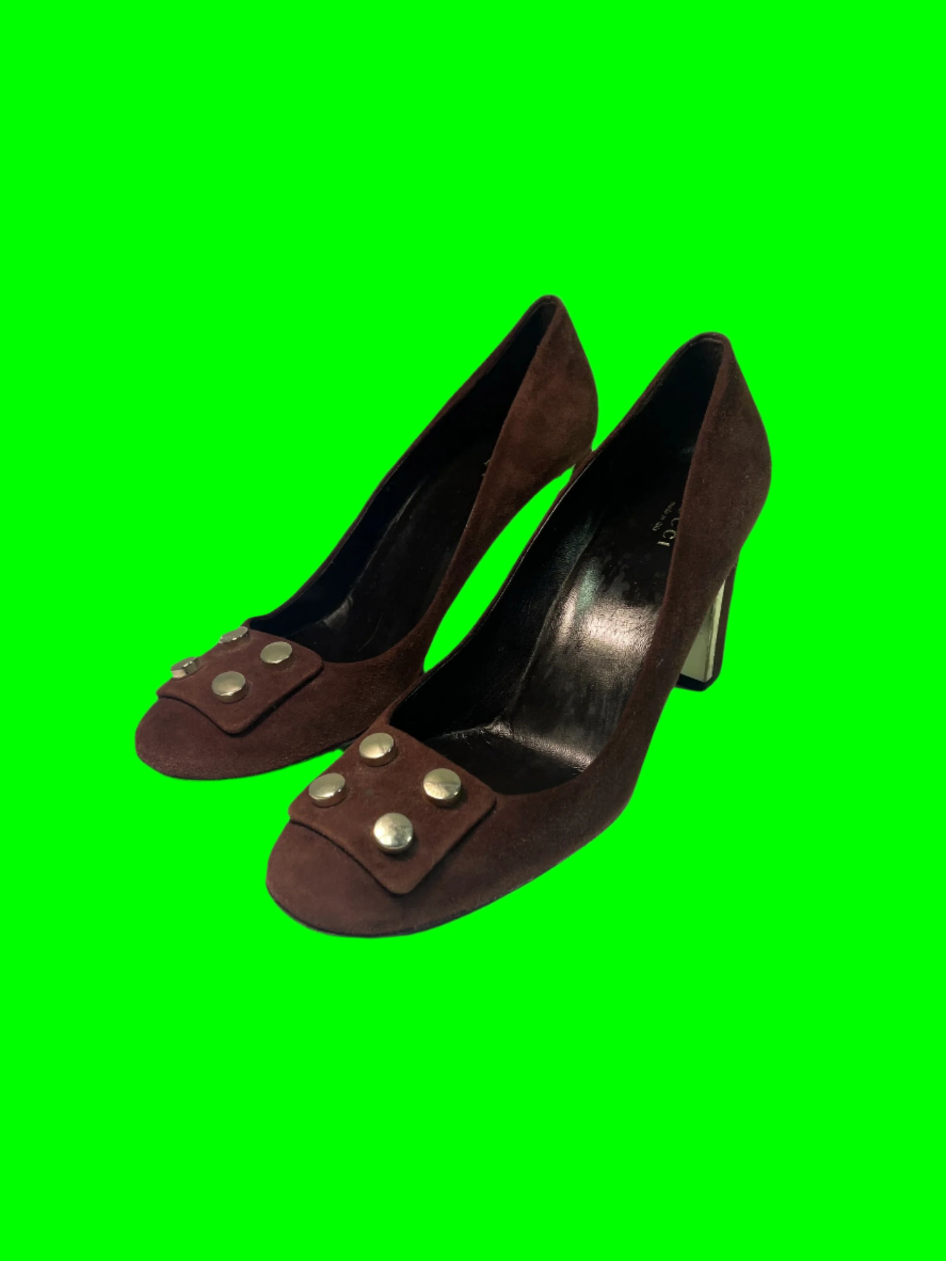 GUCCI by Tom Ford studded brown suede rounded toe pumps with golden detailing, some scratches but not really visible when worn