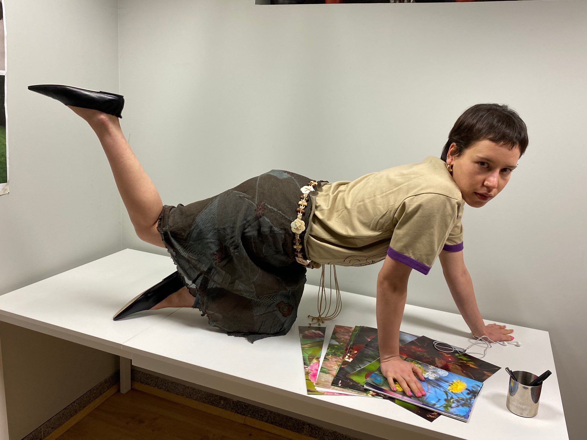 HEAVEN BY MARC JACOBS x RATGIRL Beige & purple graphic embroidery t-shirt