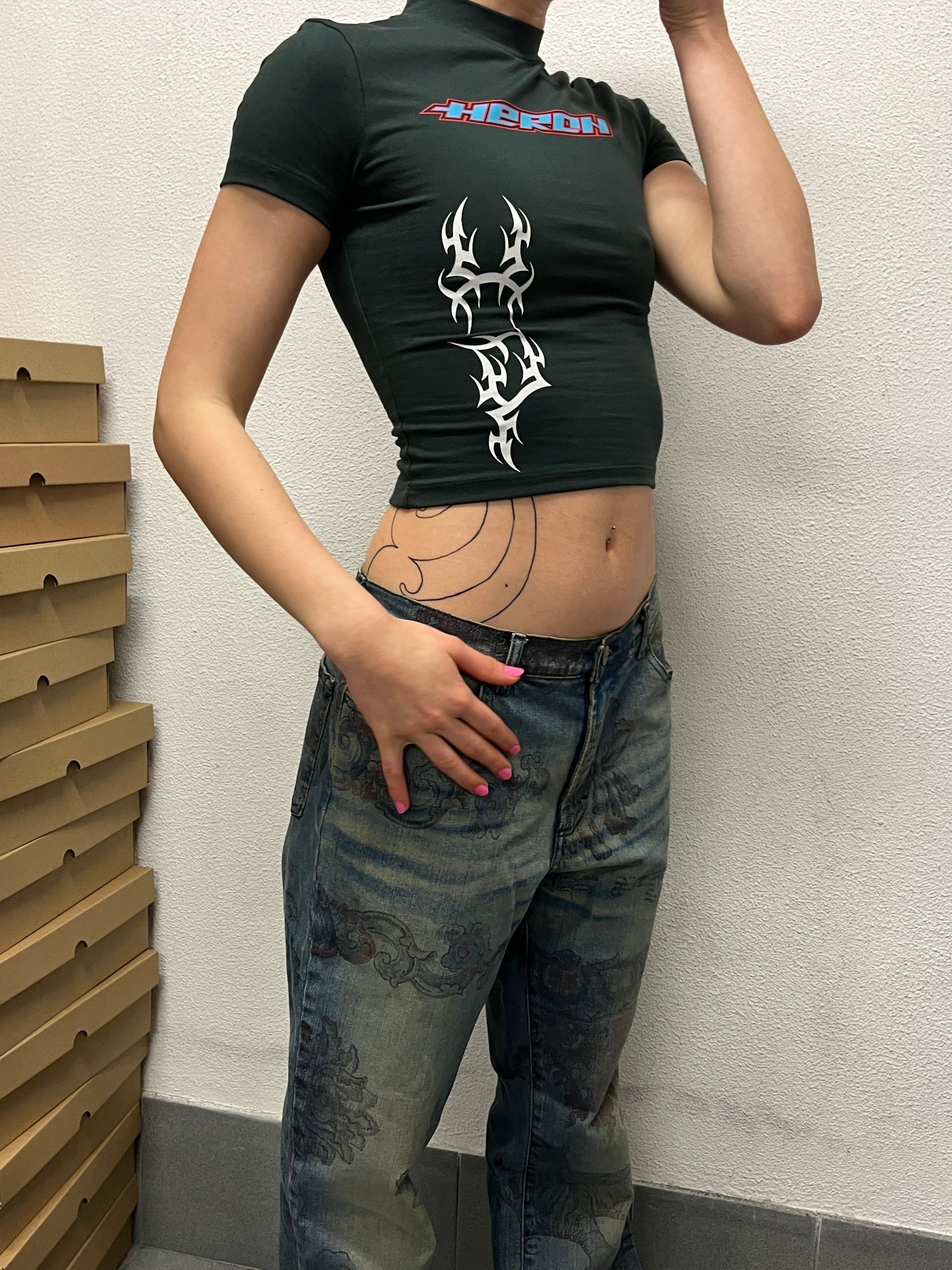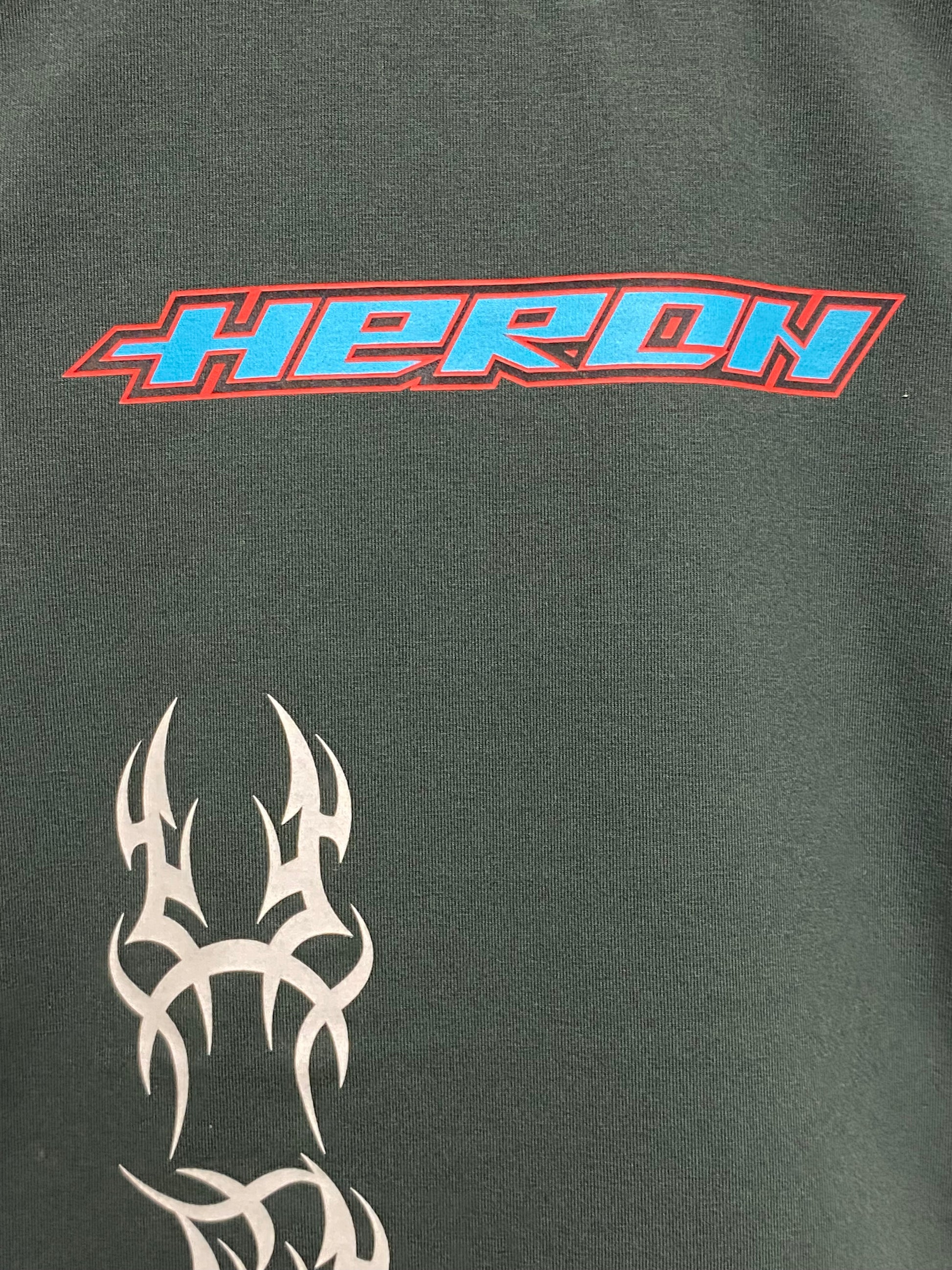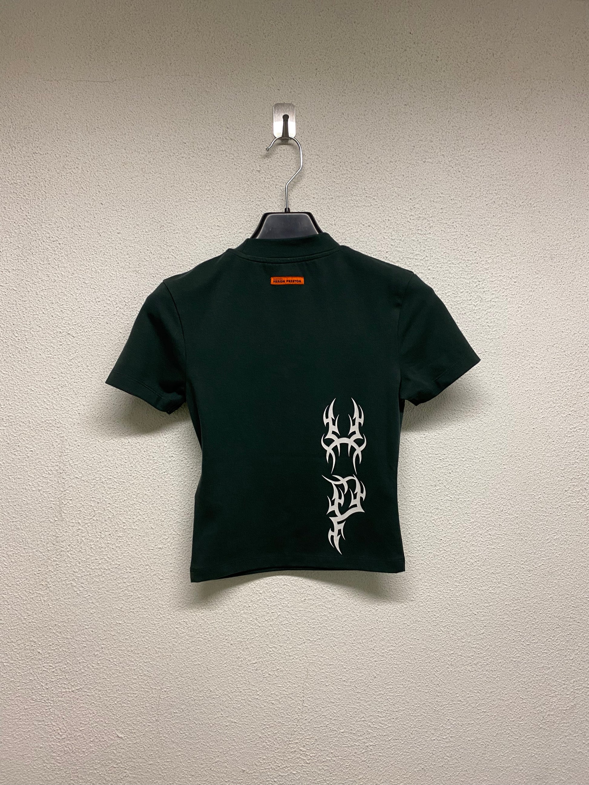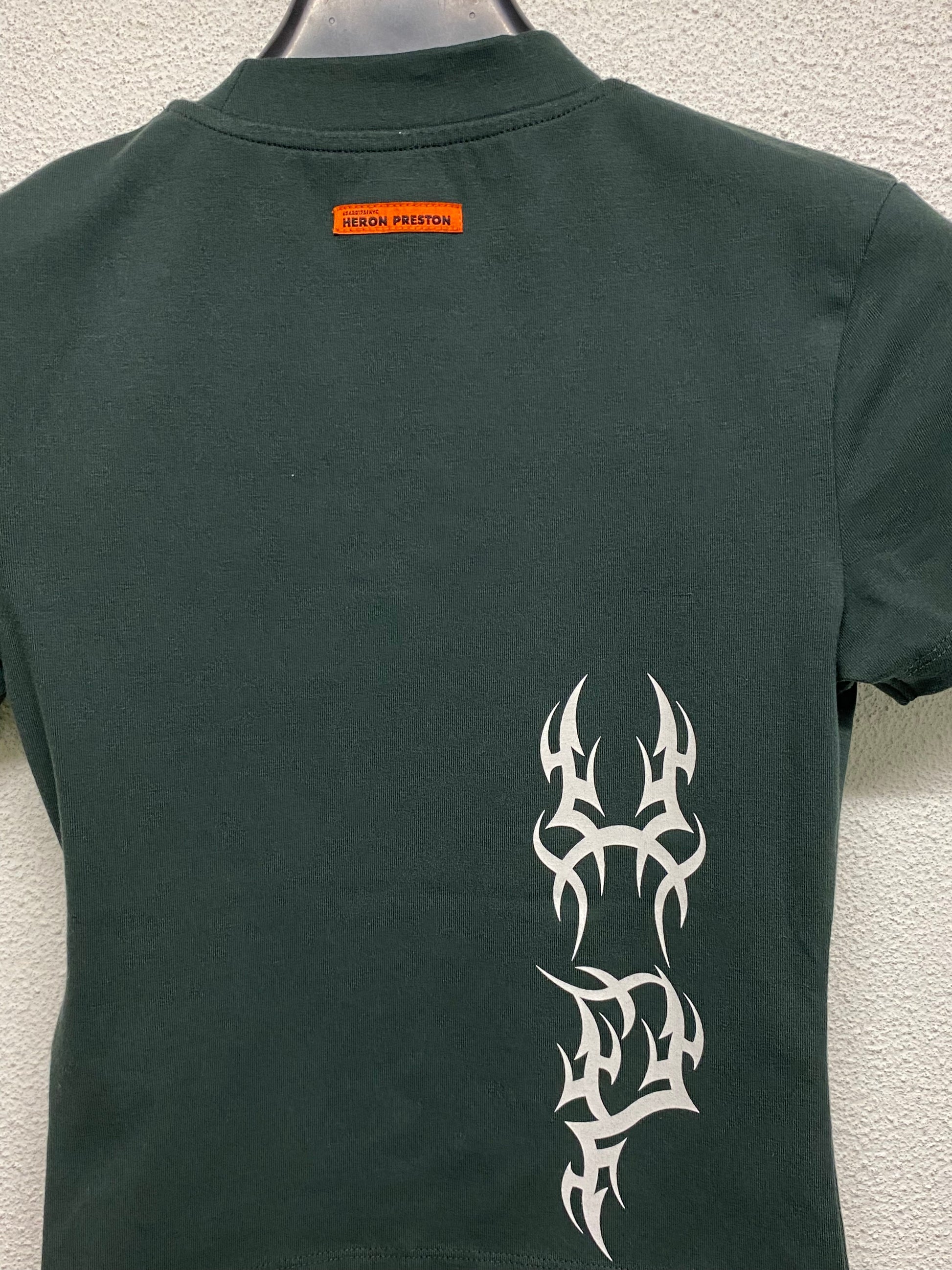 HERON PRESTON deep green racer graphic baby tee, no neck tag