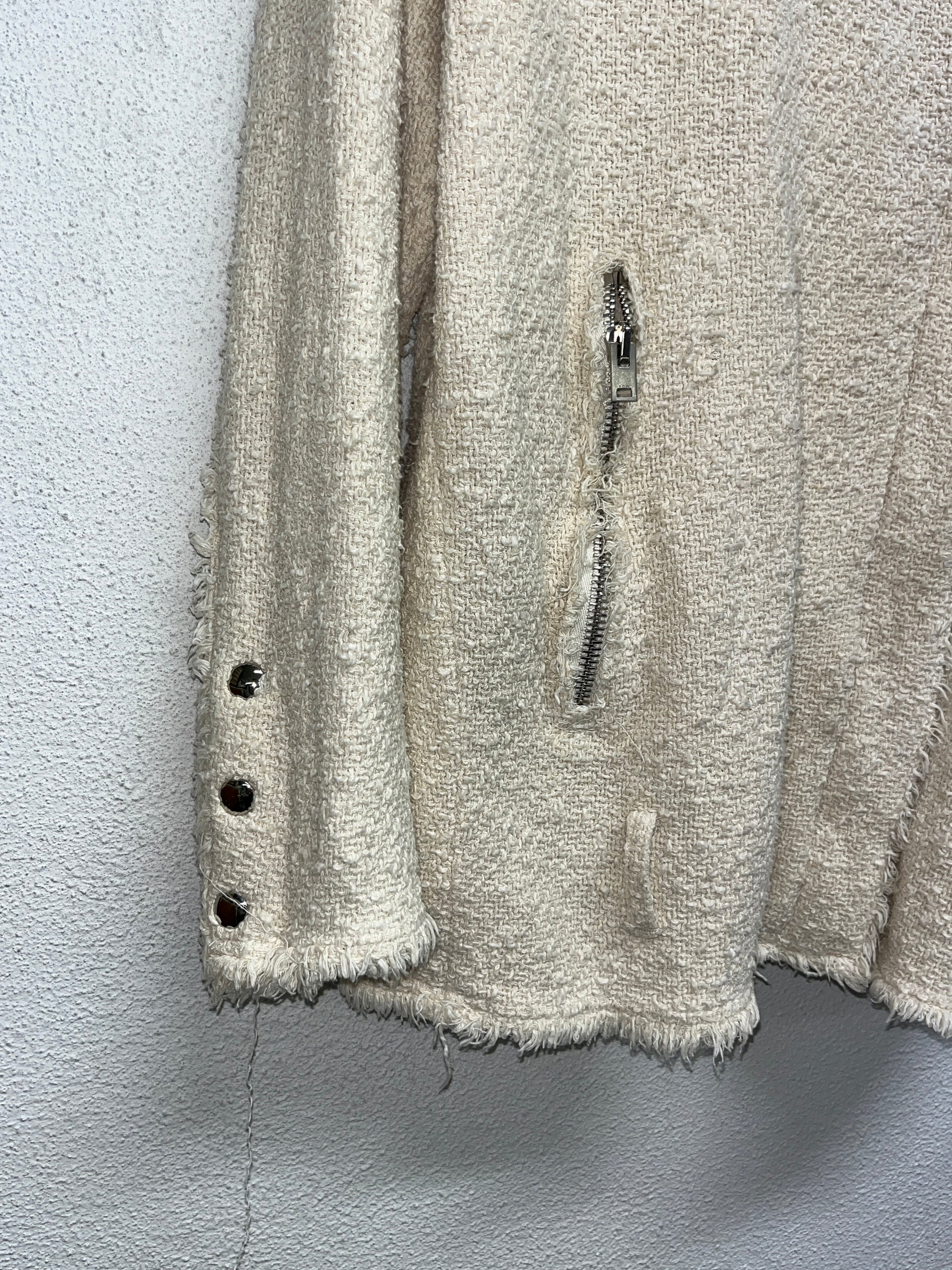 IRO beige tweed asymmetrical distressed zip-up biker jacket