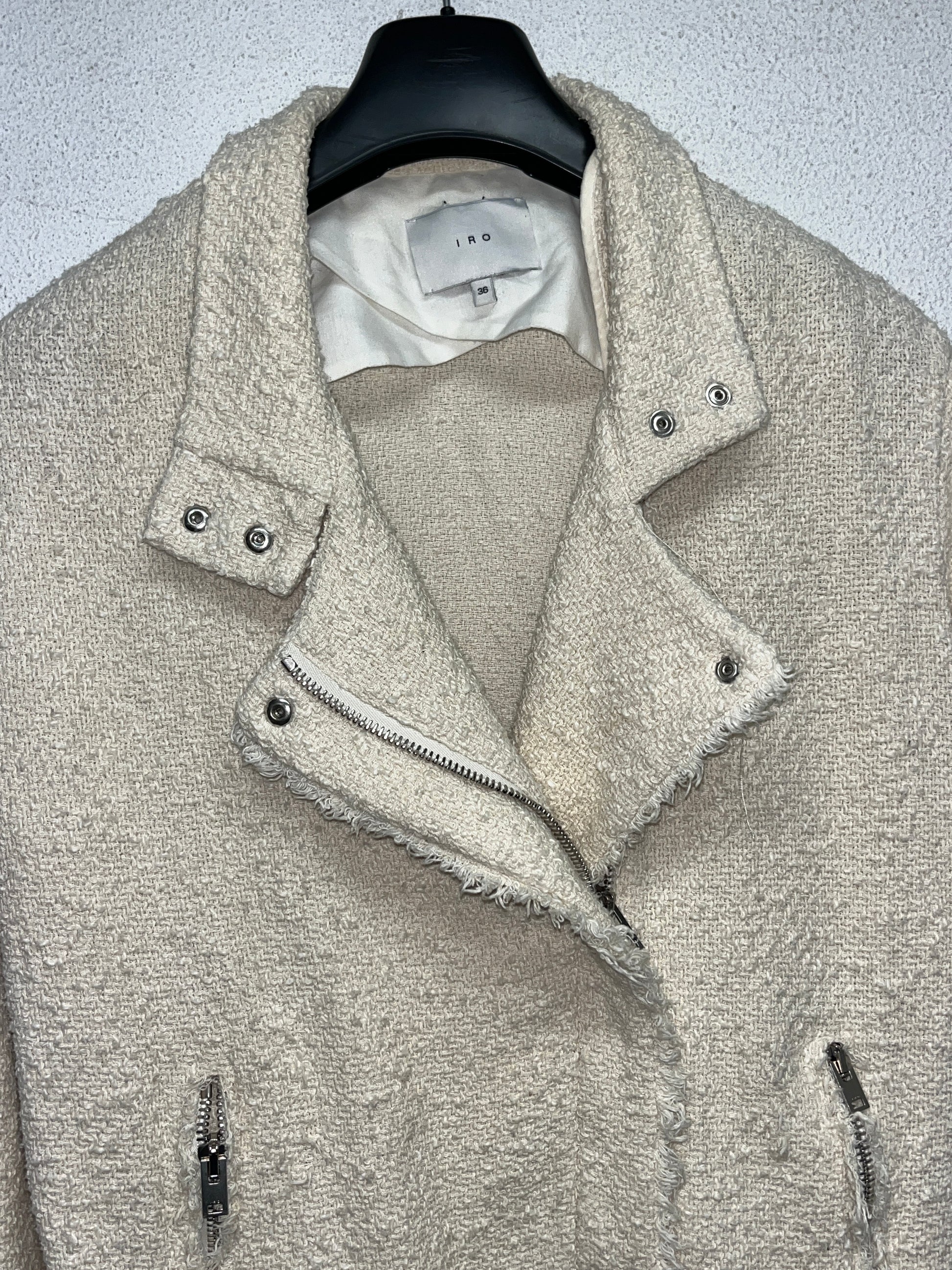 IRO tweed asymmetrical distressed zip-up biker jacket (S)