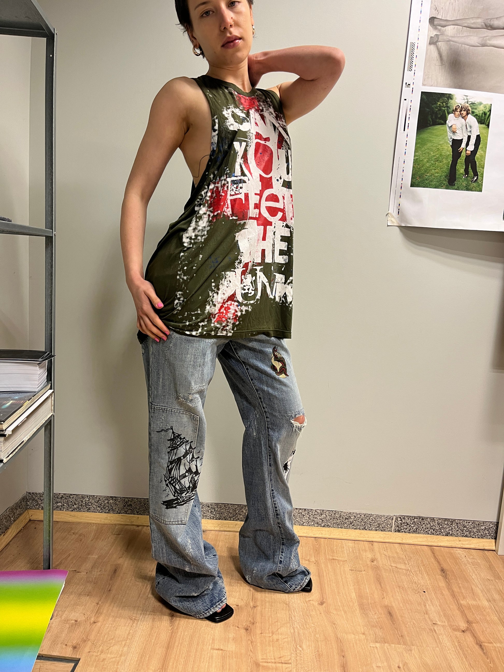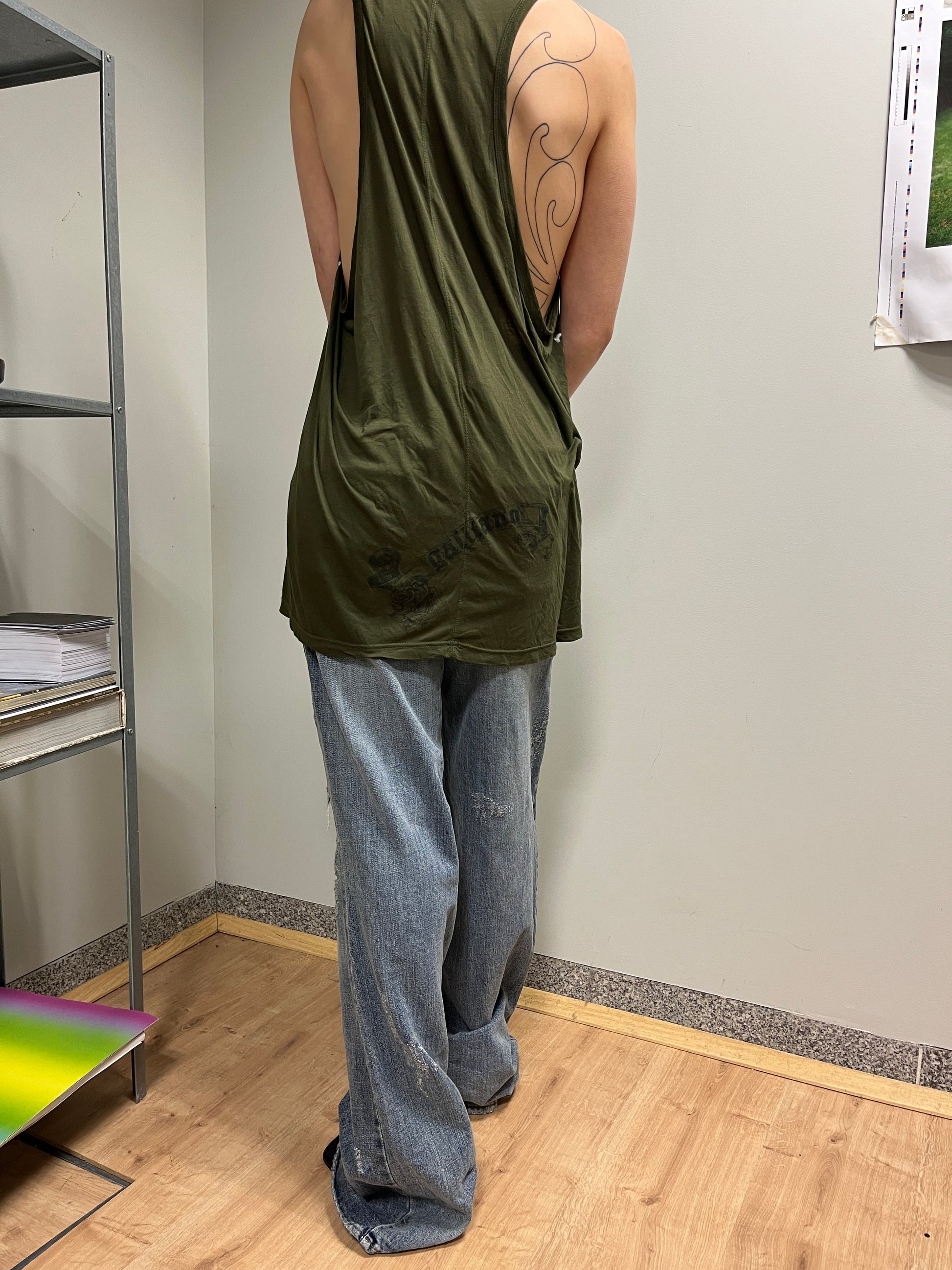 JOHN GALLIANO 2000s green graphic sleeveless top or dress (L)