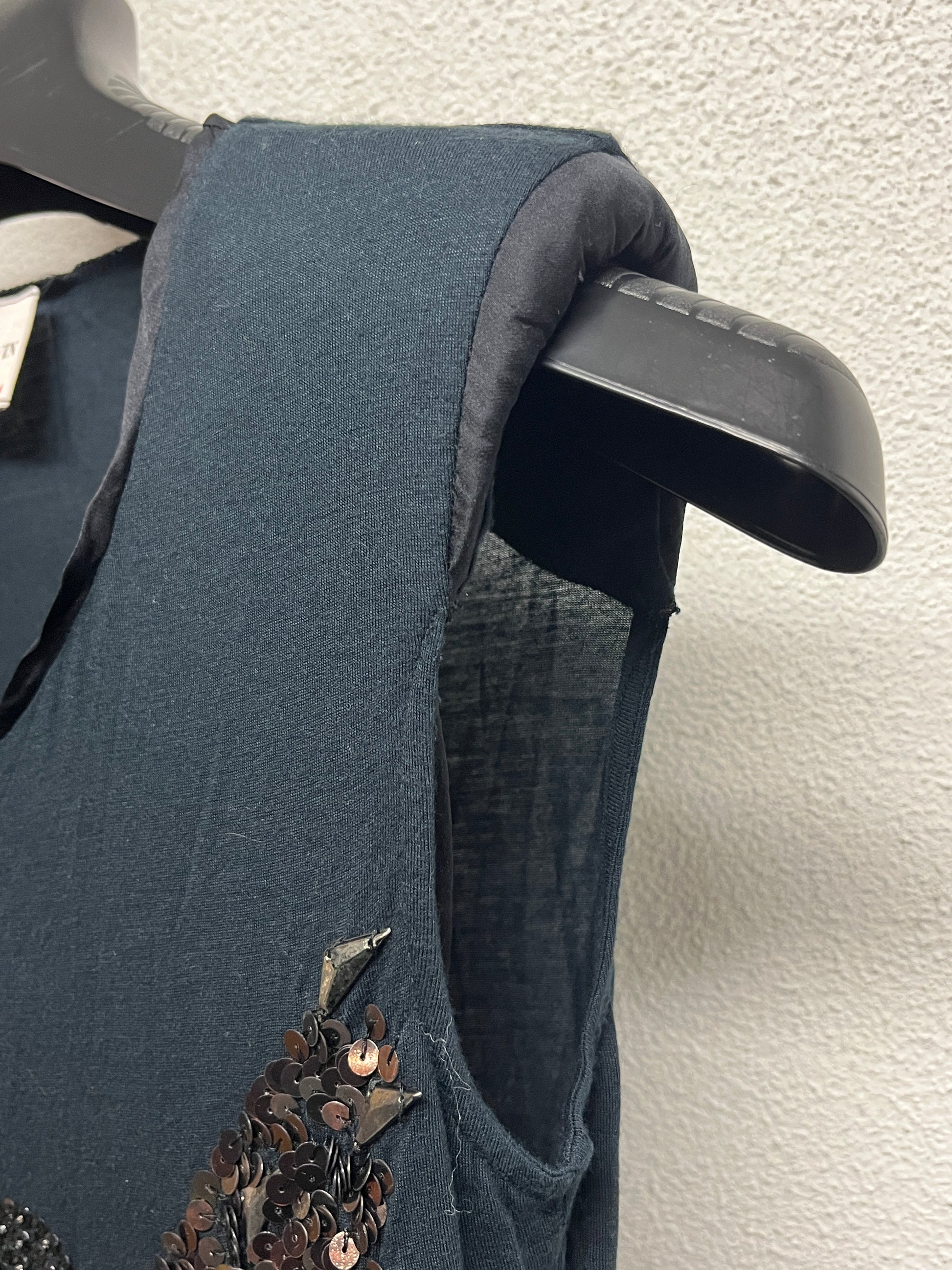LANVIN sleeveless sequin maxi top or mini dress with shoulder pads, care label cut