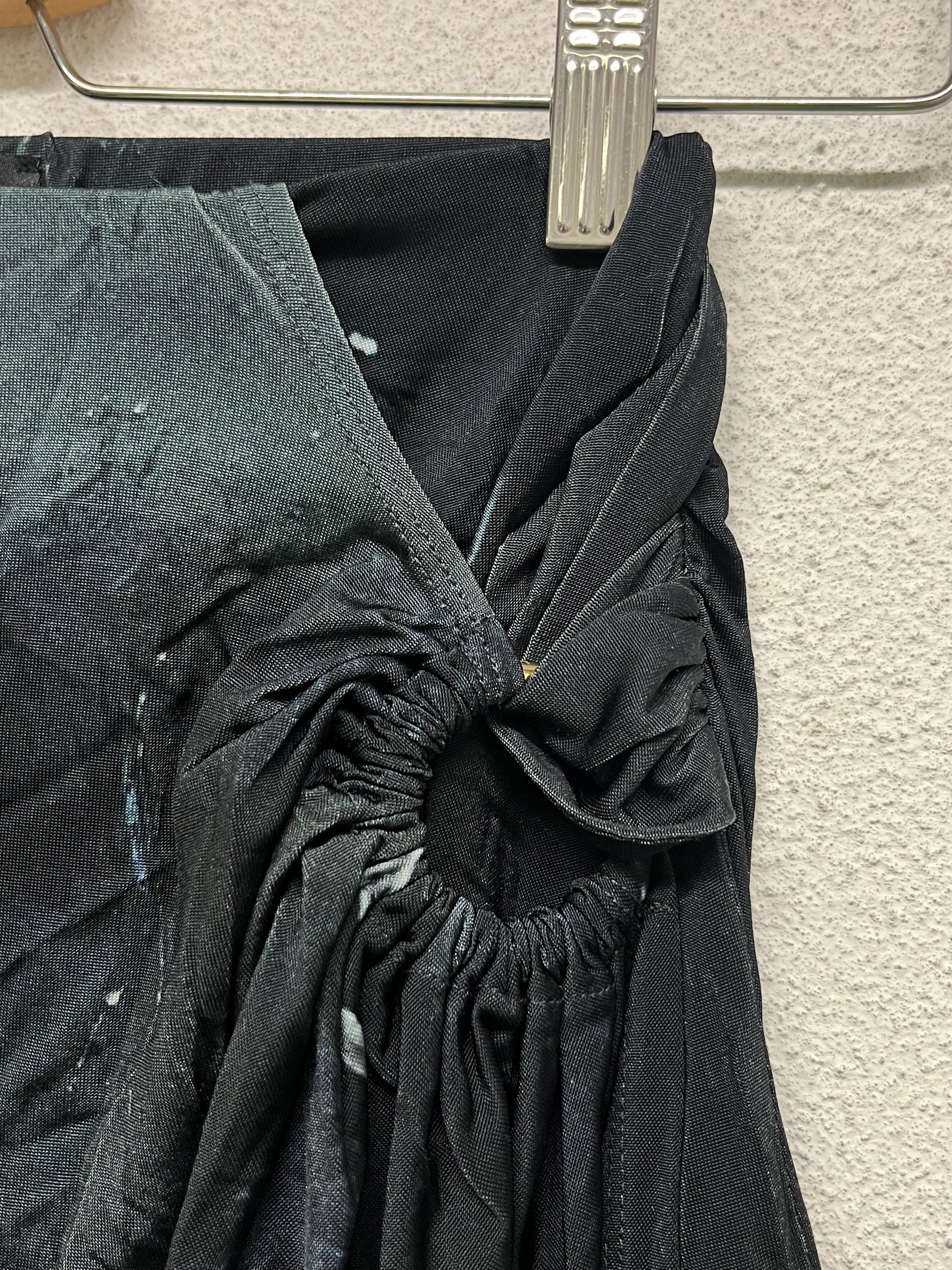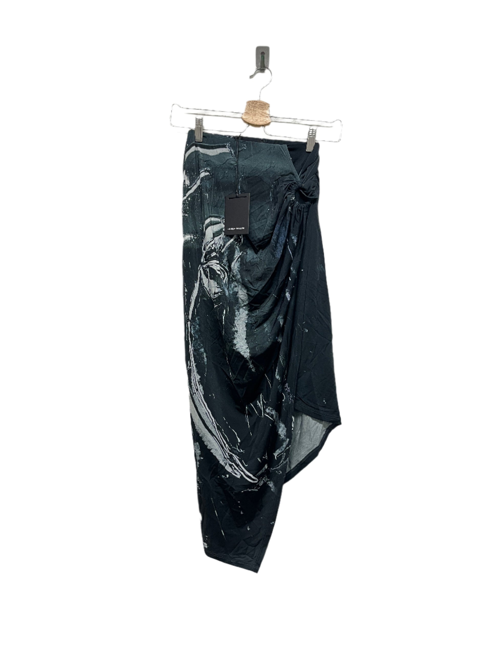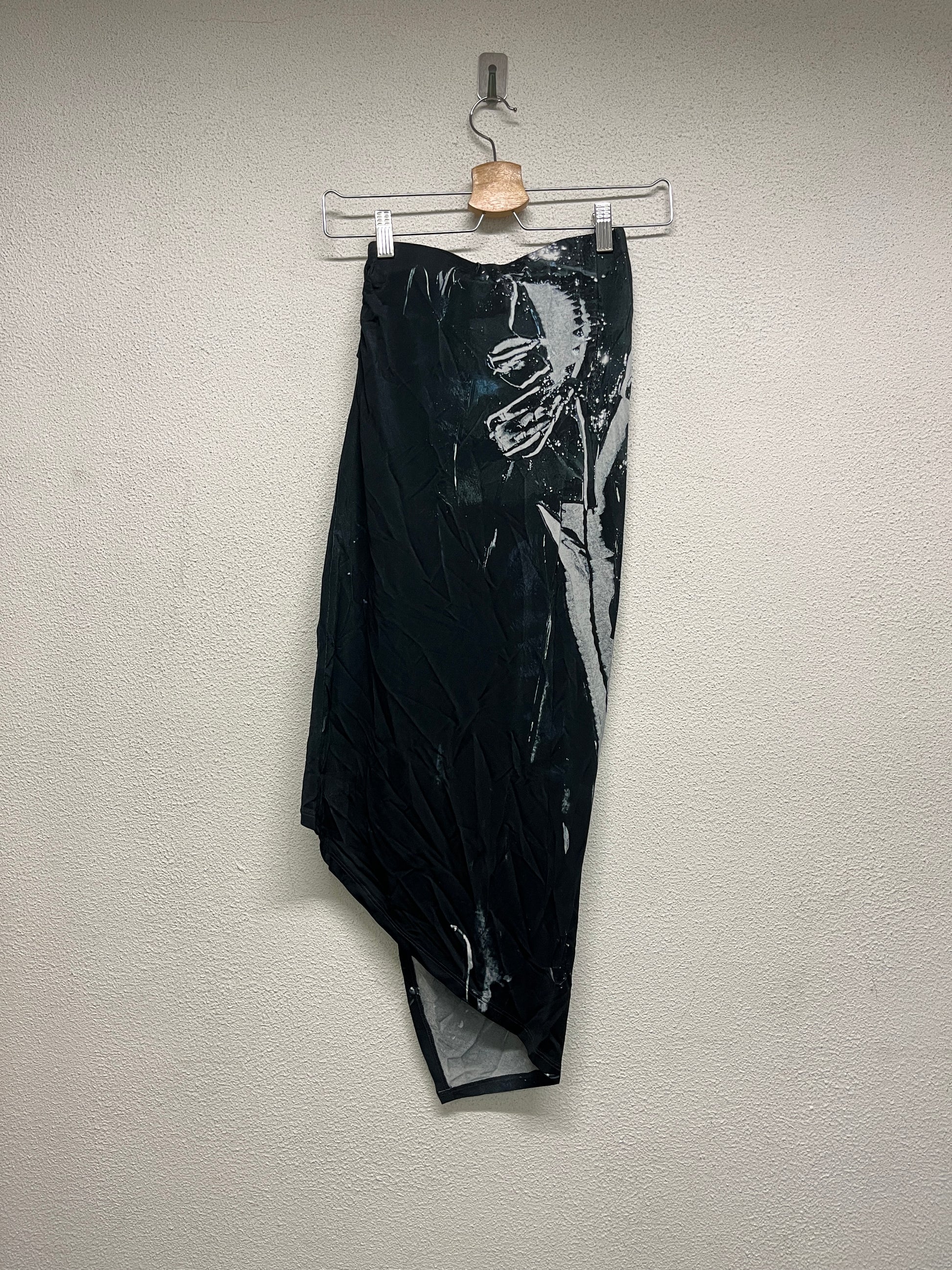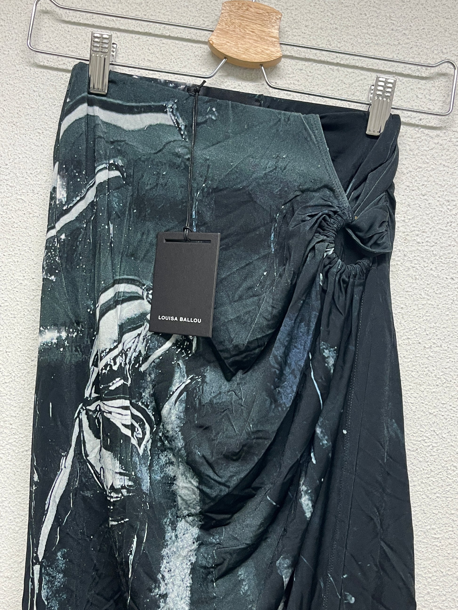 LOUISA BALLOU abstract print asymmetrical draped midi skirt with golden hoop (XS/S)