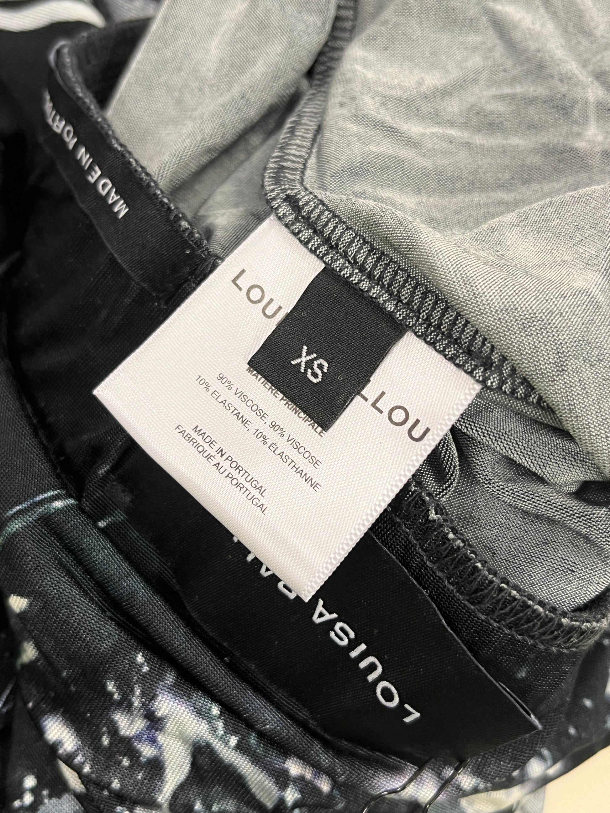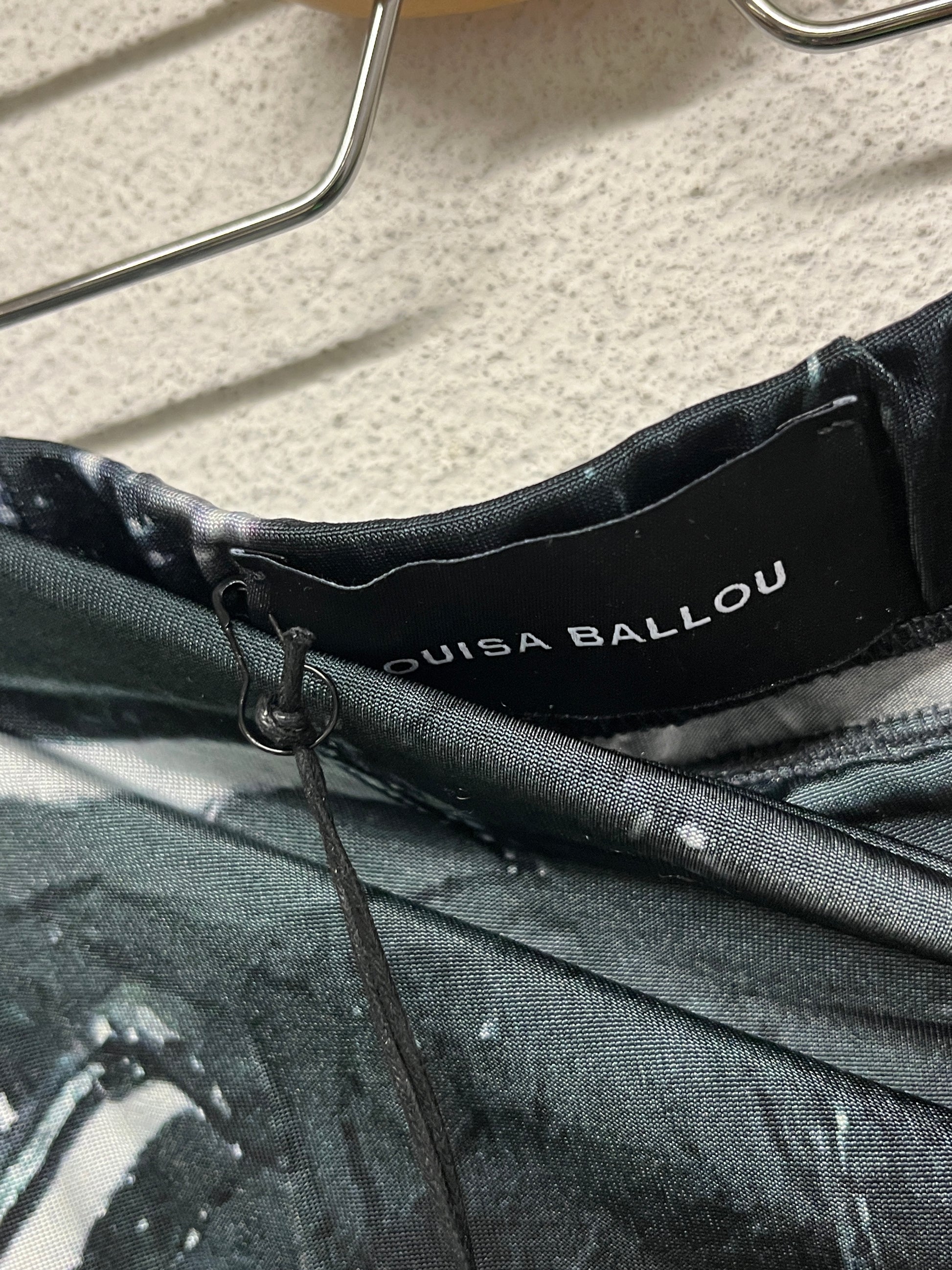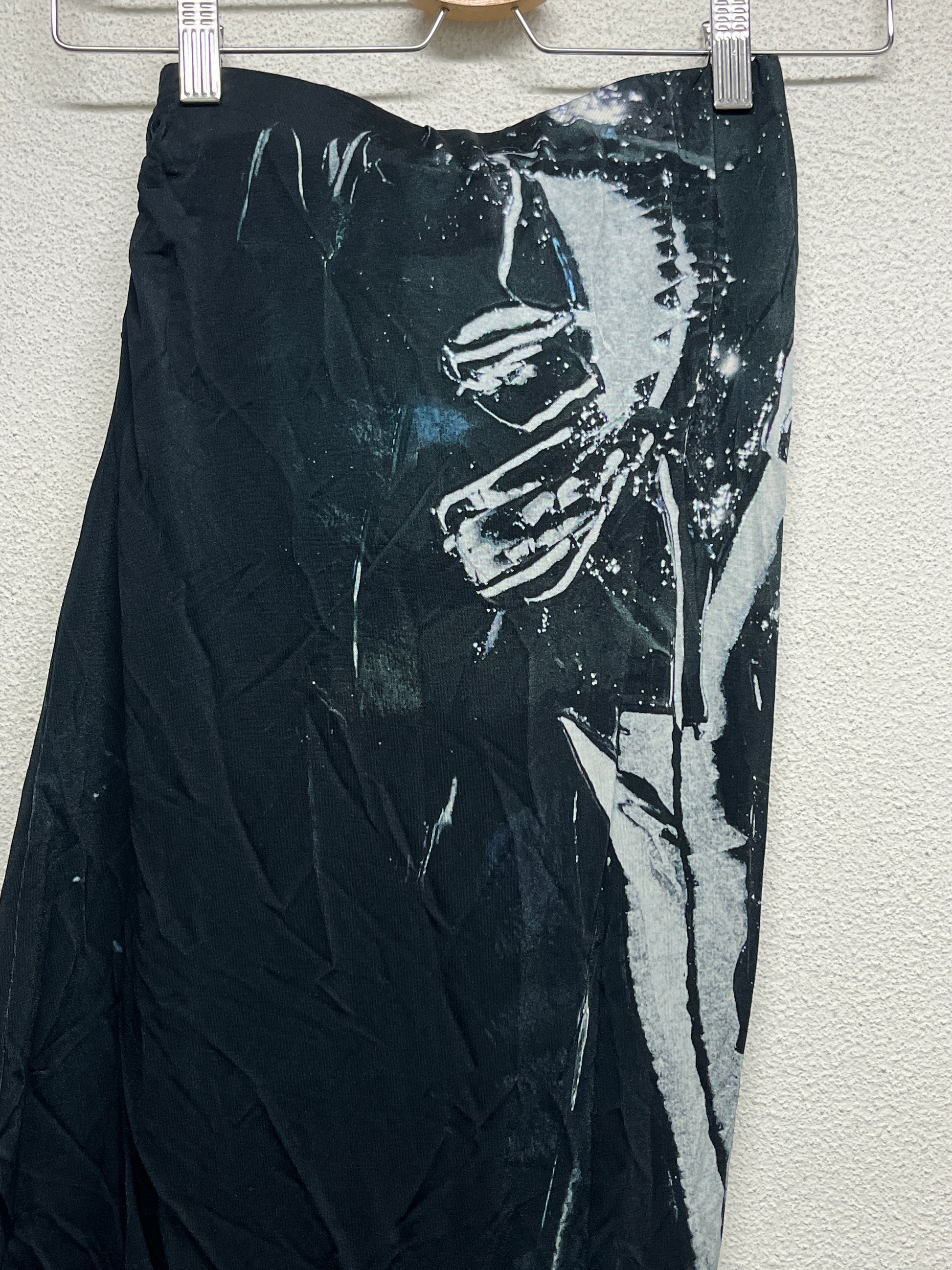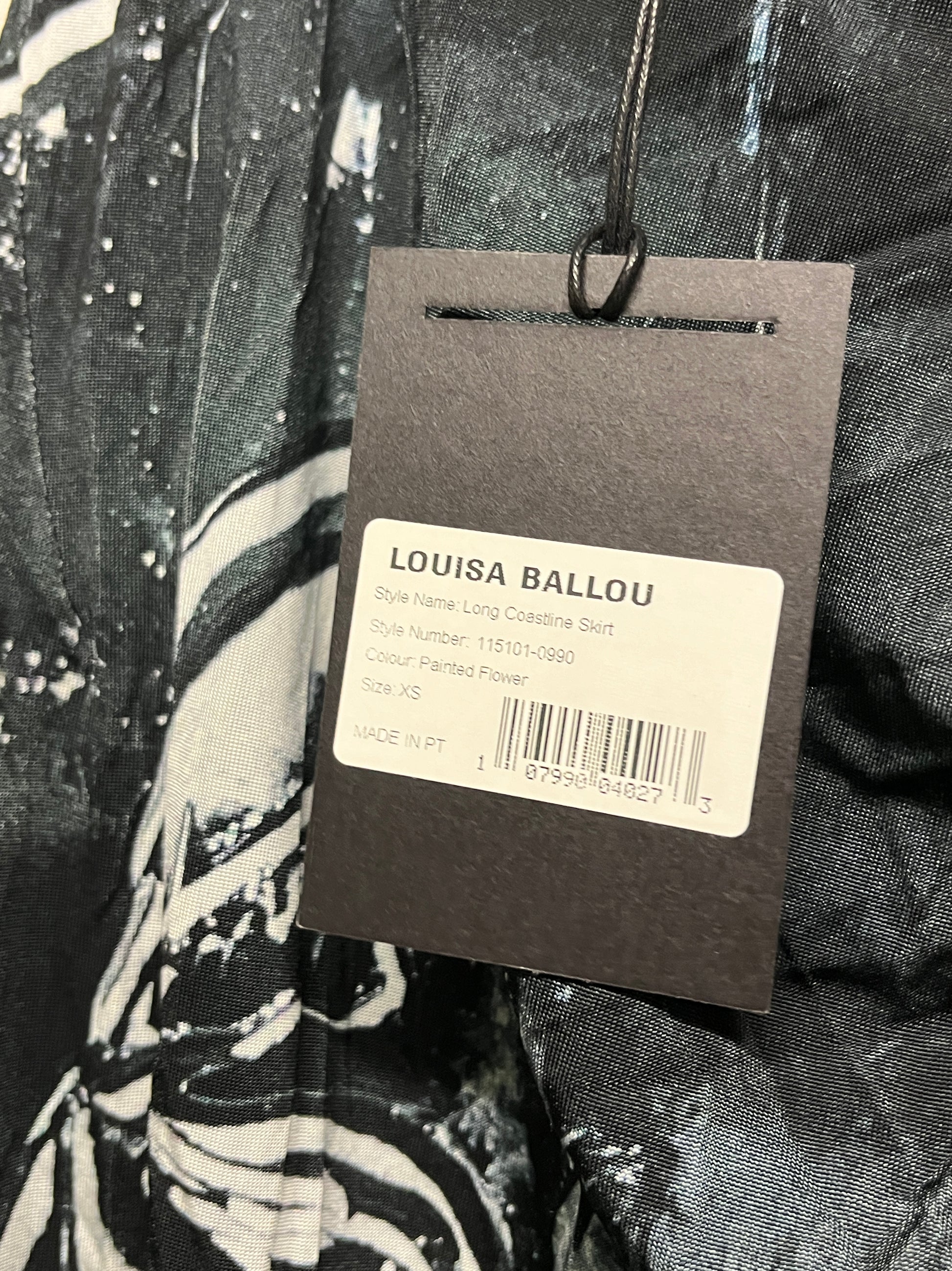 LOUISA BALLOU abstract print asymmetrical draped midi skirt with golden hoop (XS/S)