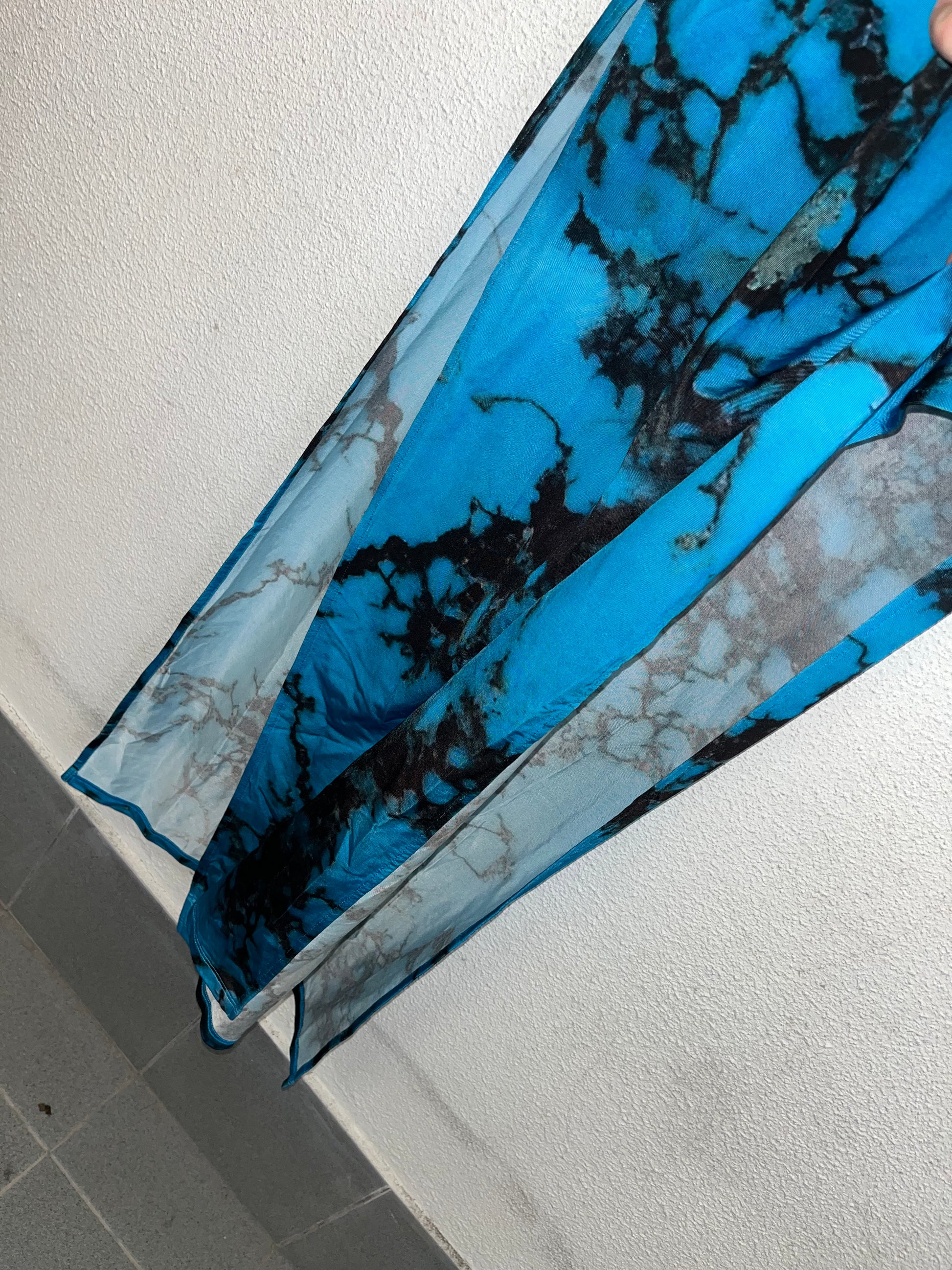 LOUISA BALLOU blue marble longsleeve maxi dress (L)