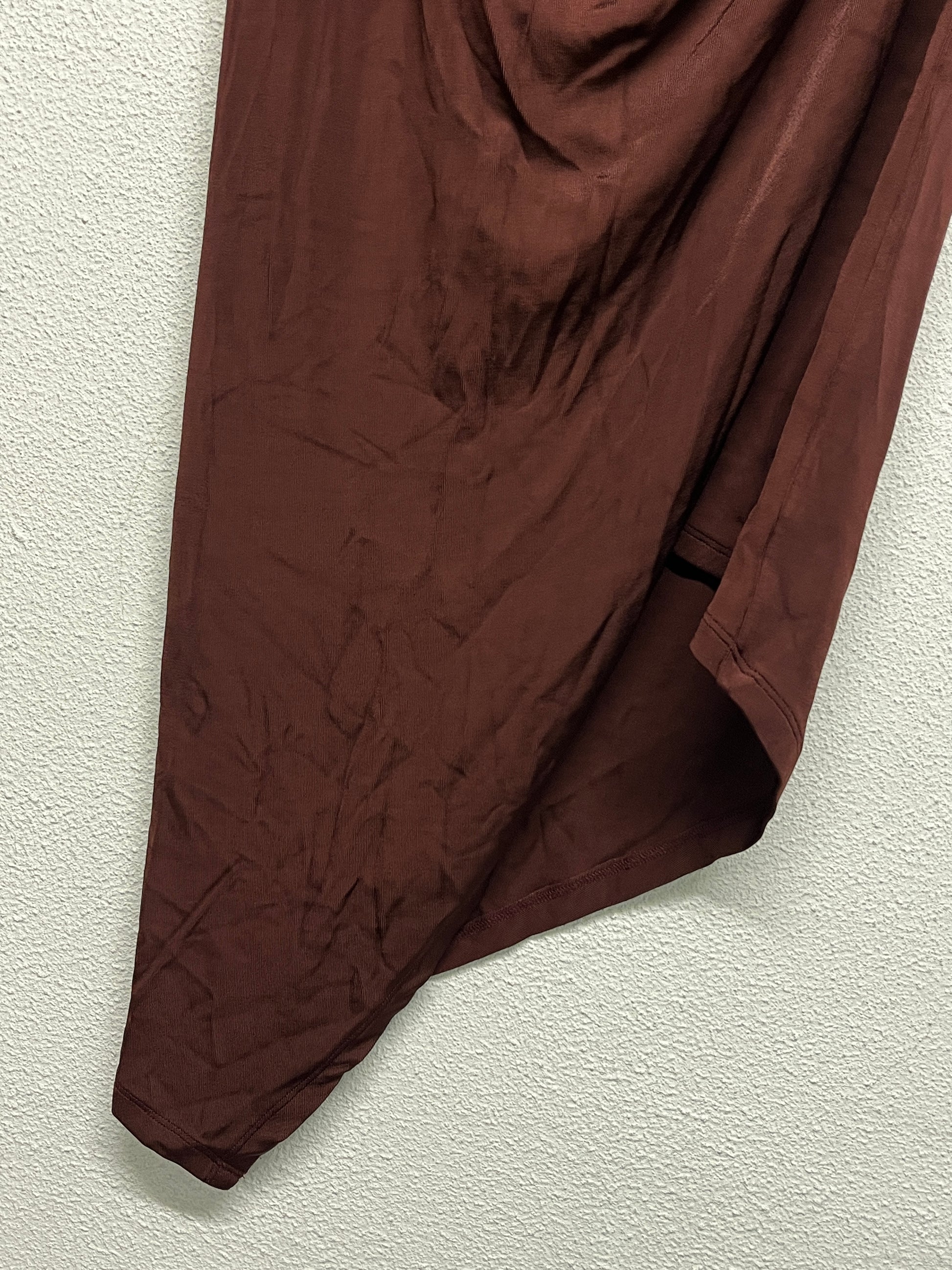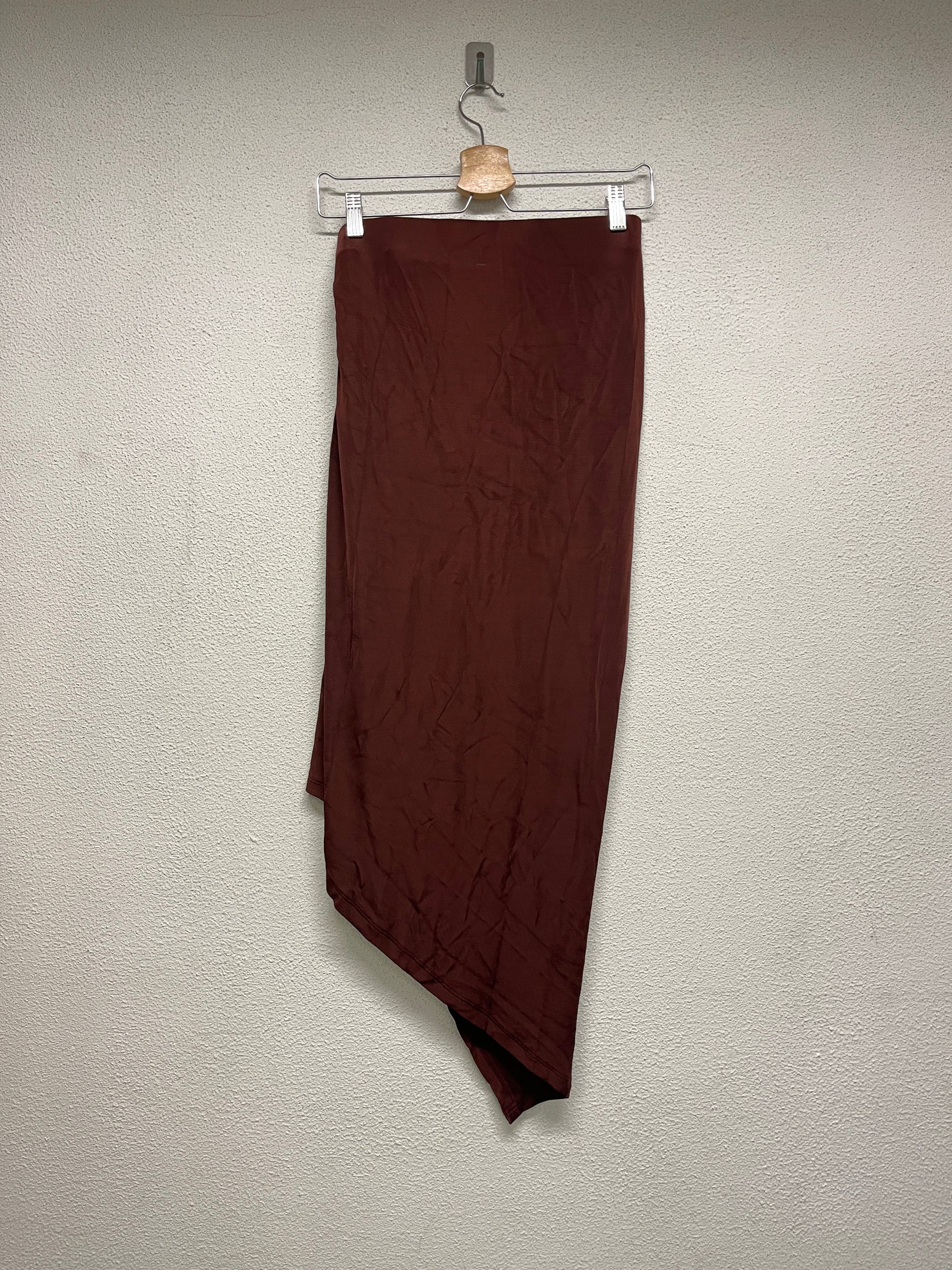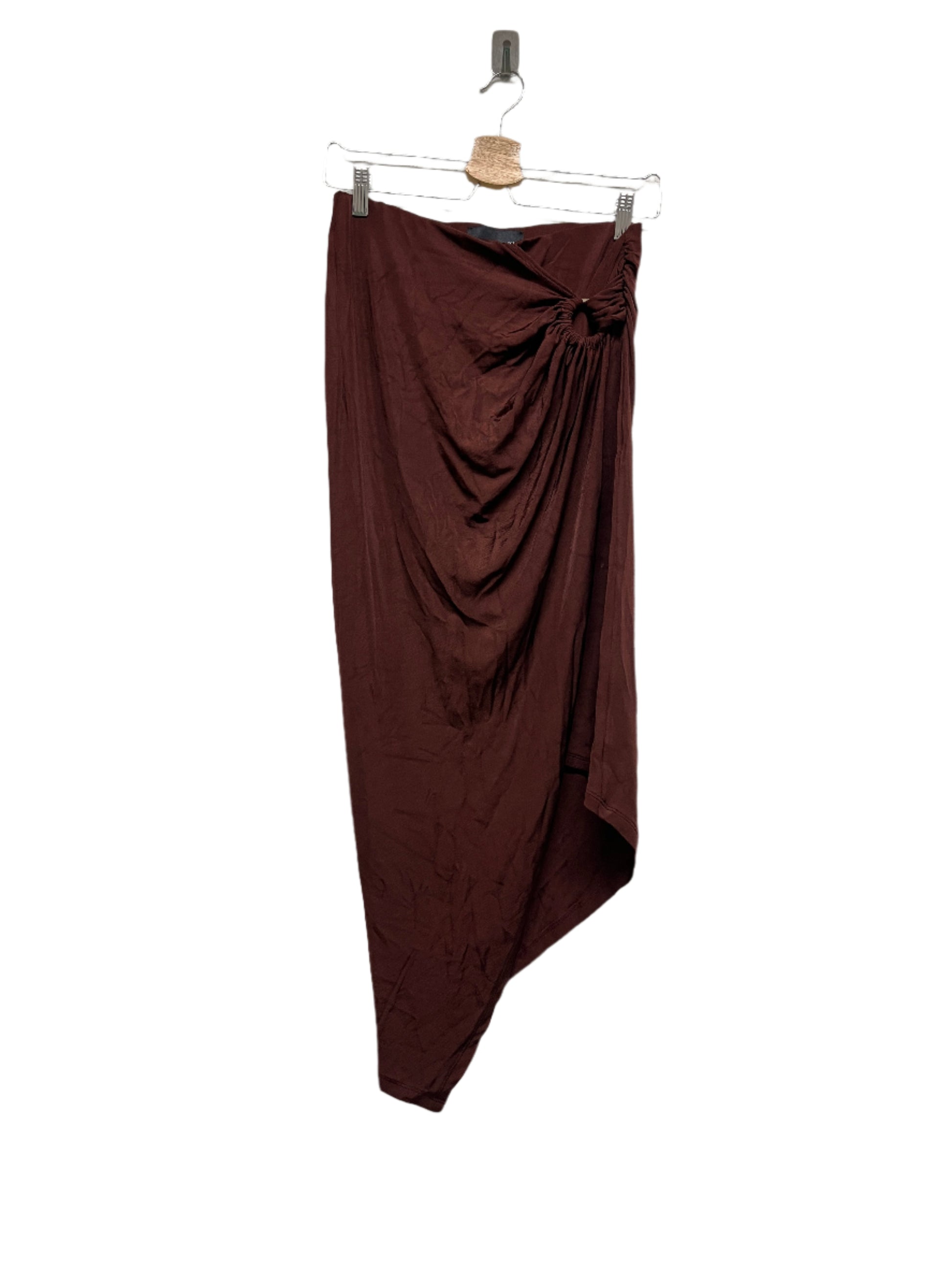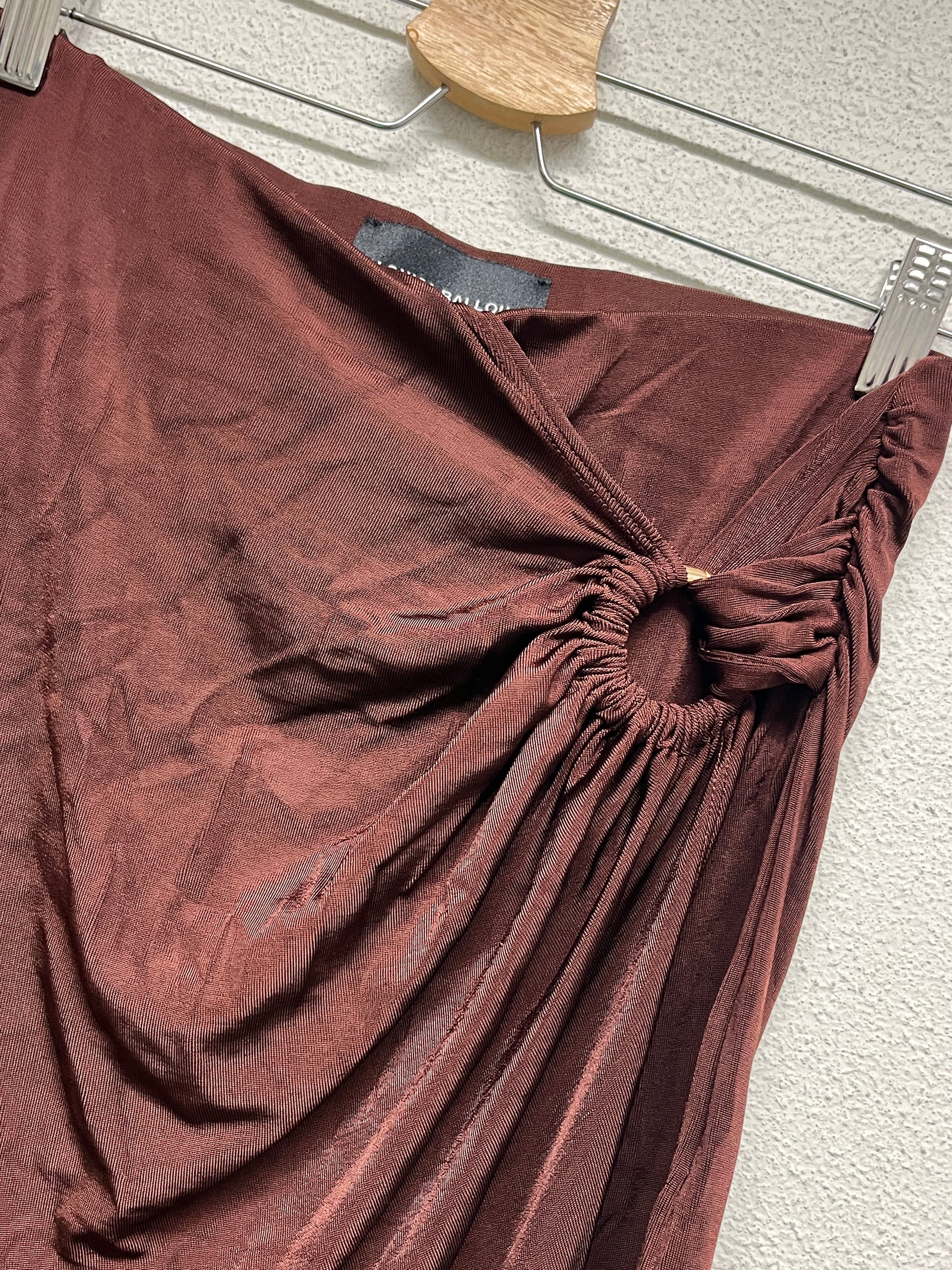 LOUISA BALLOU brown asymmetrical draped midi skirt with golden hoop (XL)