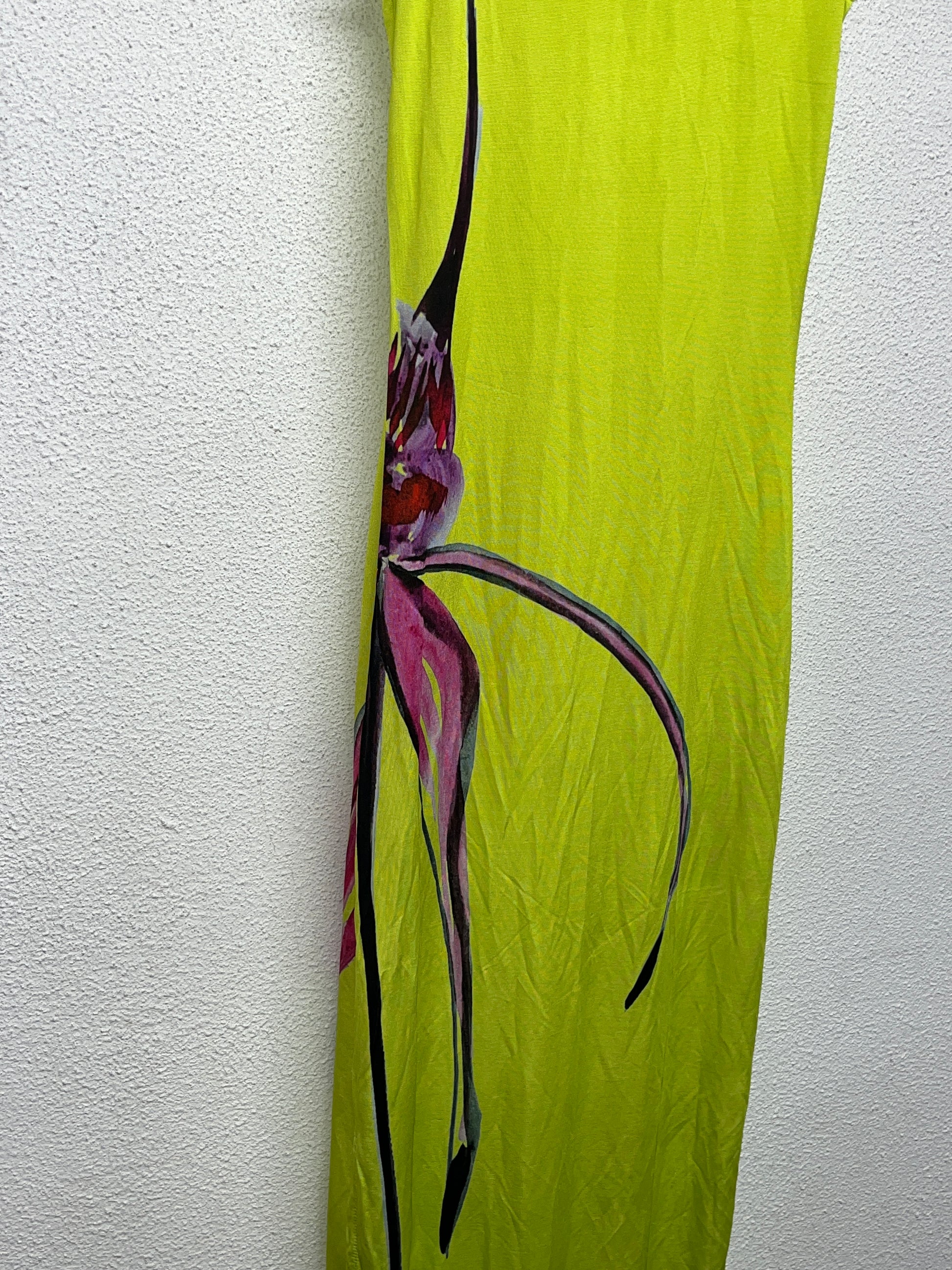 LOUISA BALLOU green stretchy maxi flower print dress (M)
