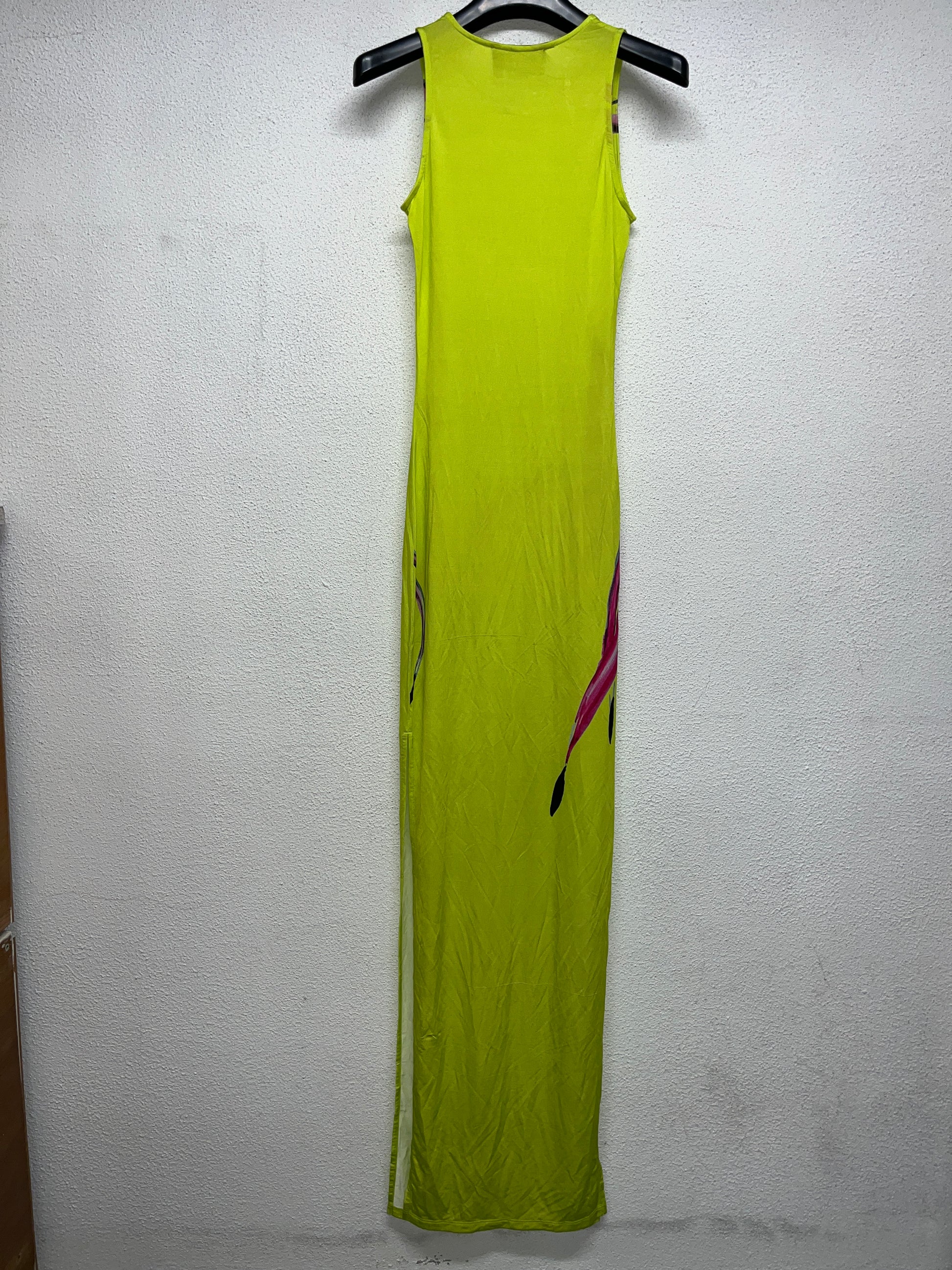 LOUISA BALLOU green stretchy maxi flower print dress, no care label