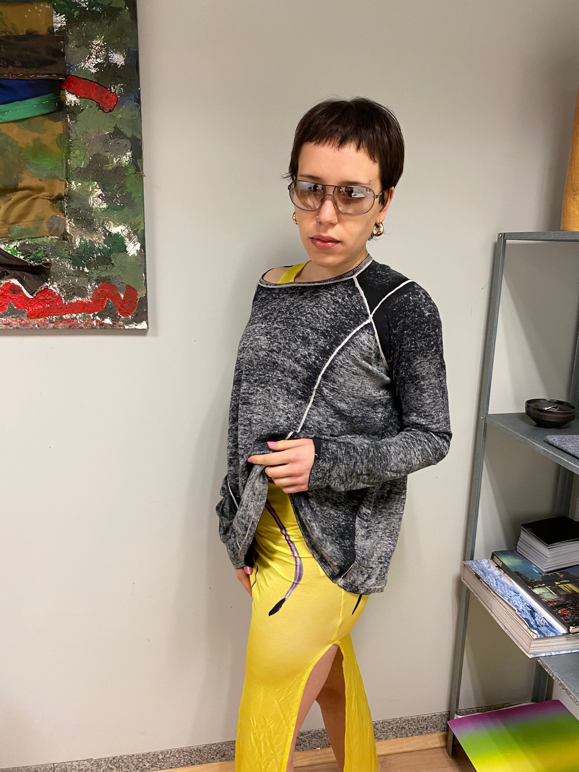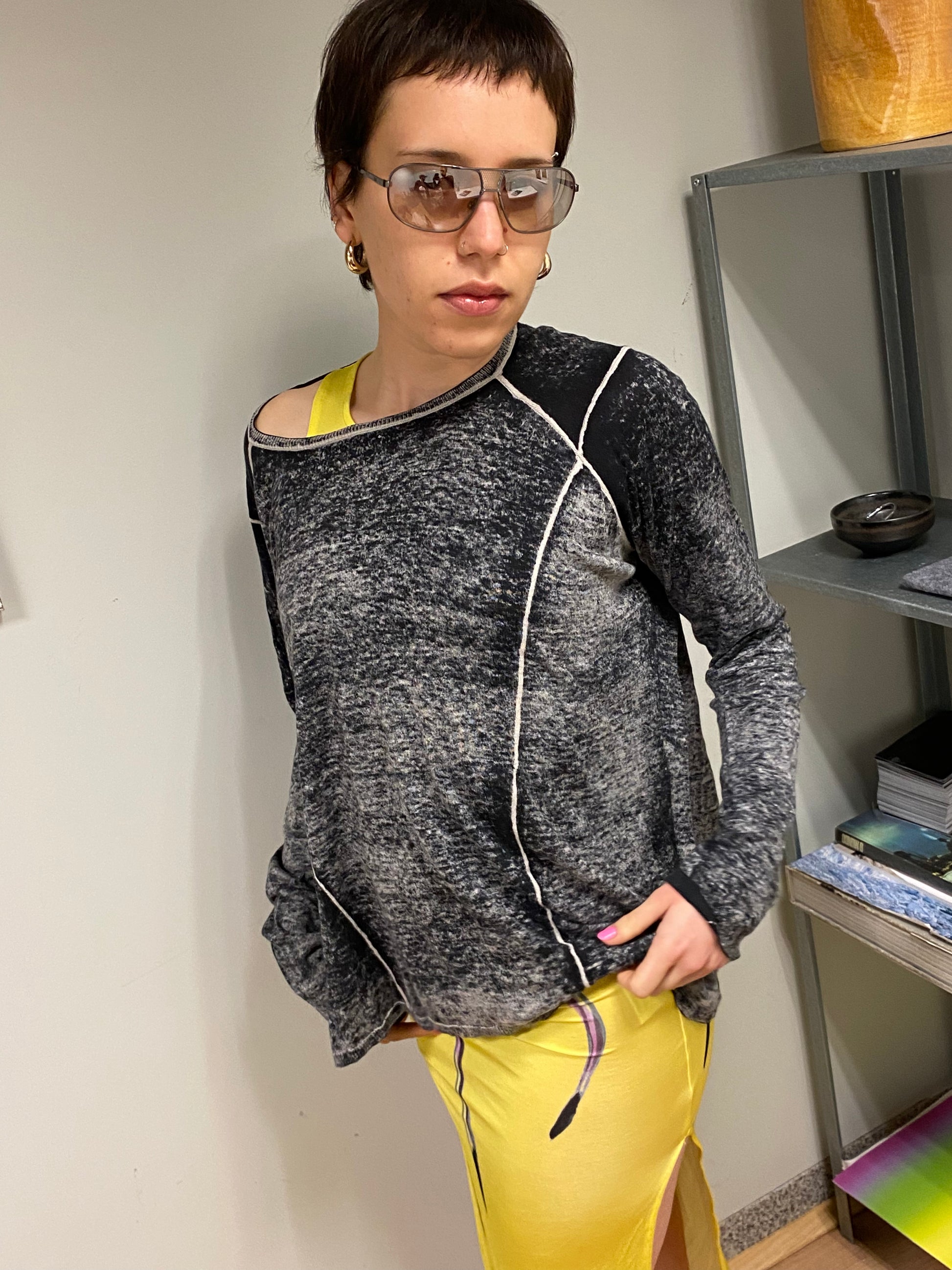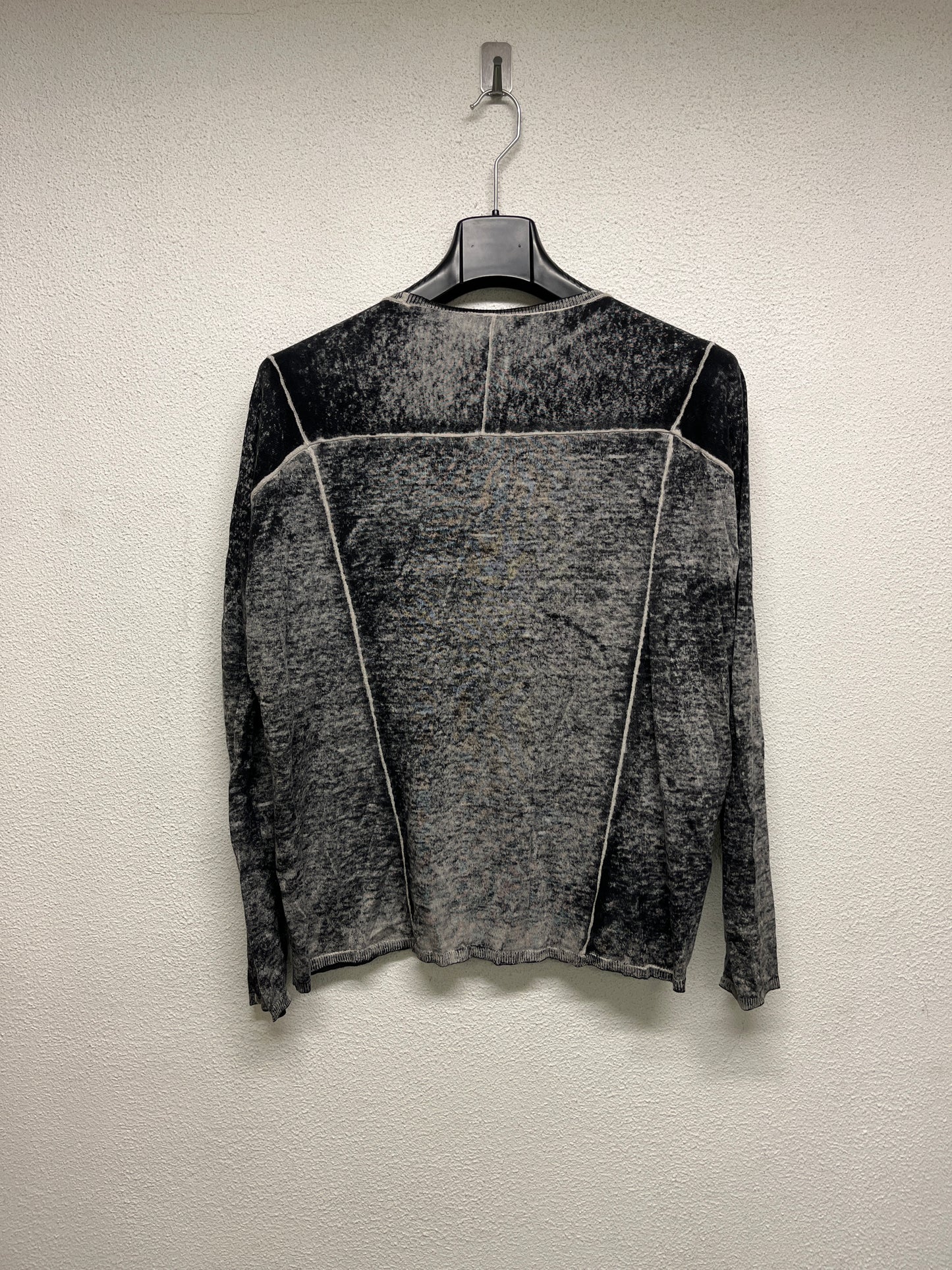 MAJE grey acid wash lightweight silk & cashmere longsleeve sweater