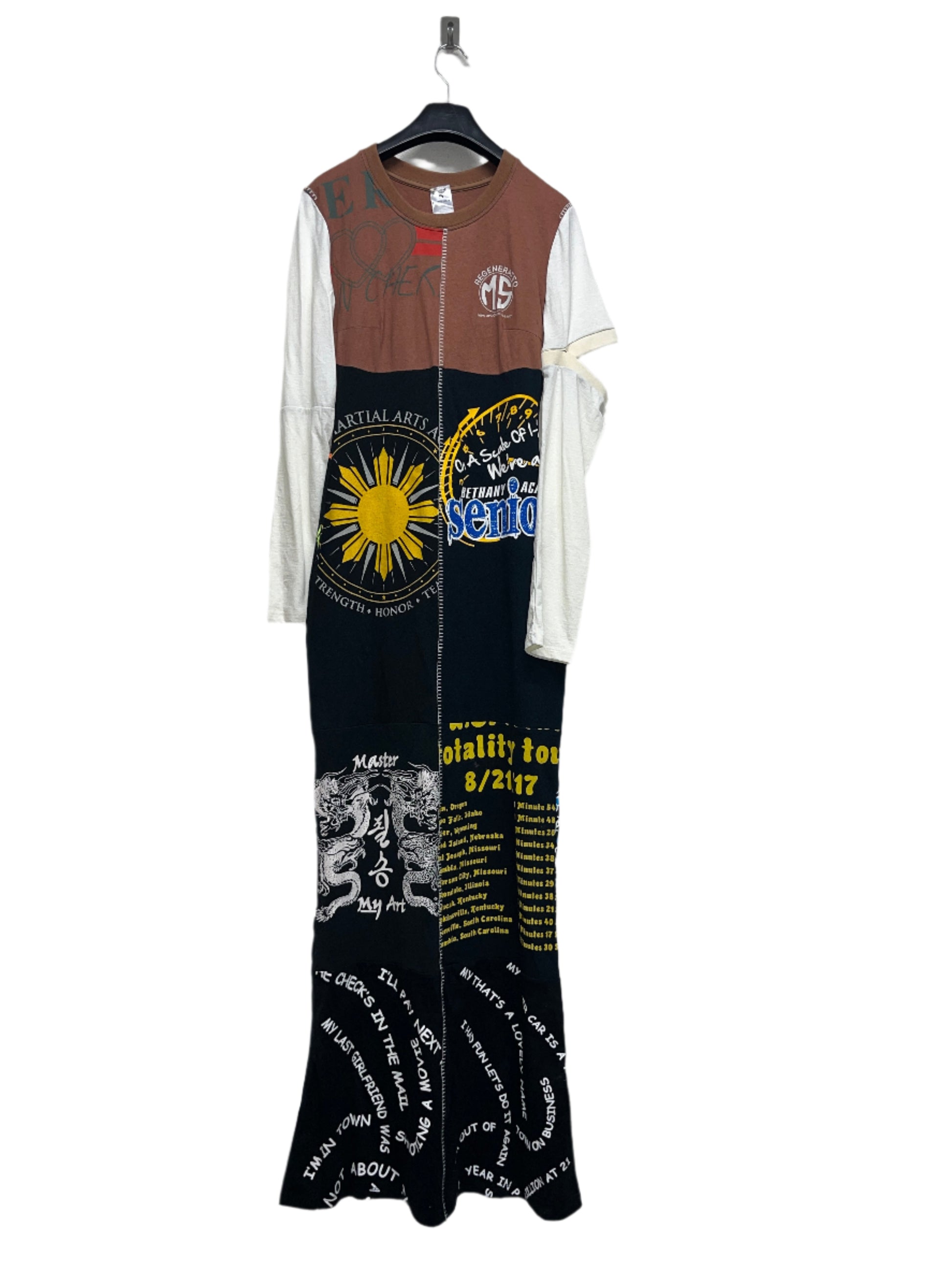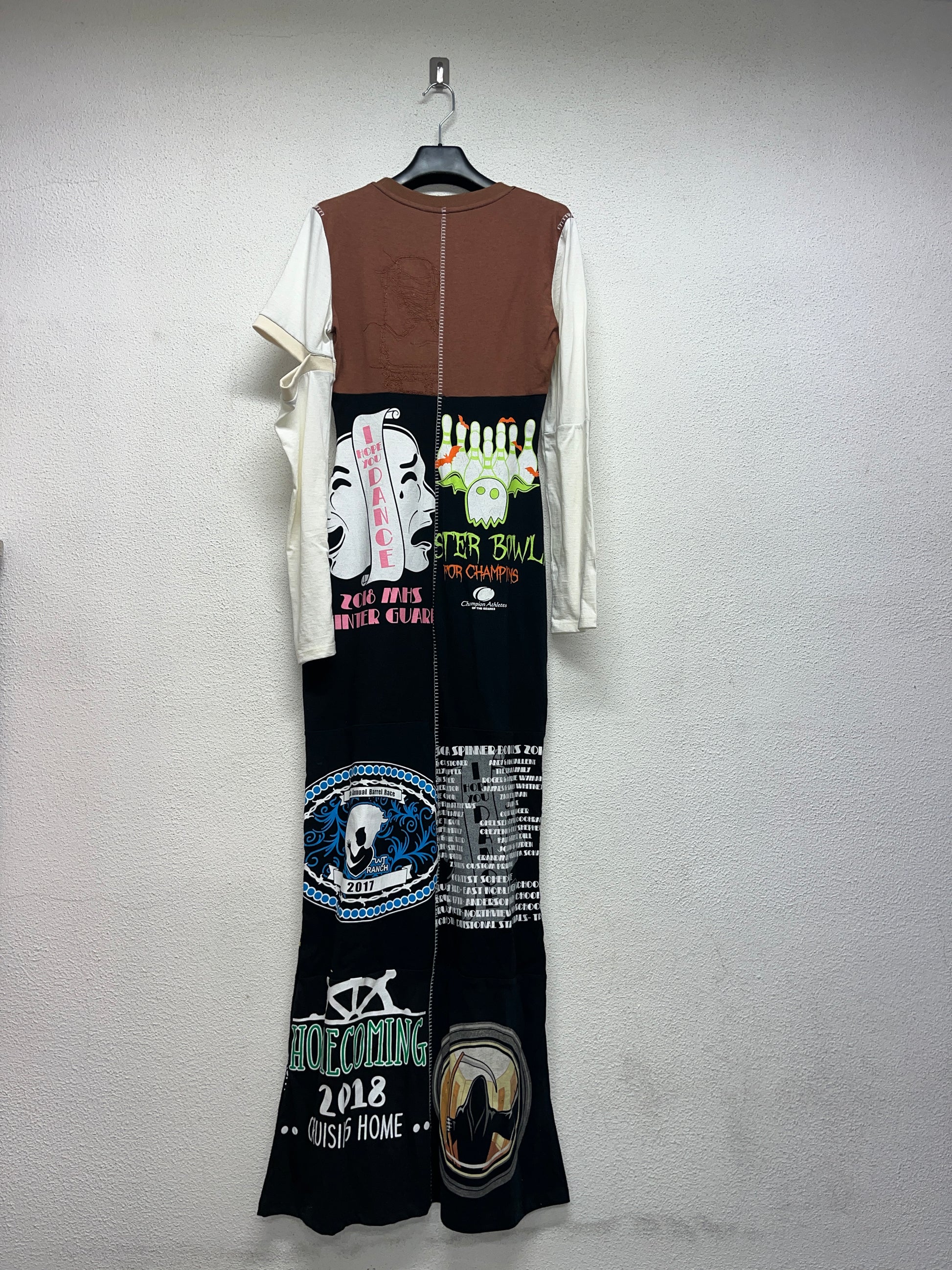 MARINE SERRE regenerated graphic maxi black and white dress with arm cut out, no care label