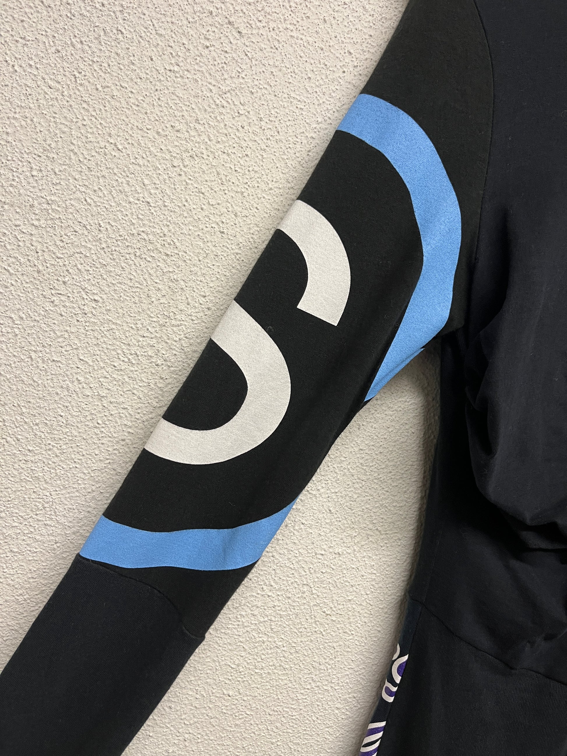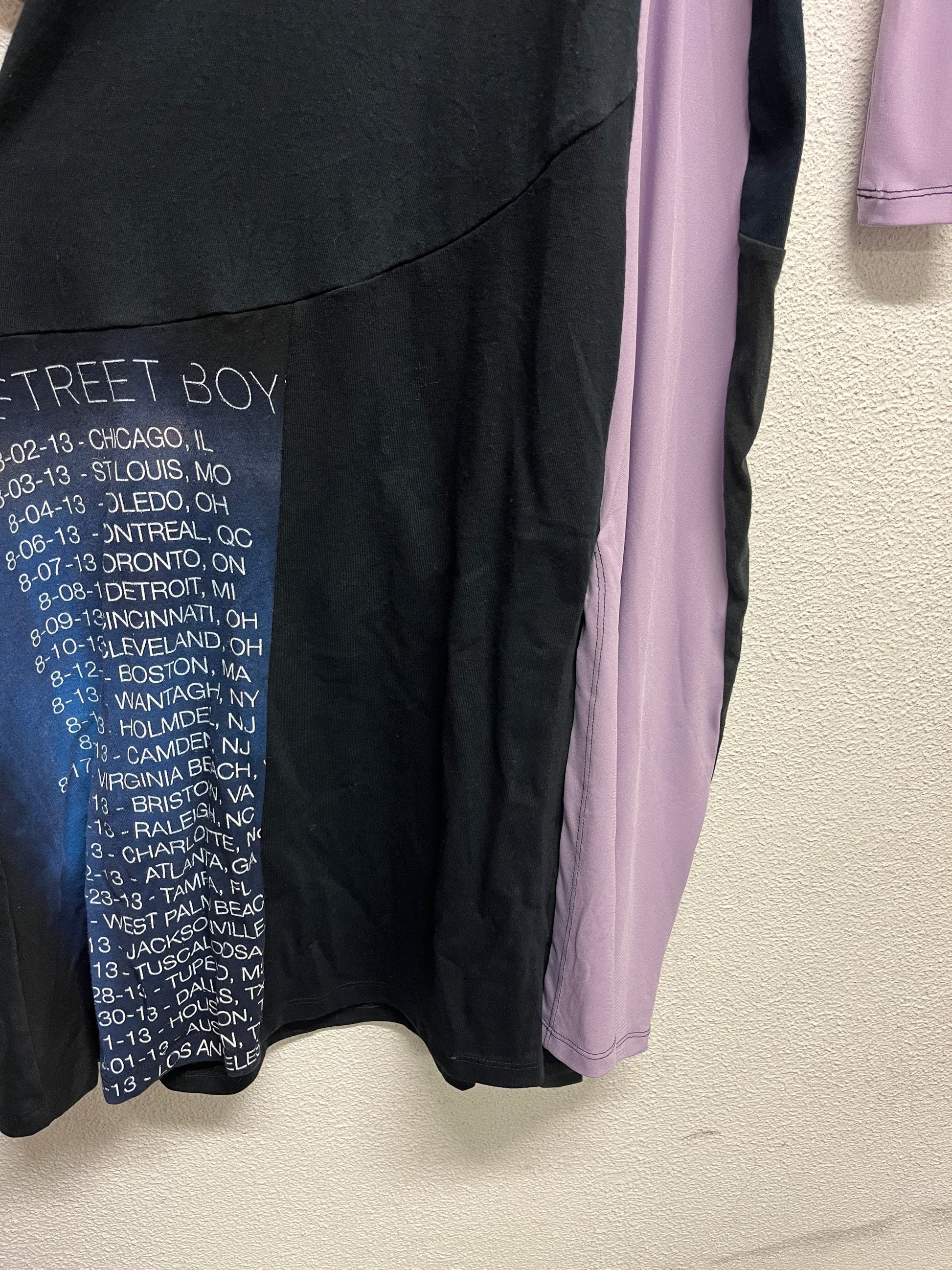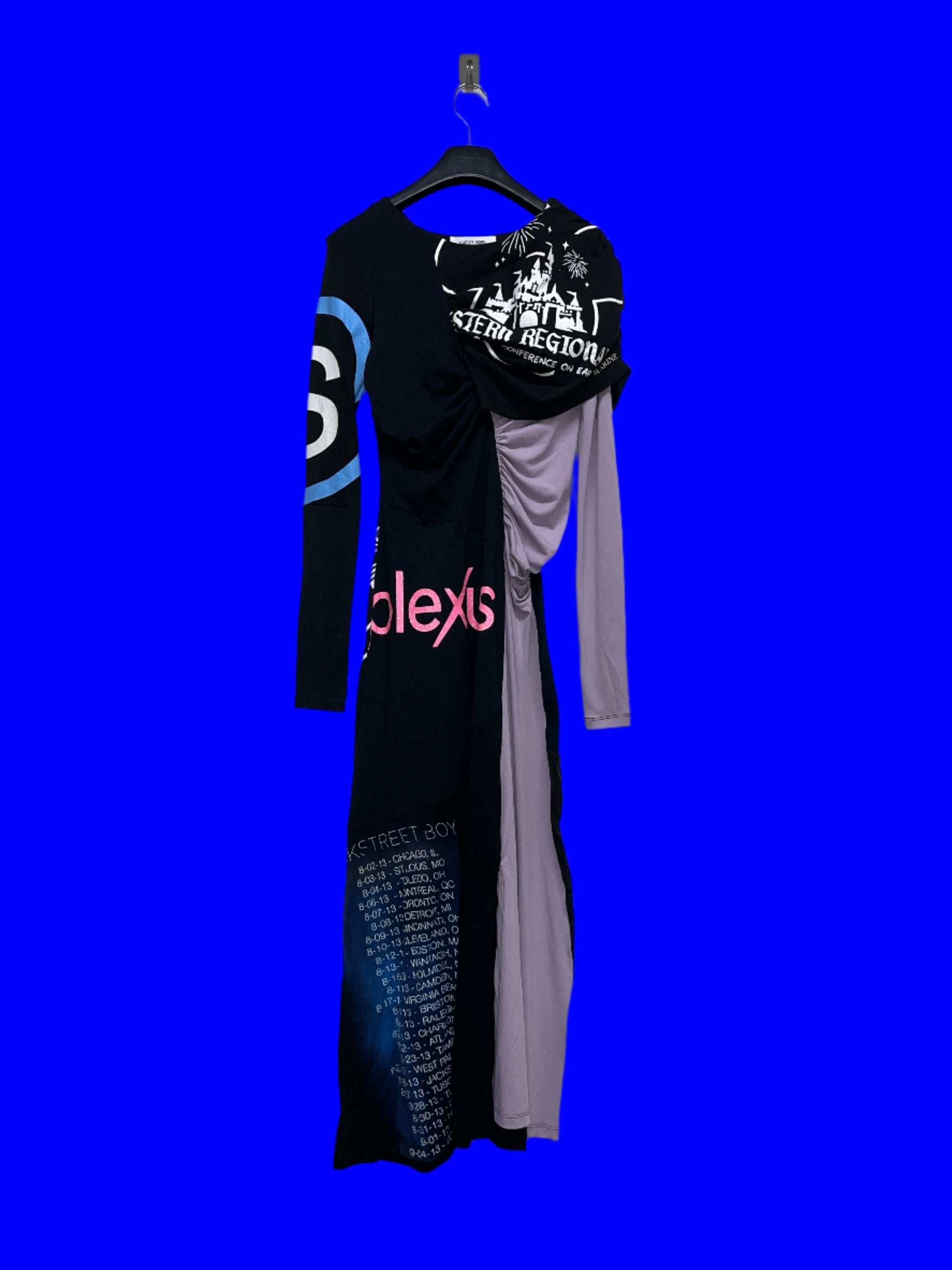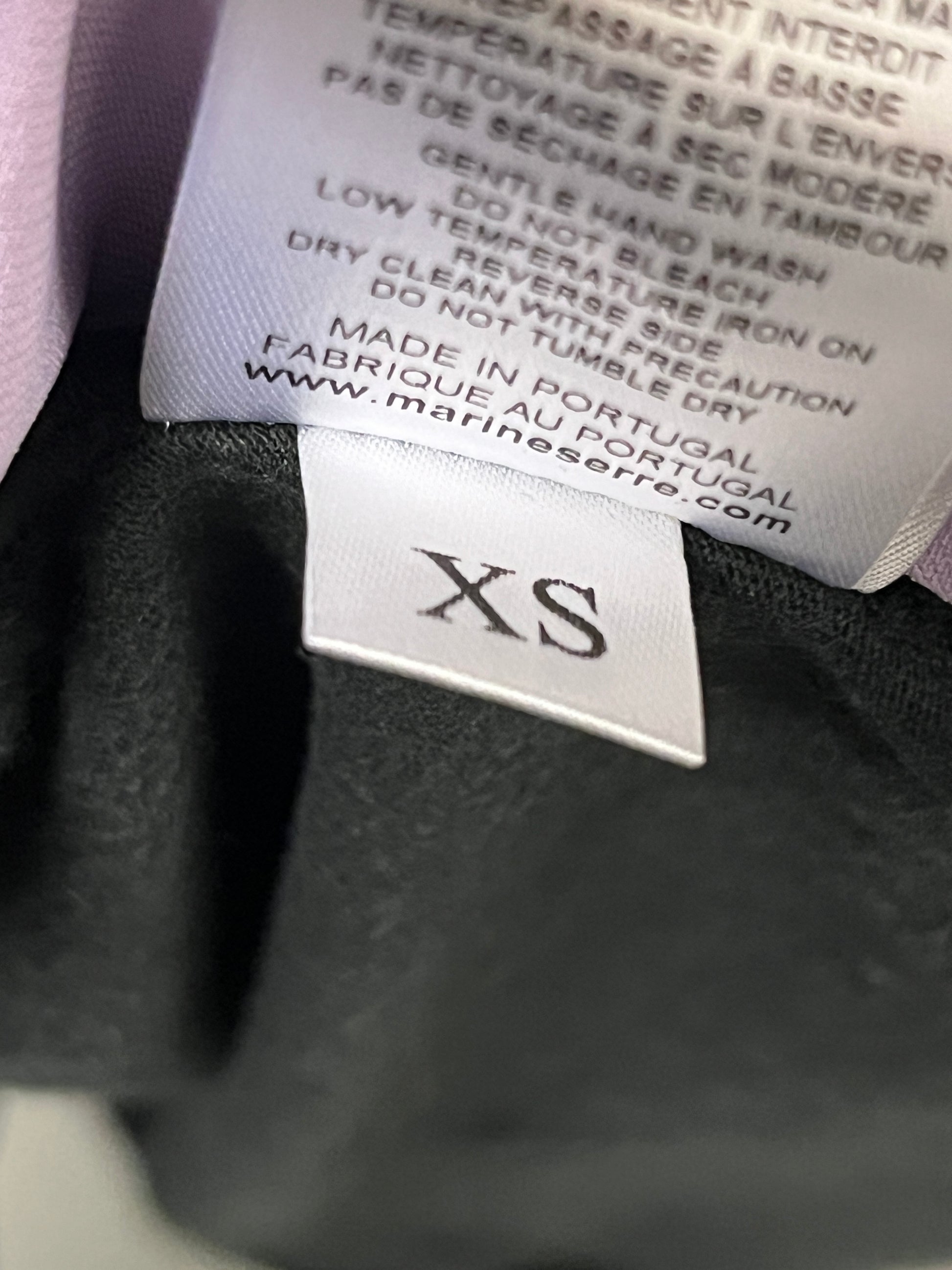 MARINE SERRE regenerated graphic maxi black dress with asymmetrical lilac quilted fabric