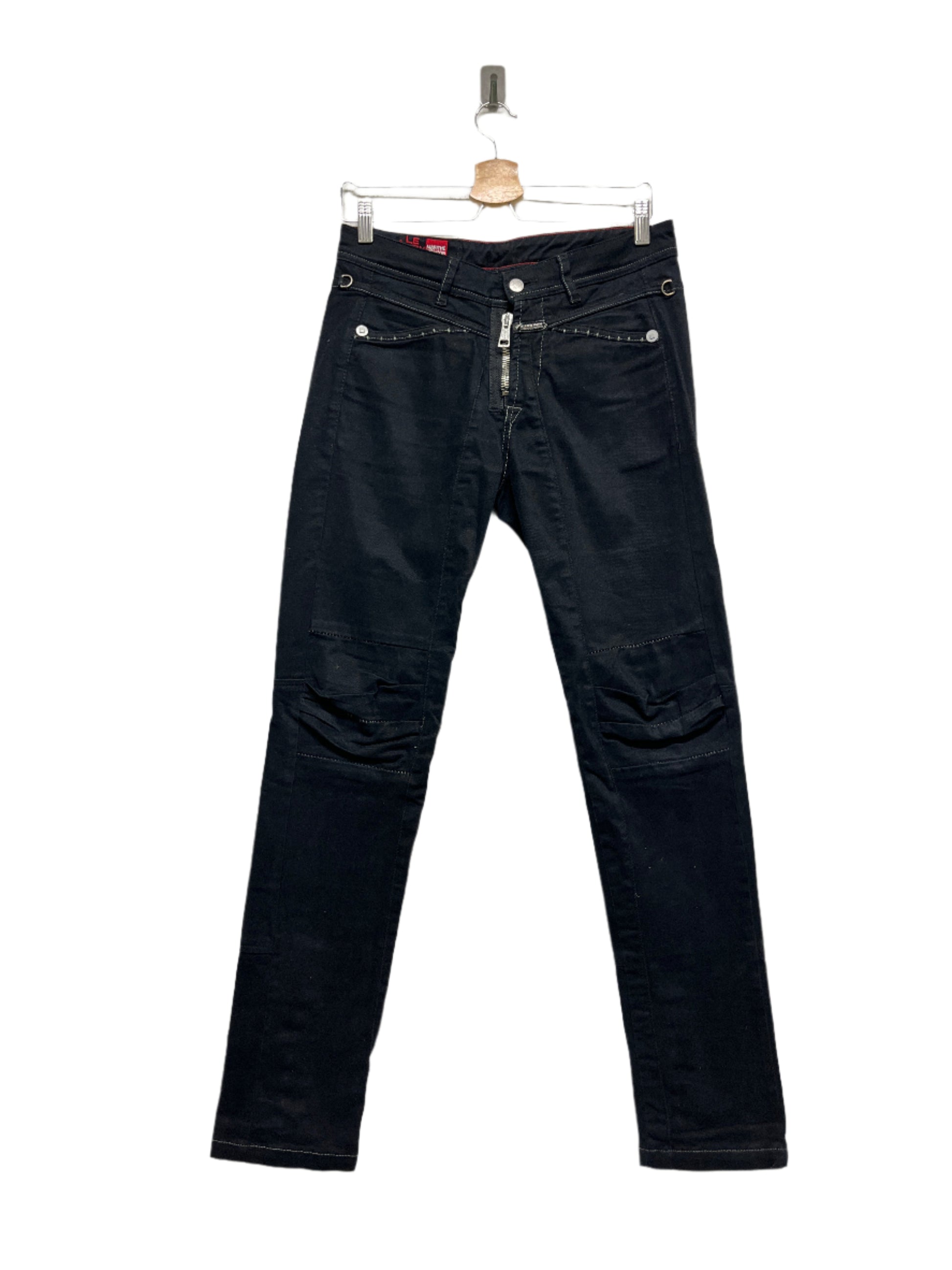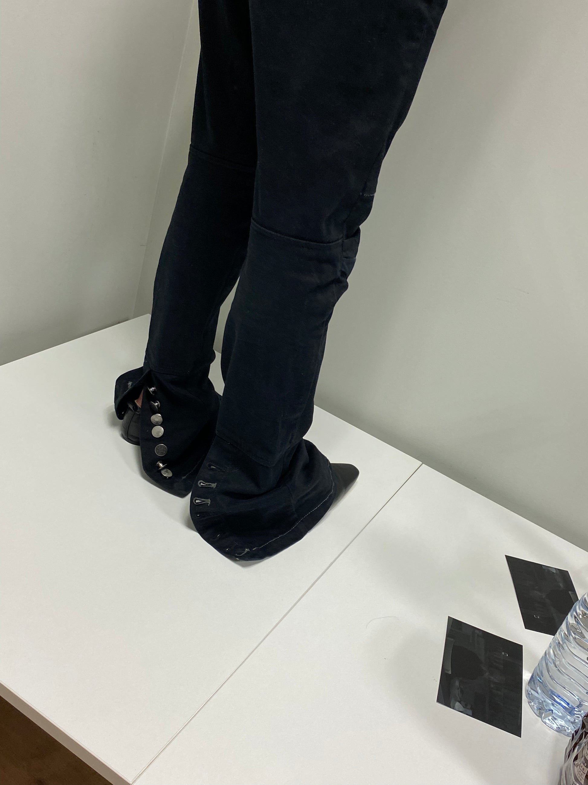 MARITHÉ & FRANÇOIS GIRBAUD black cotton slim bootcut snap-off button trousers
