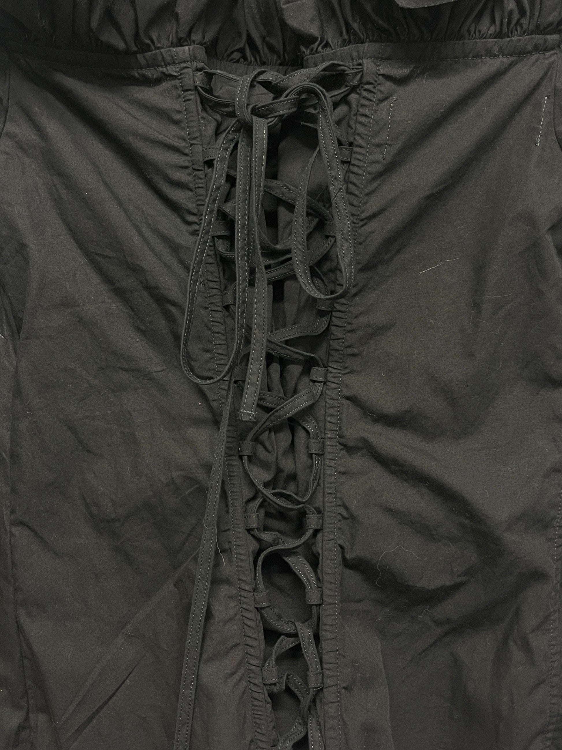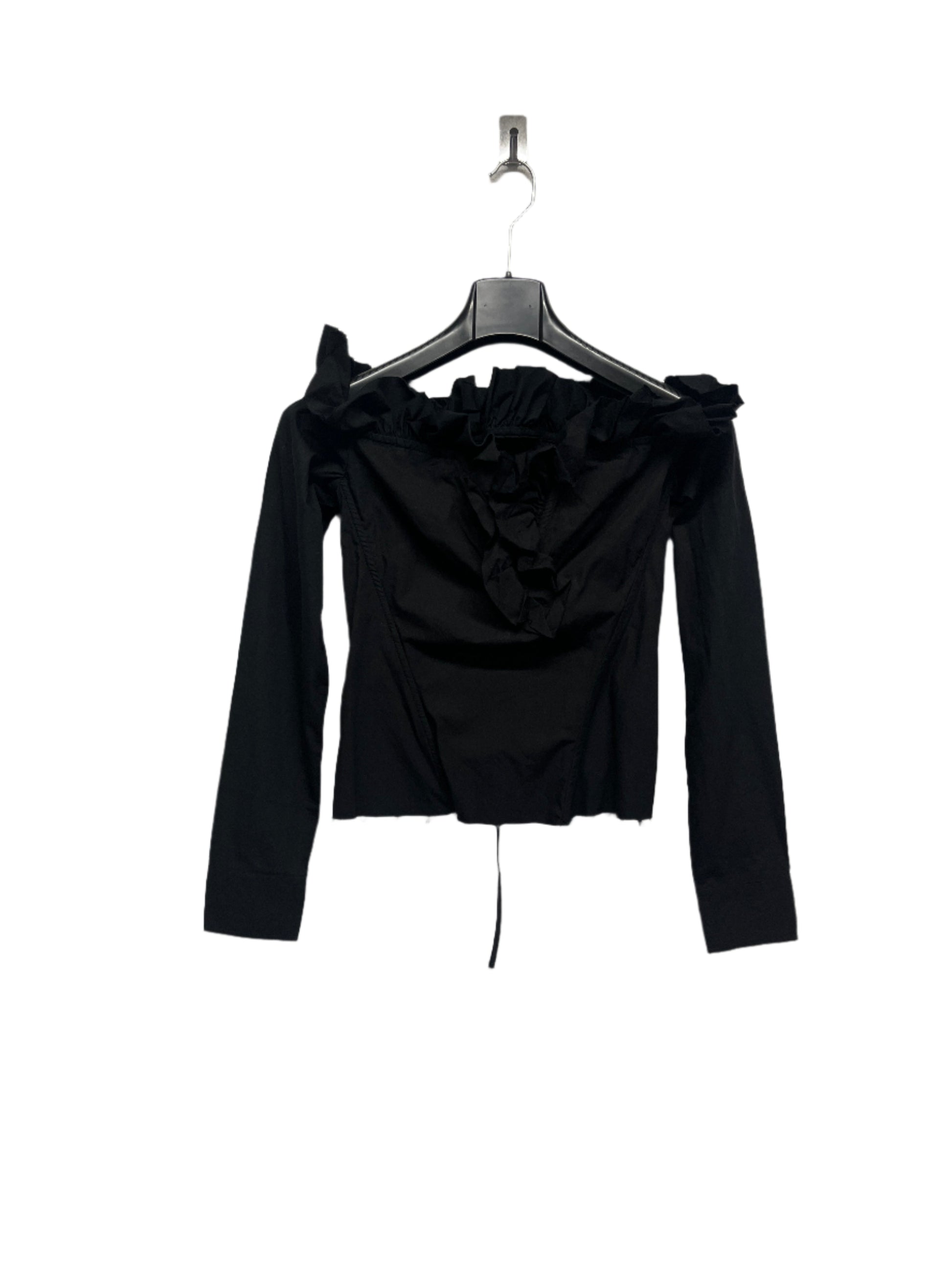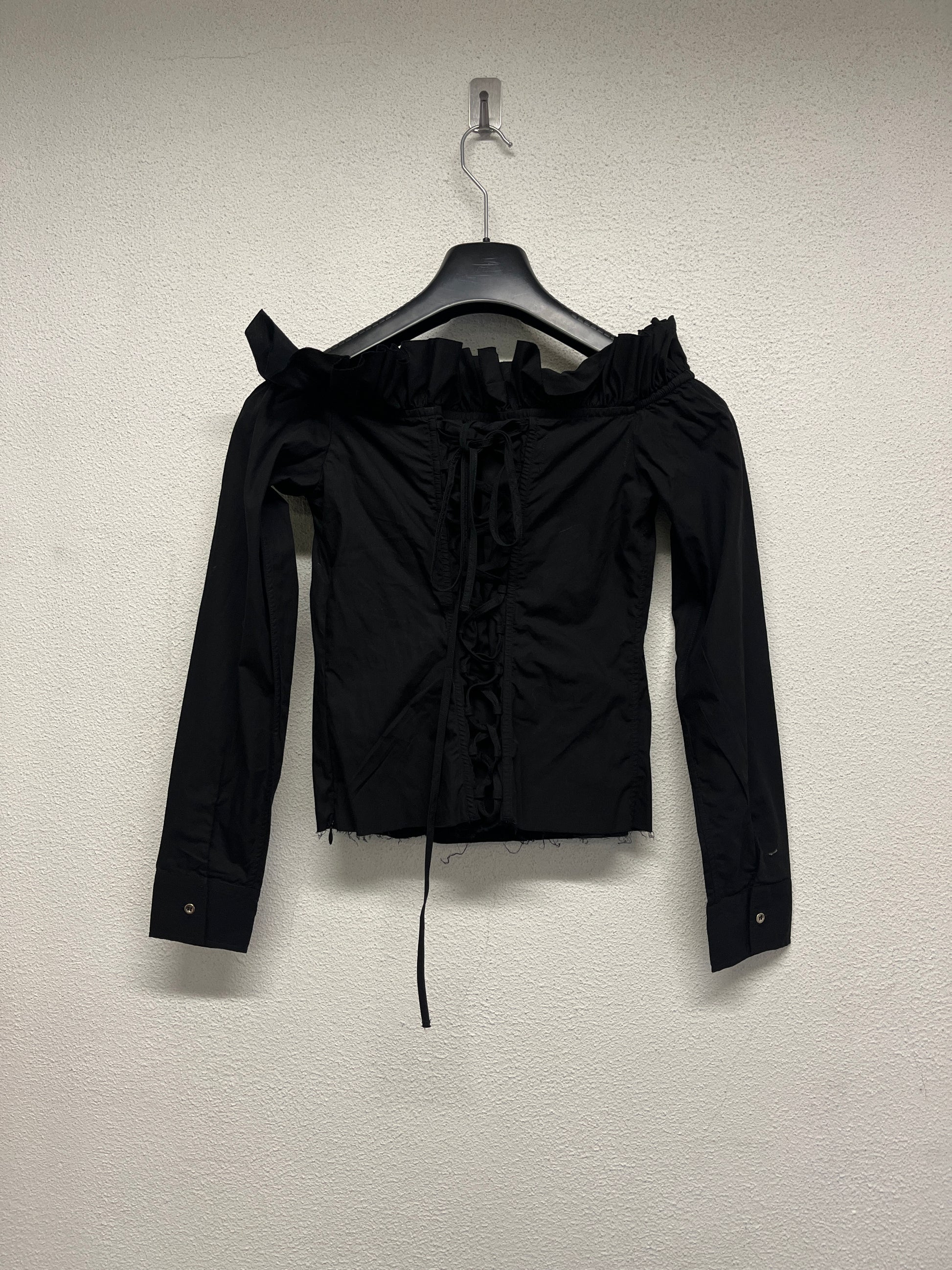 MARQUES/ALMEIDA black ruffled lace-up low shoulders longsleeve top