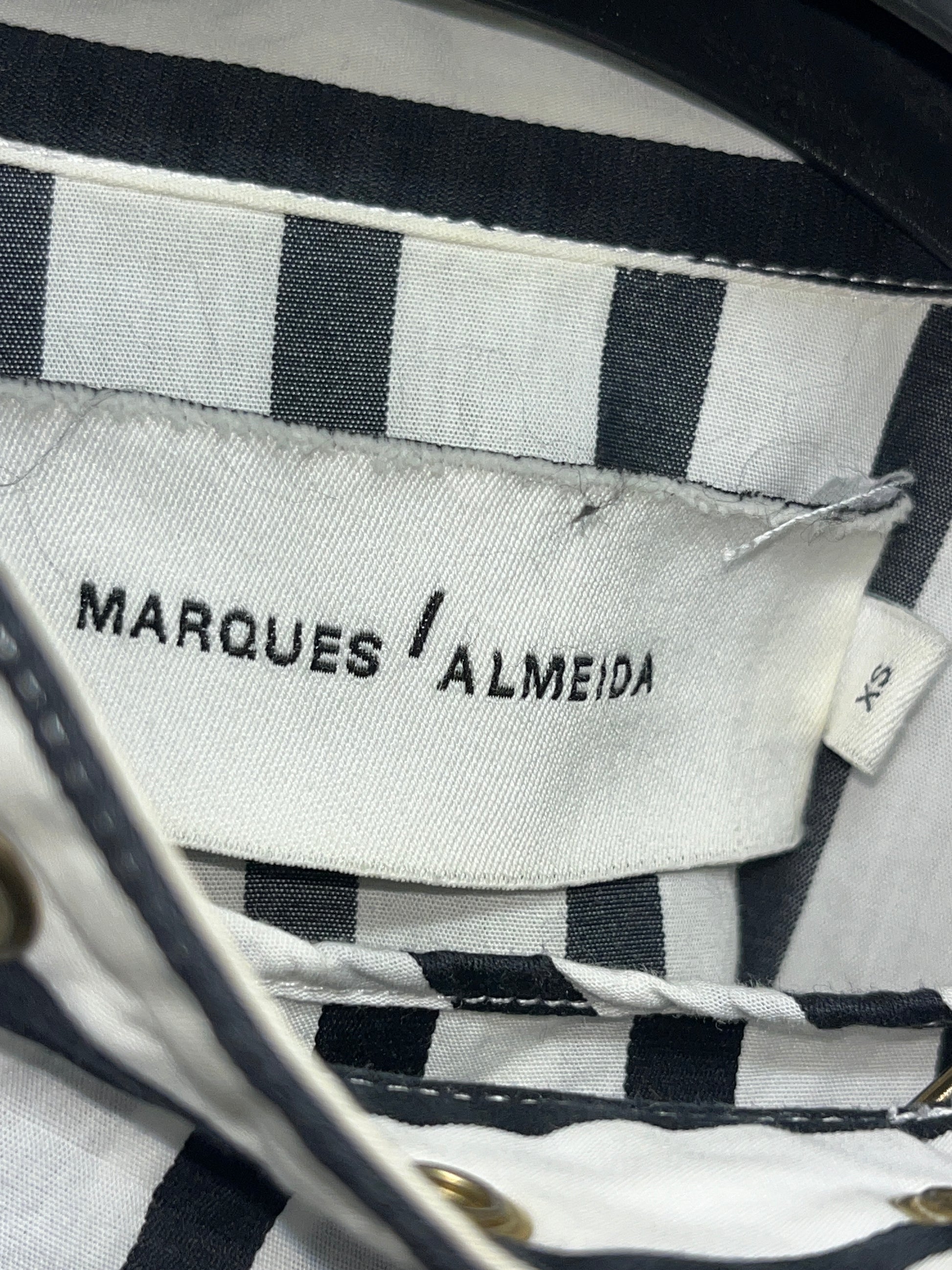 MARQUES/ALMEIDA black and white striped longsleeve belted collar blouse, like new