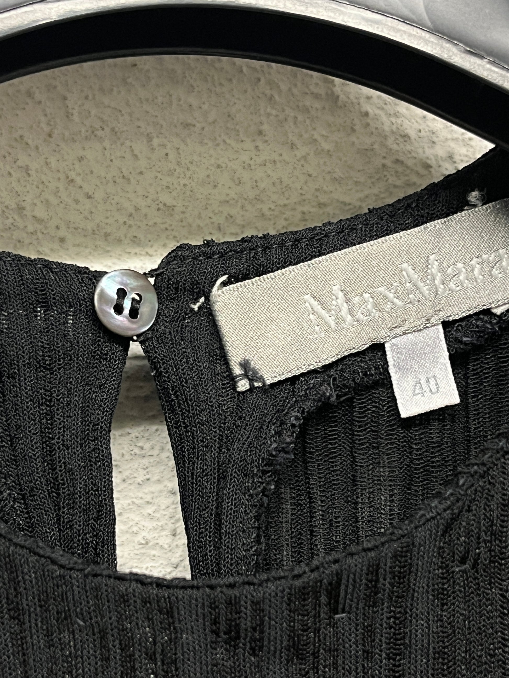 MAX MARA black pleated twin set with maxi skirt, care label cut