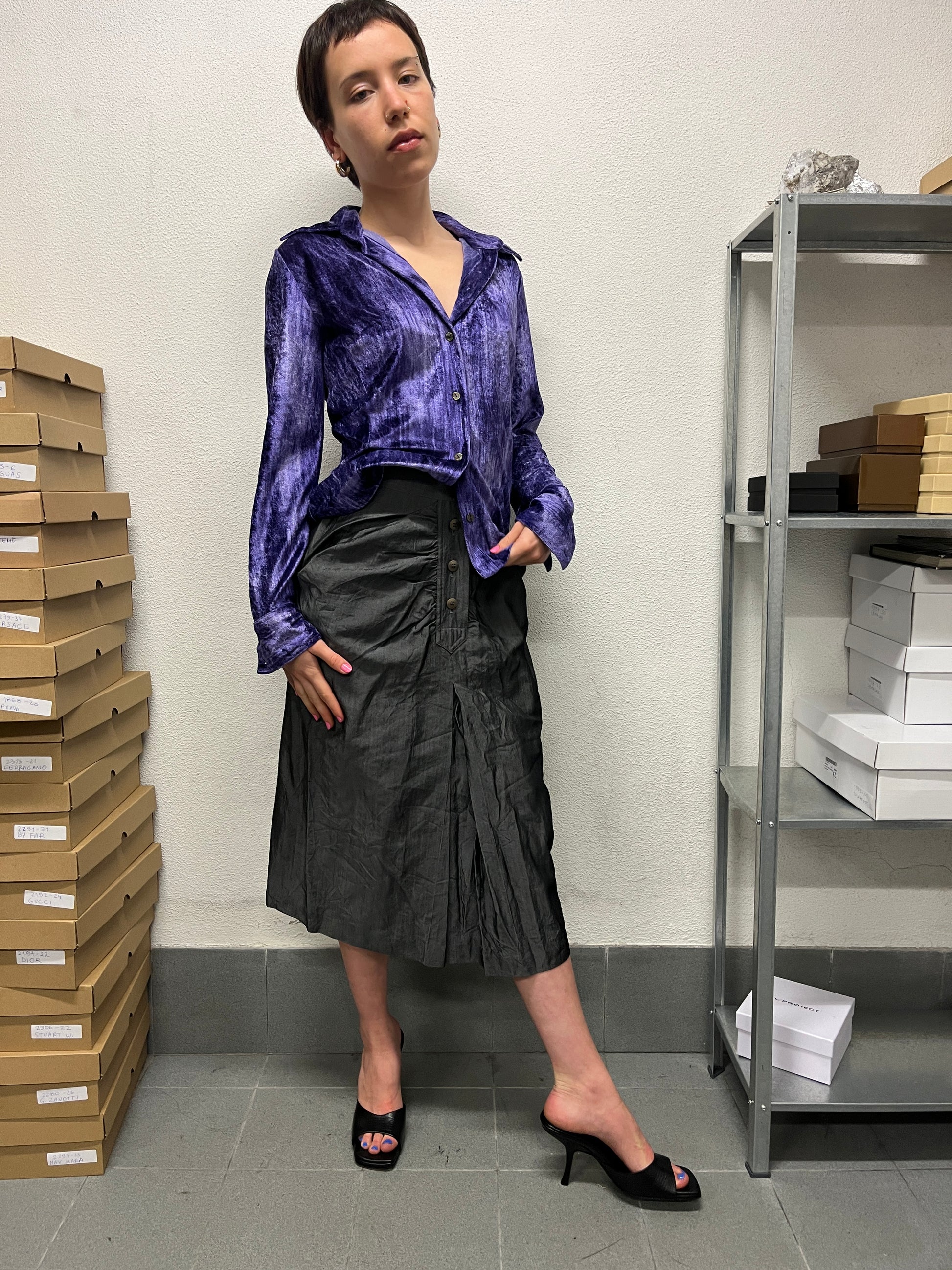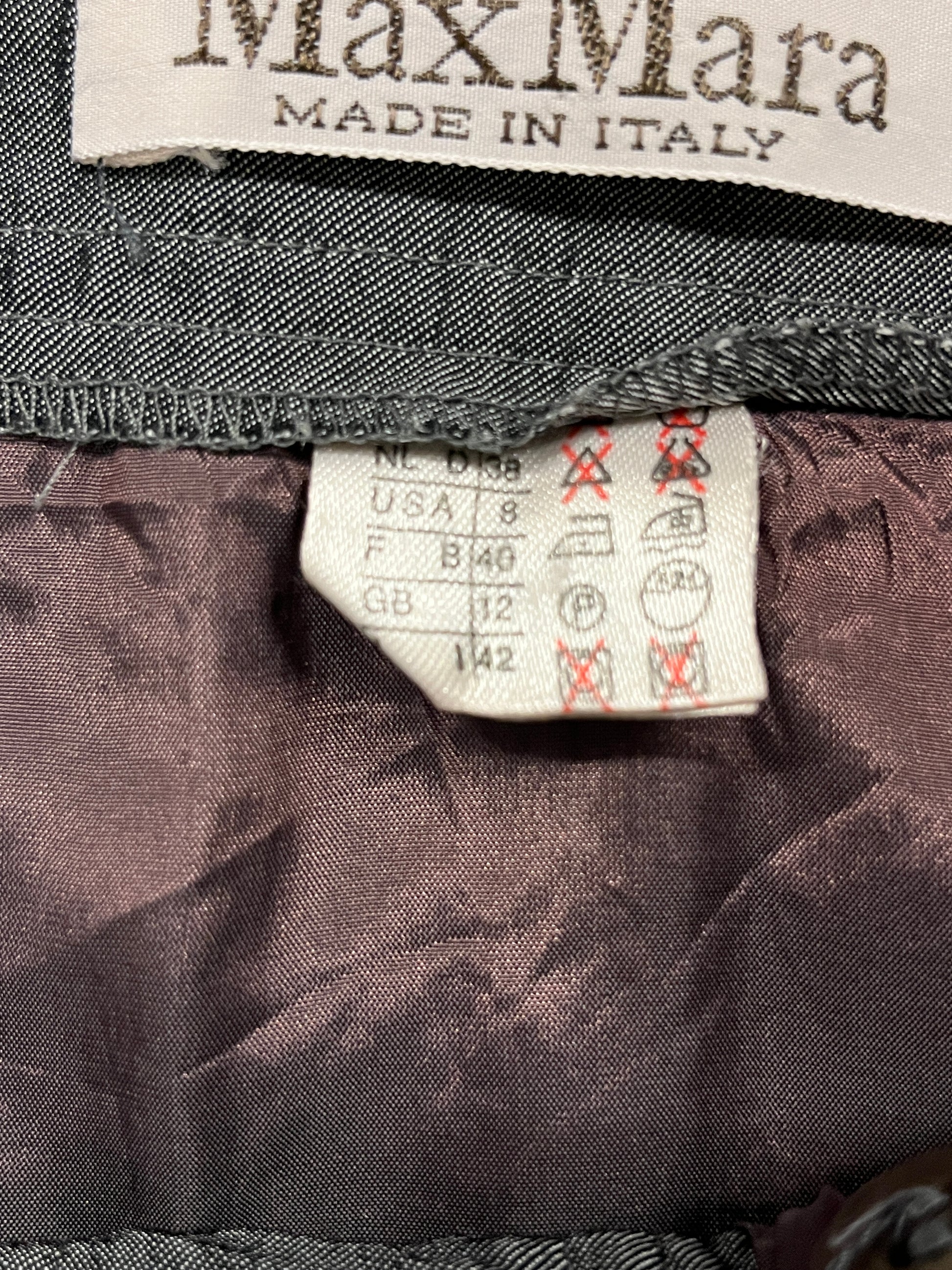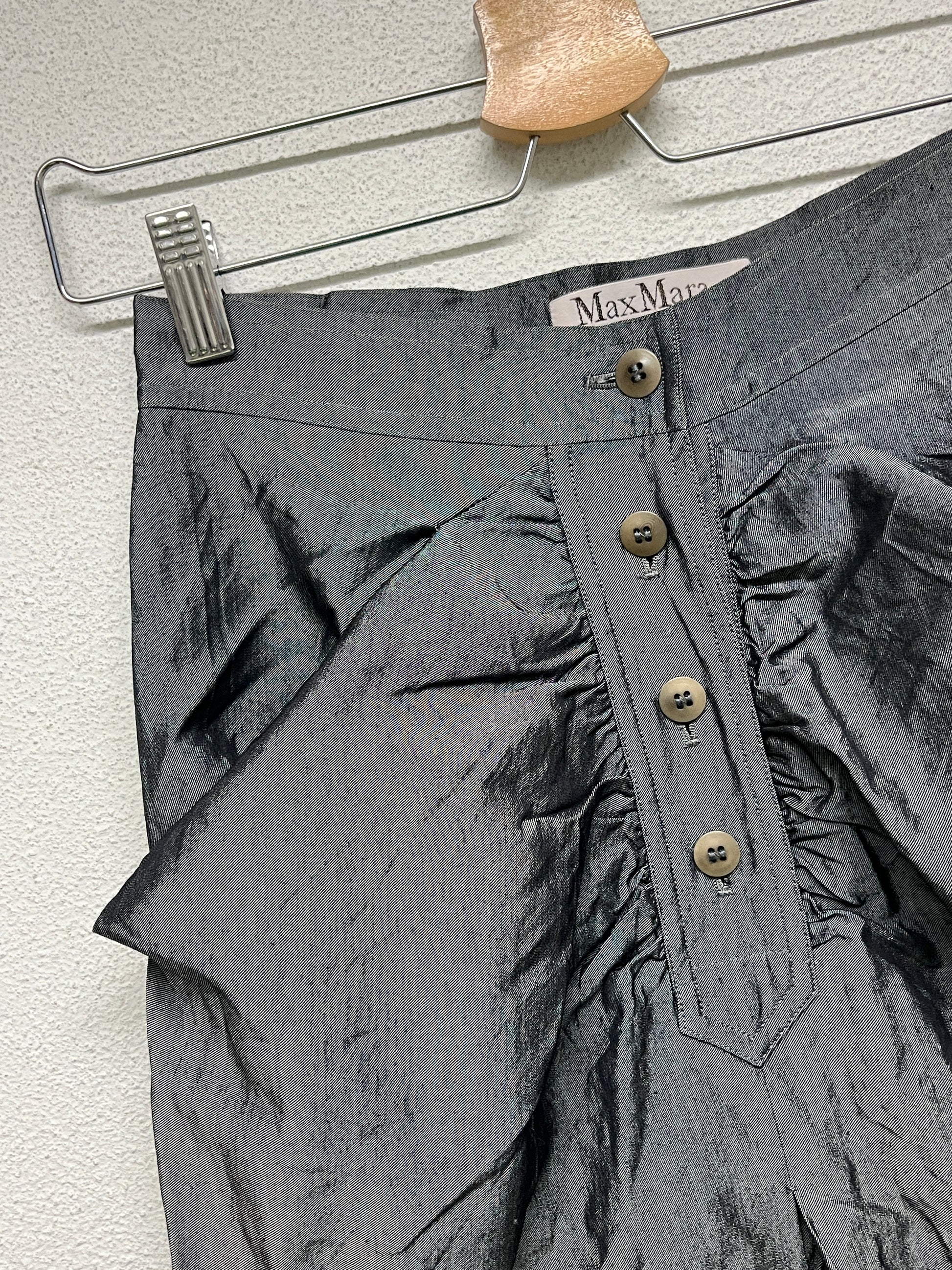 MAX MARA grey shiny button up wool skirt