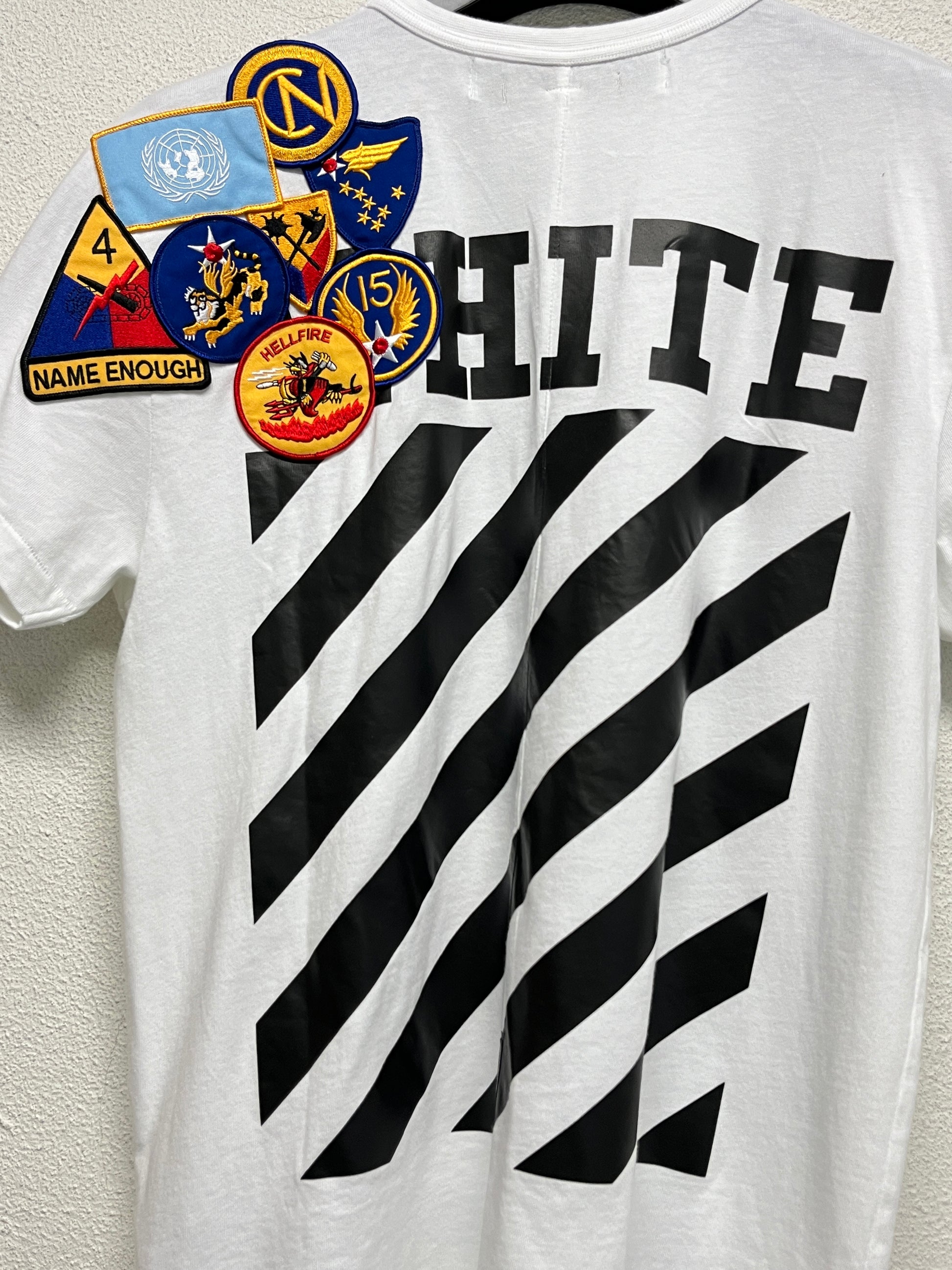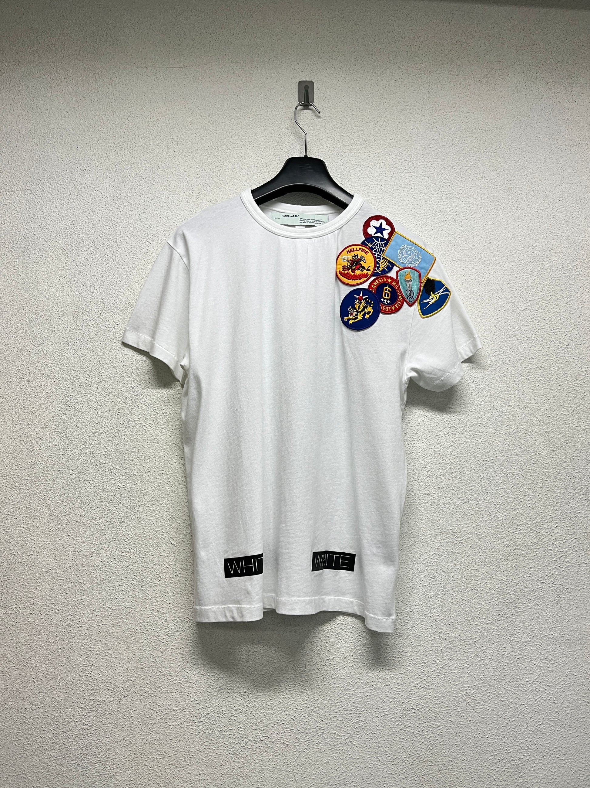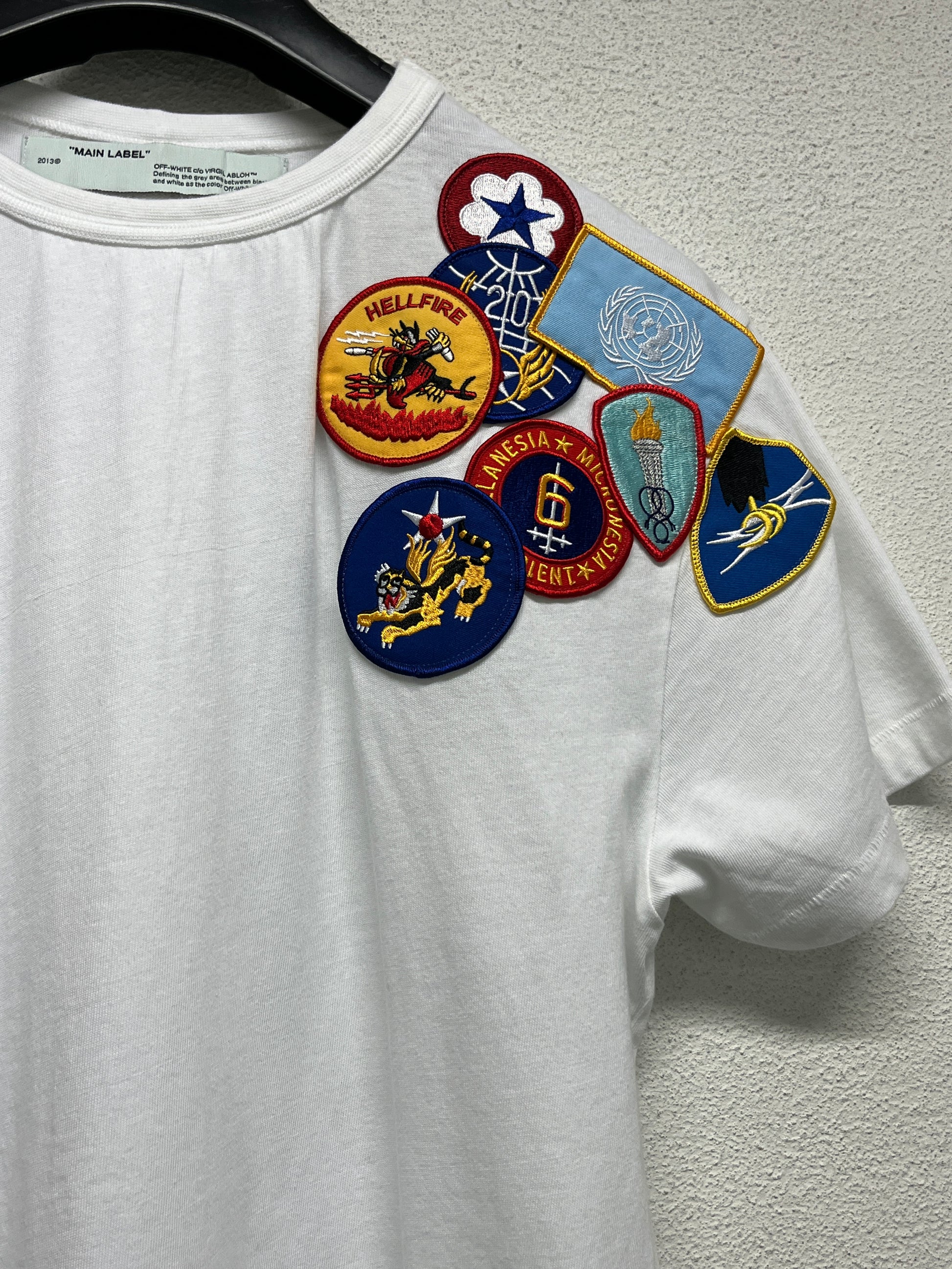 OFF-WHITE by Virgil Abloh rare white cotton tee with patches (M)