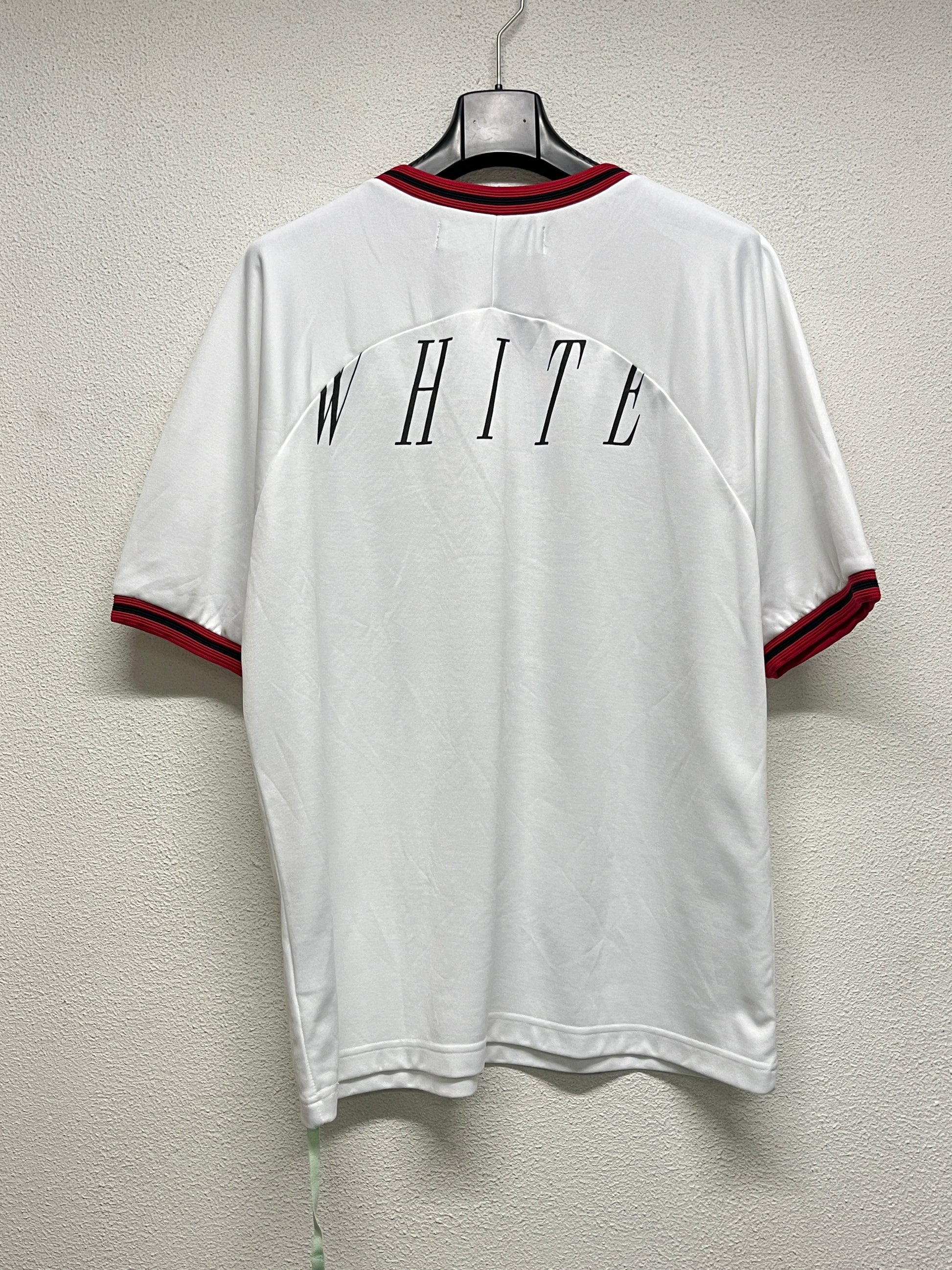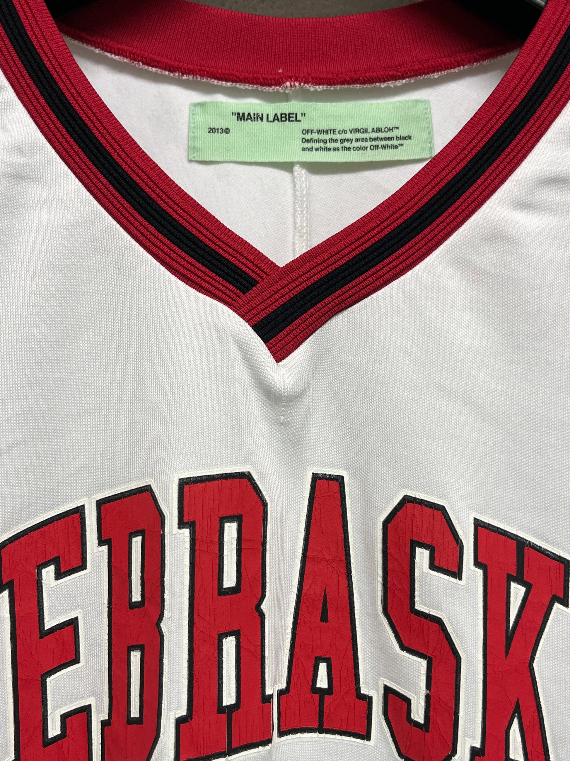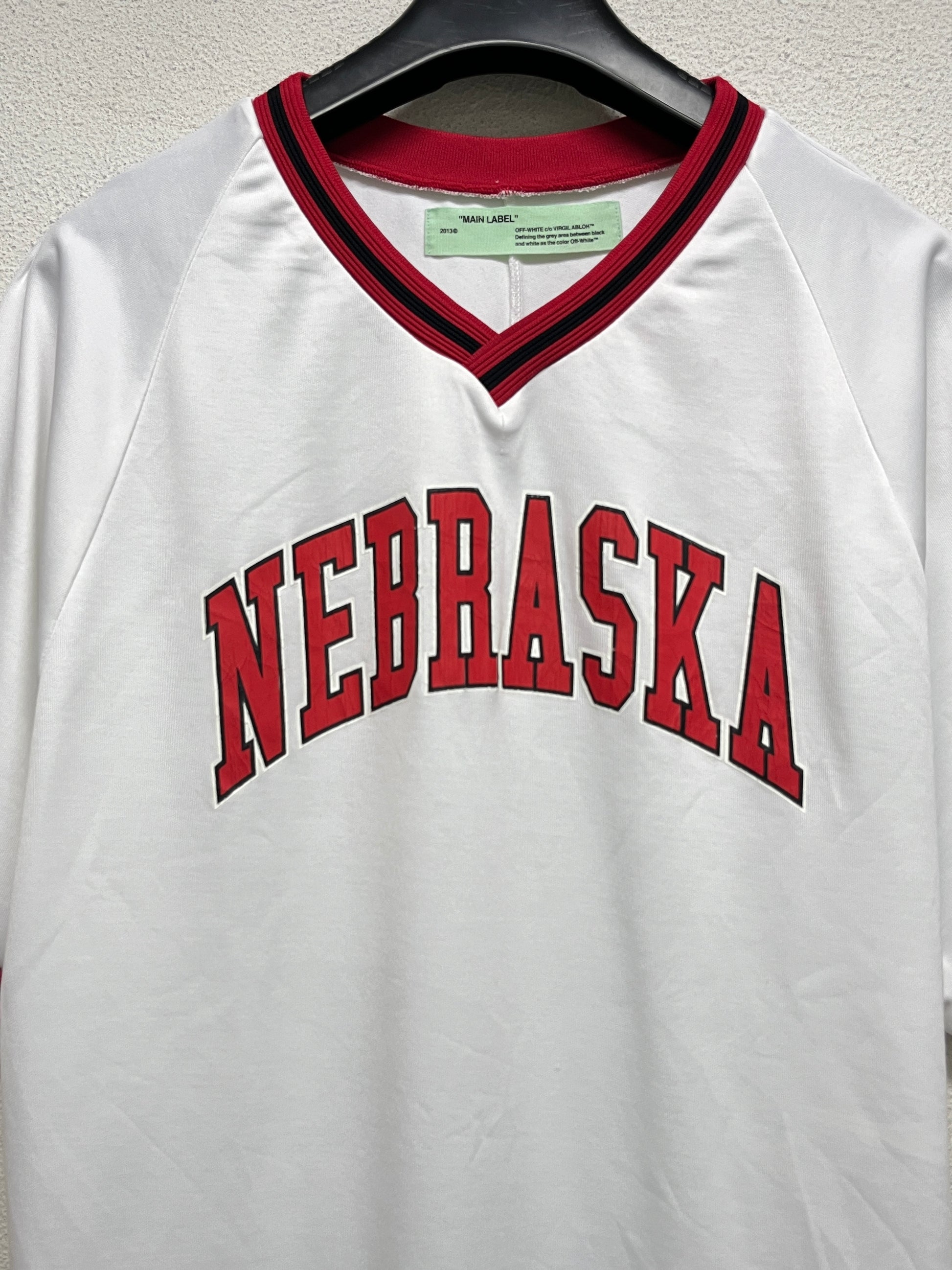 OFF-WHITE by Virgil Abloh rare white 'Nebraska' v-neck graphic jersey t-shirt (XL)
