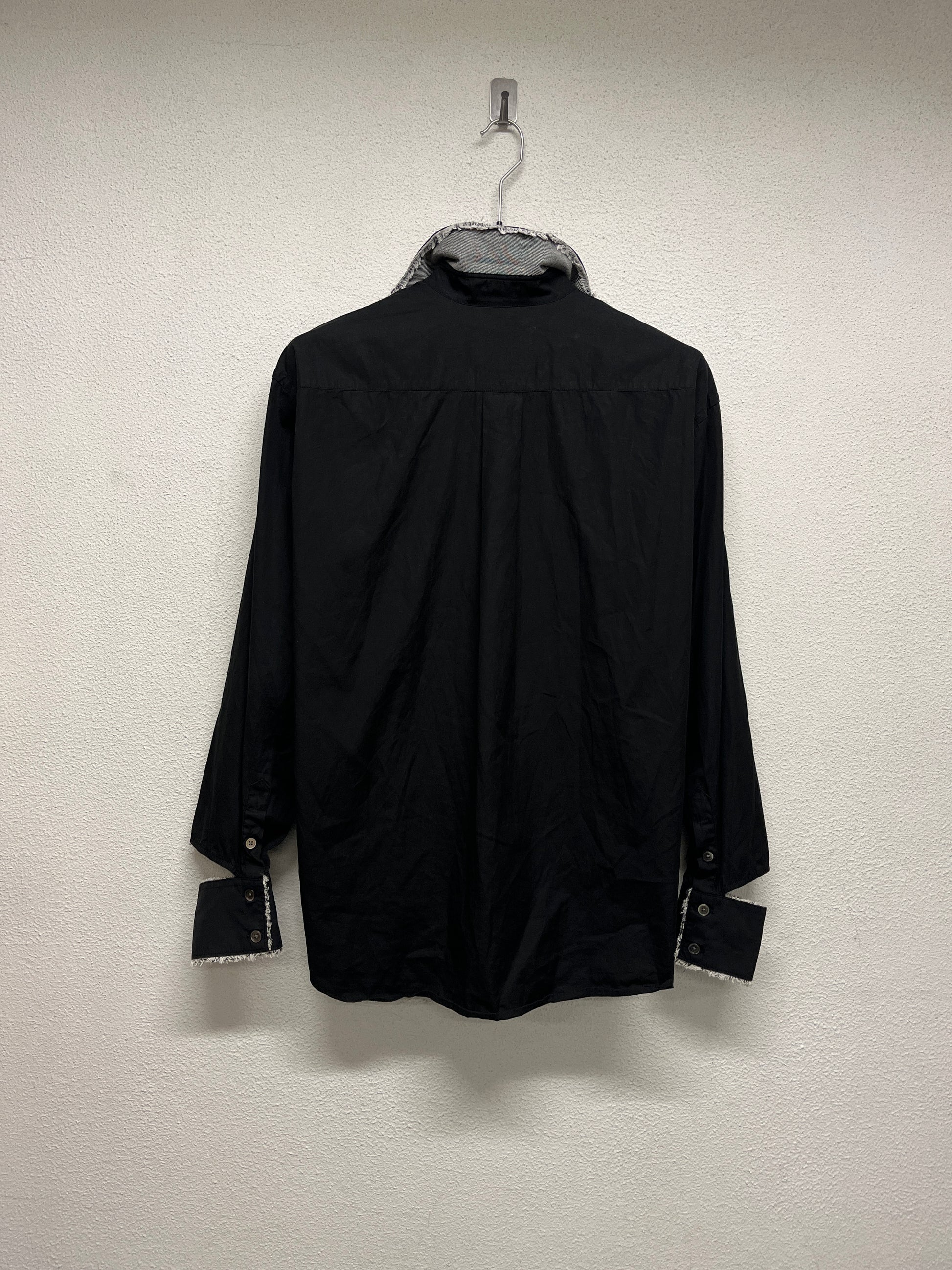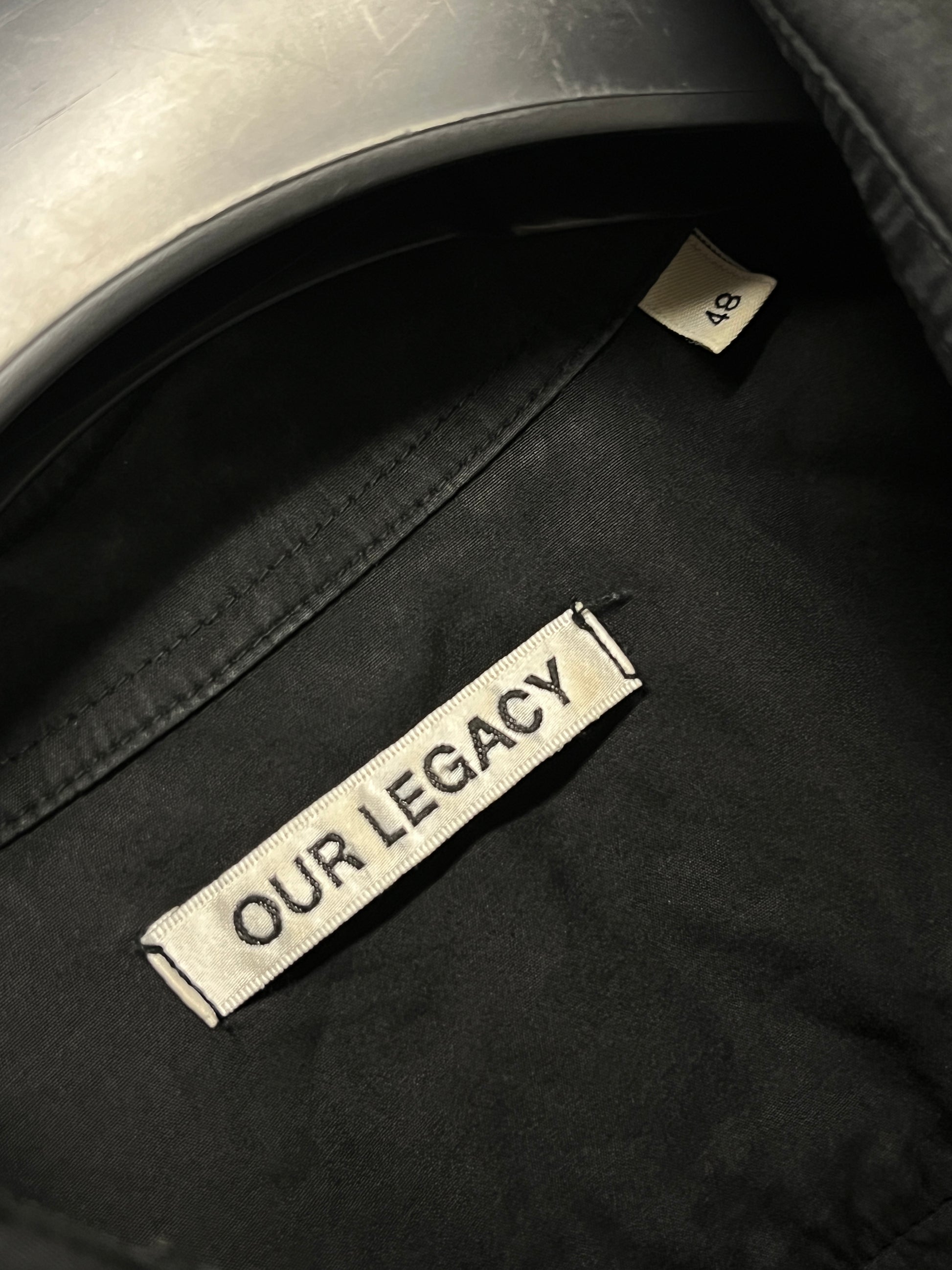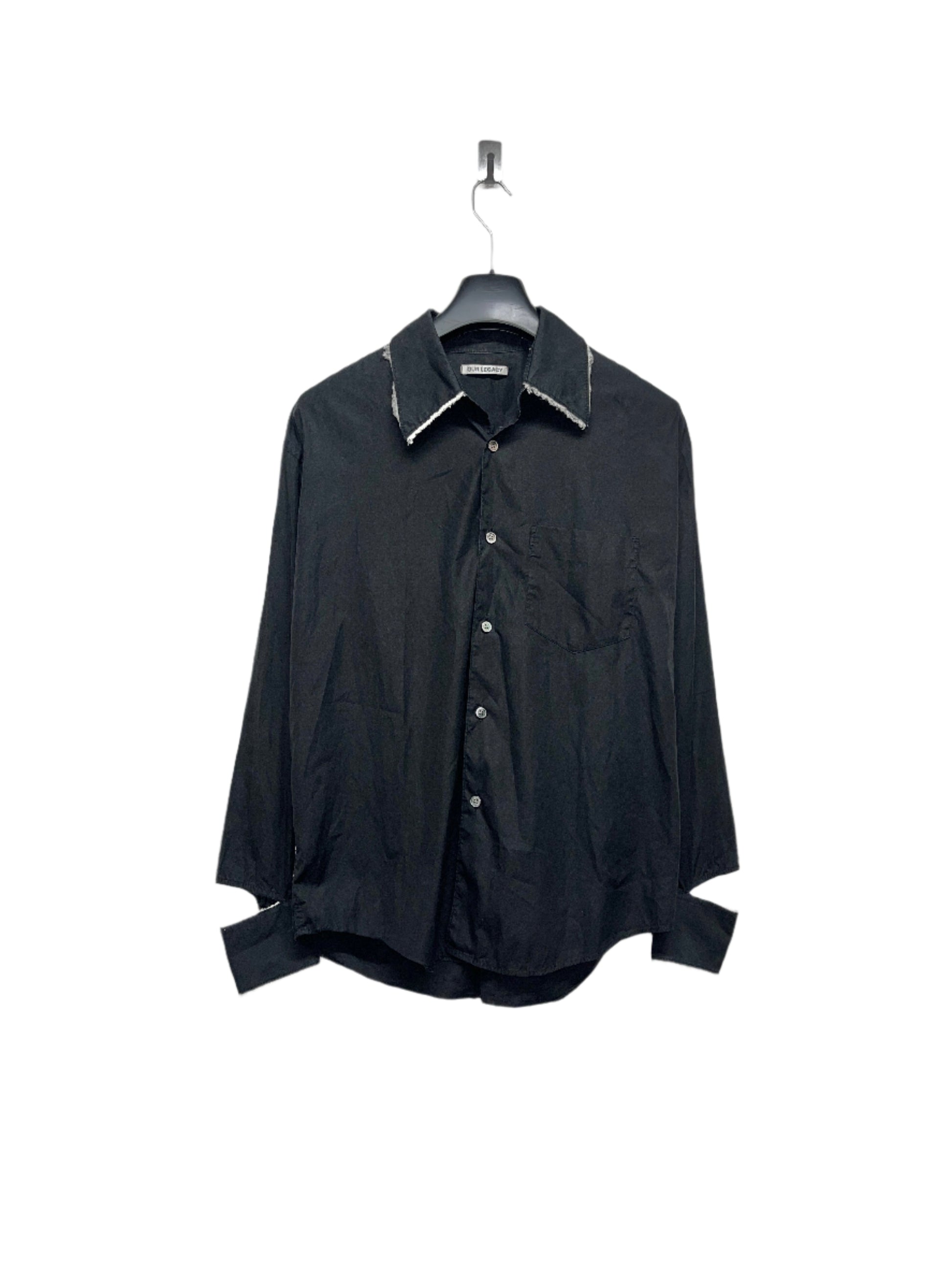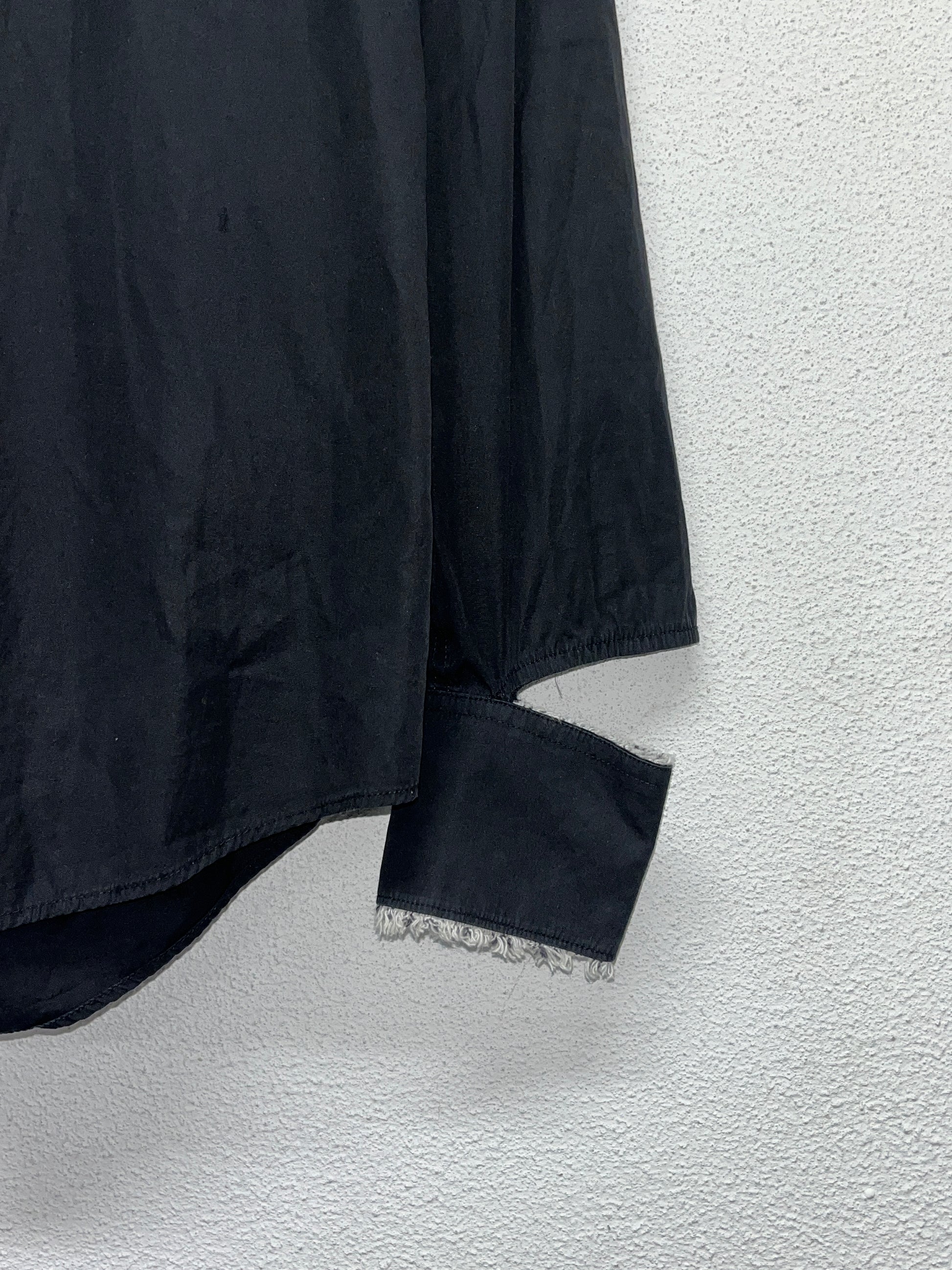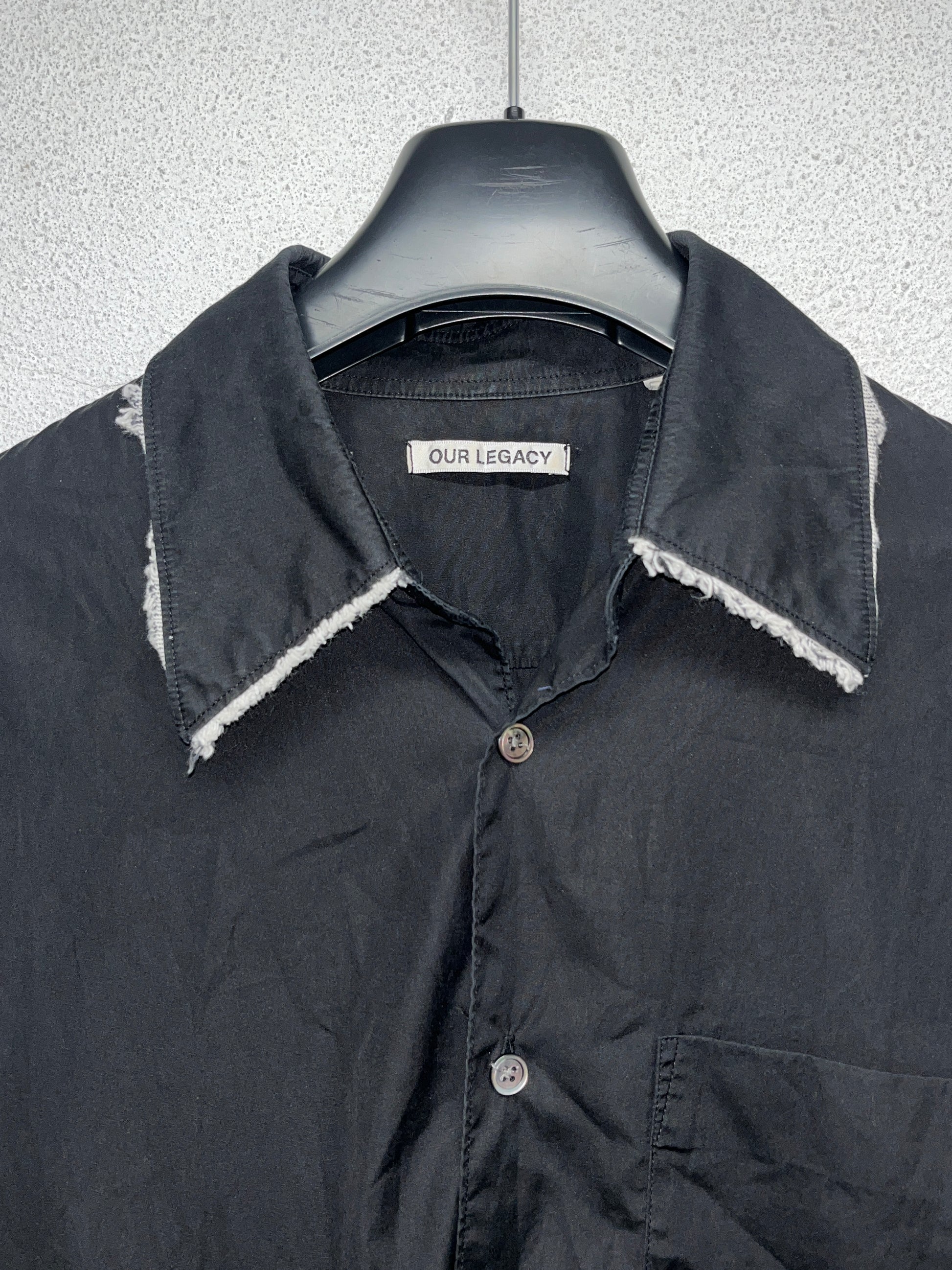 OUR LEGACY black shirt with distressed collar and fist cut-out, no care label, tiny flaw as shown