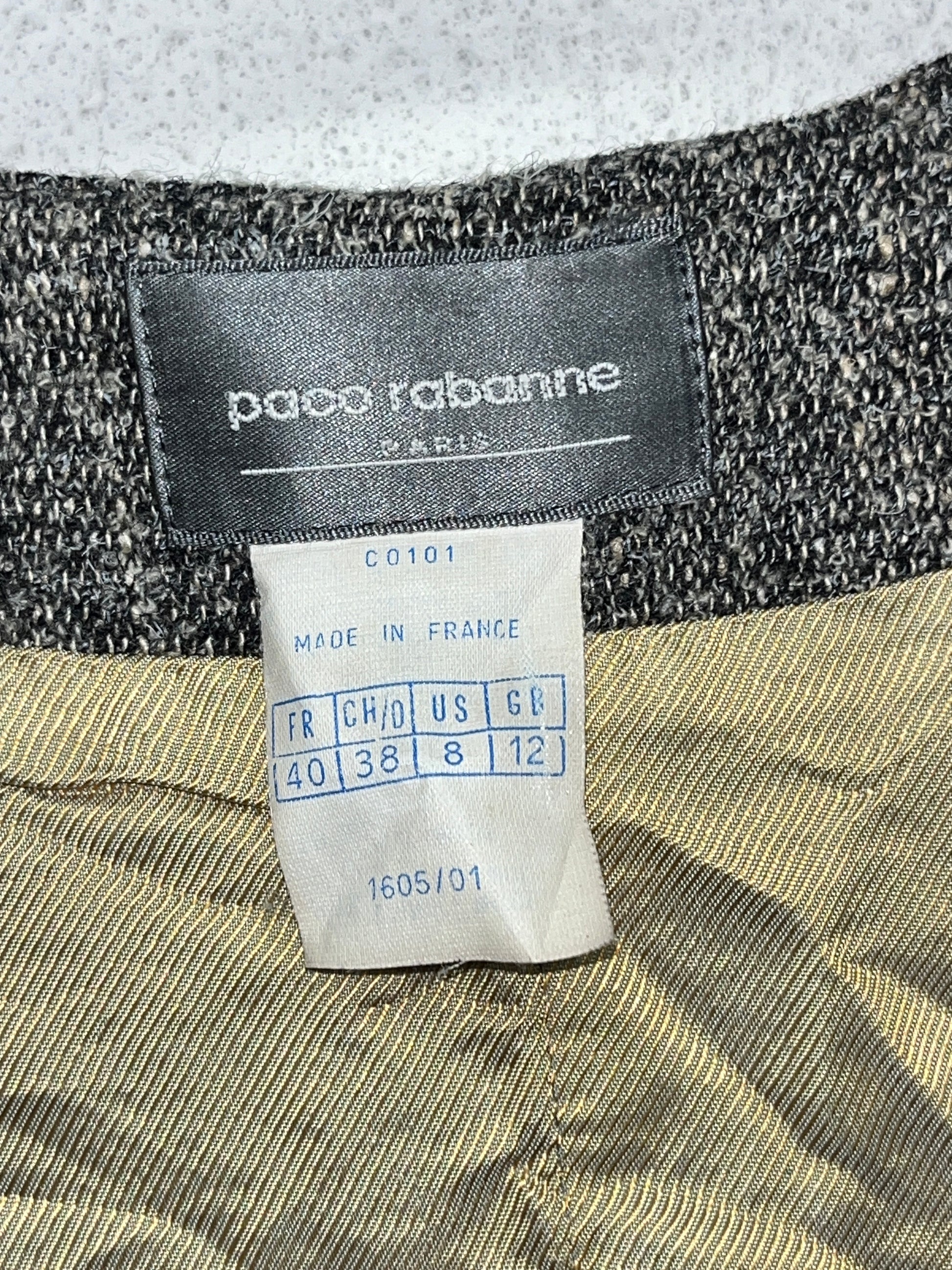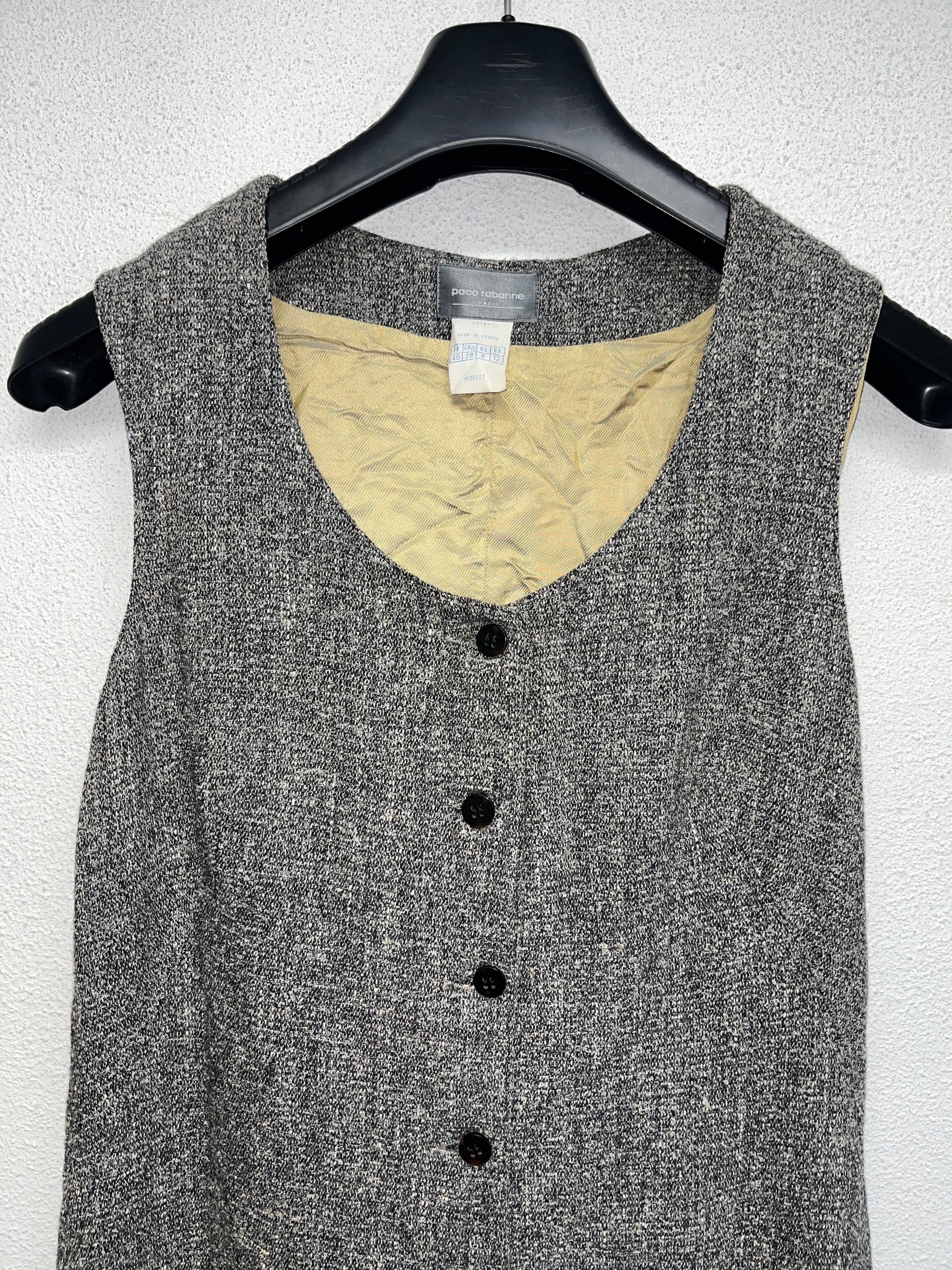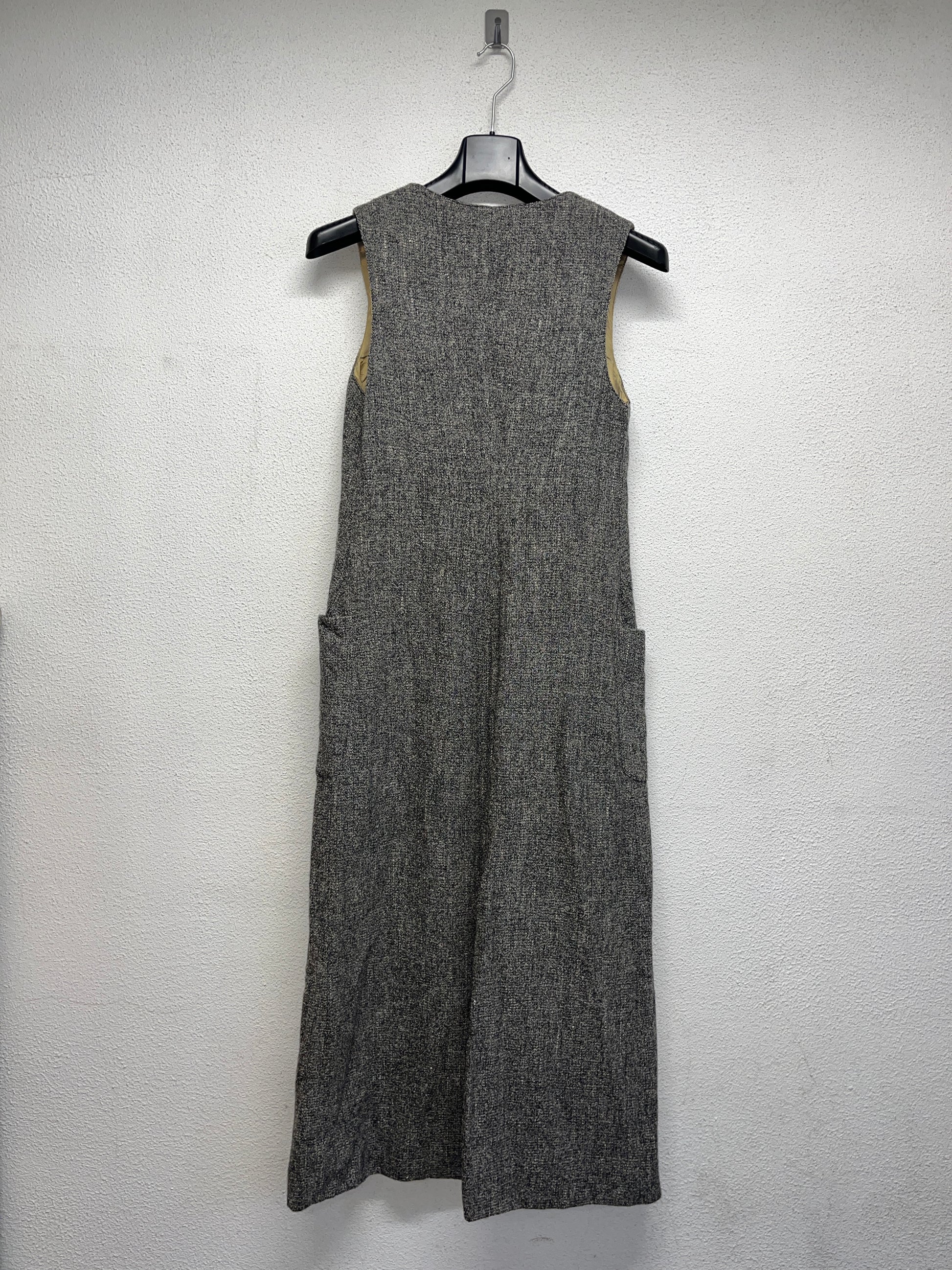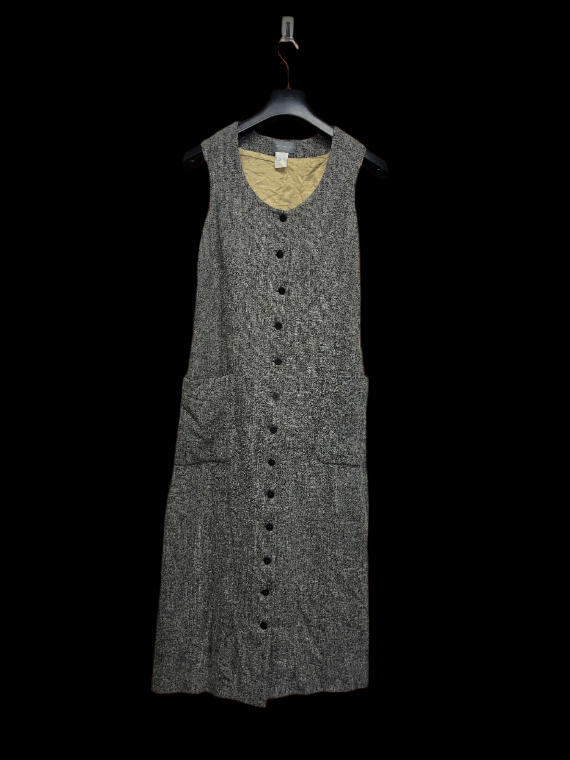 PACO RABANNE grey wool and silk dress with buttons all through and pockets