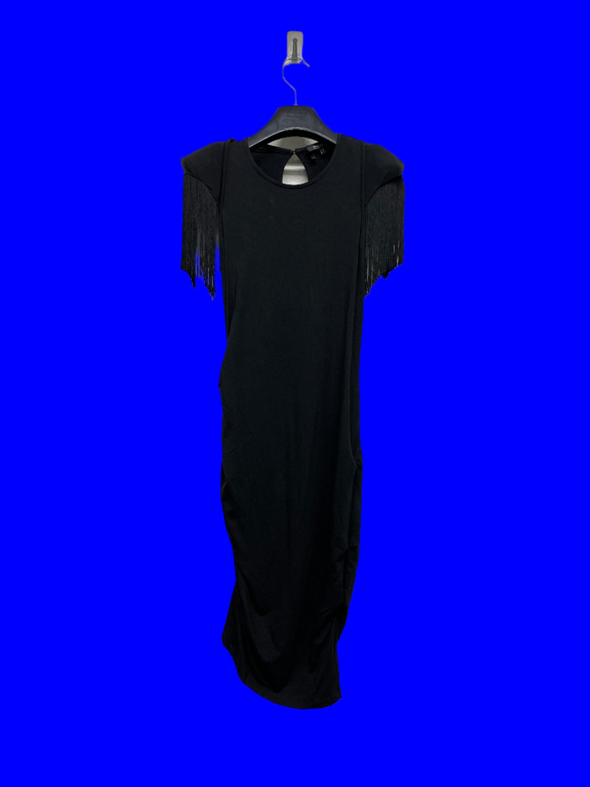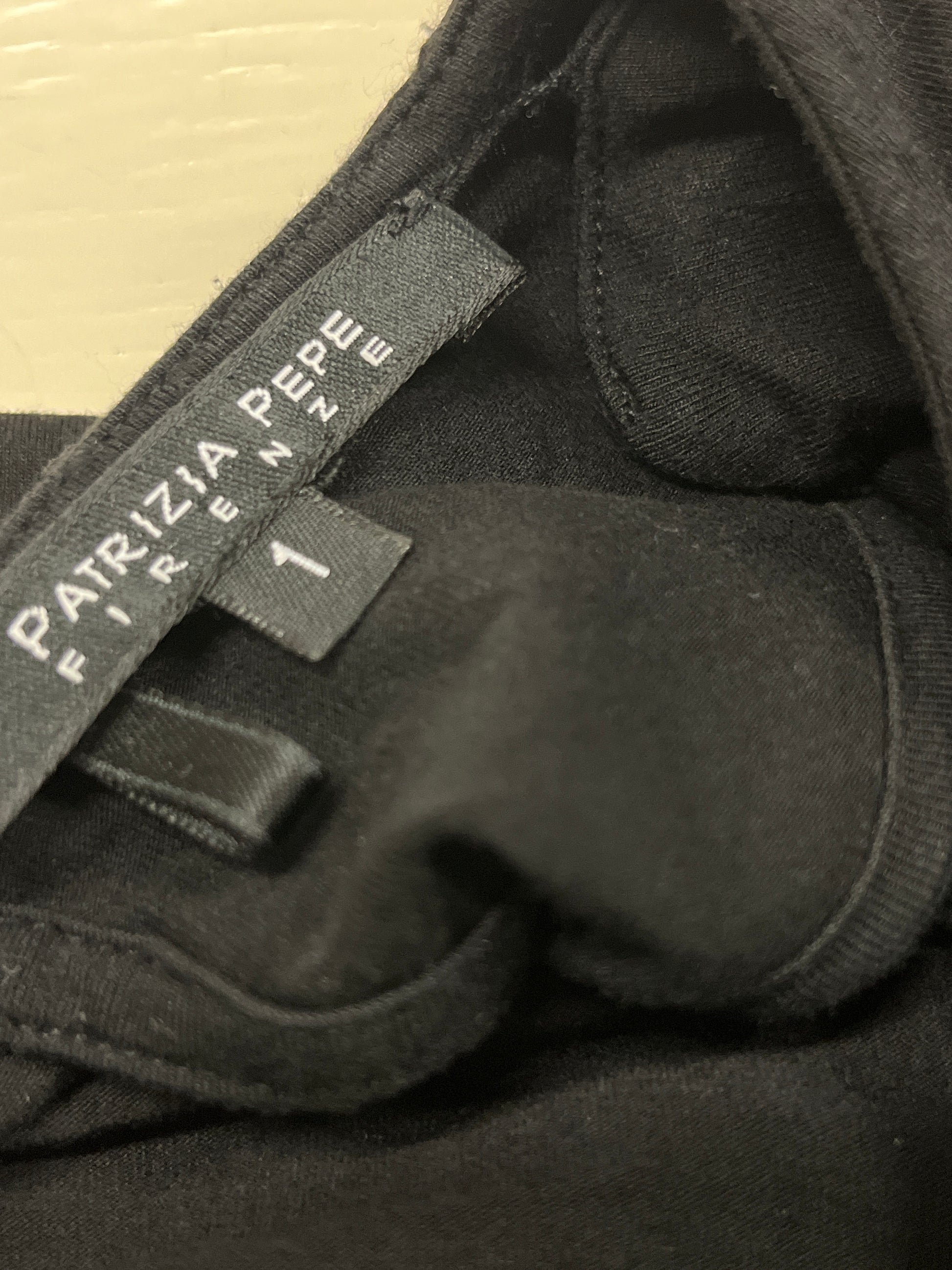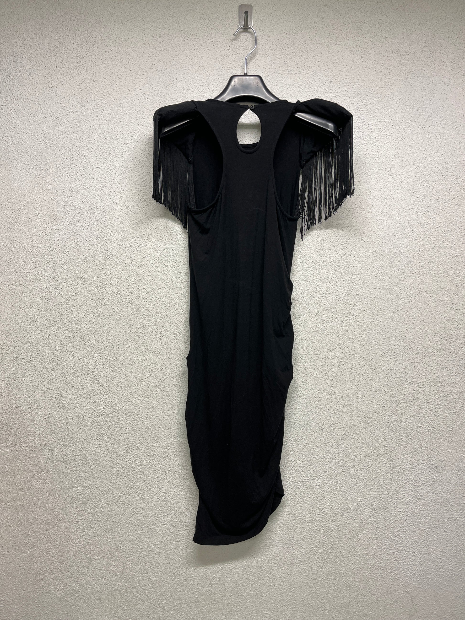 PATRIZIA PEPE black viscose dress with shoulder fringes and pads, very stretchy