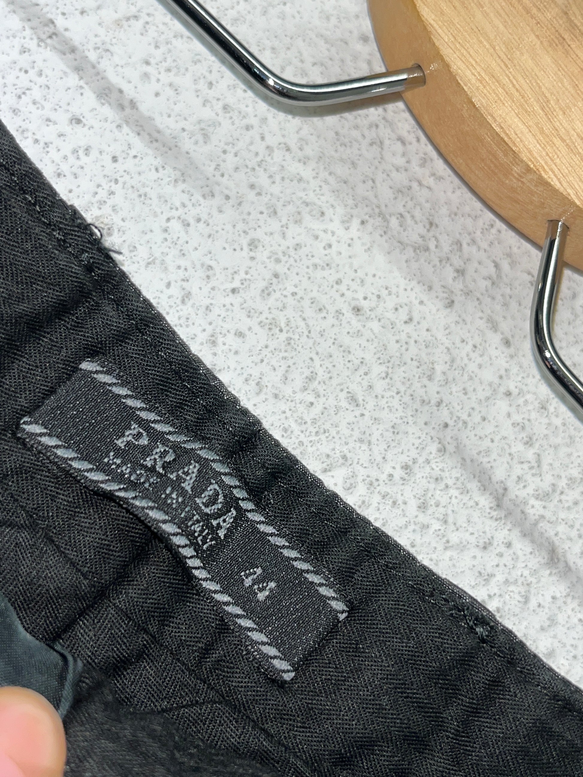 PRADA grey slim fit pleated trousers, missing care label (estimated composition: silk/viscose)