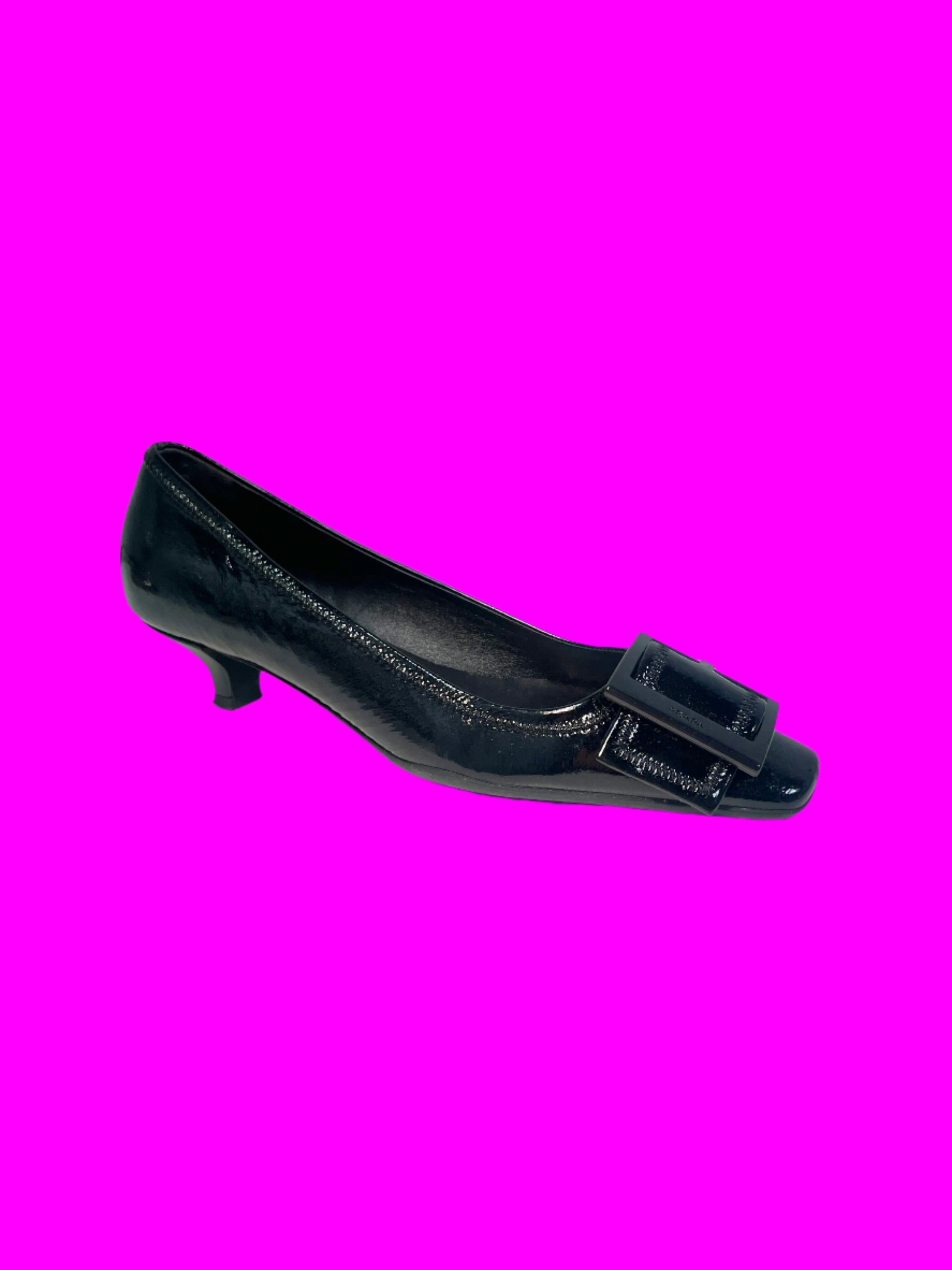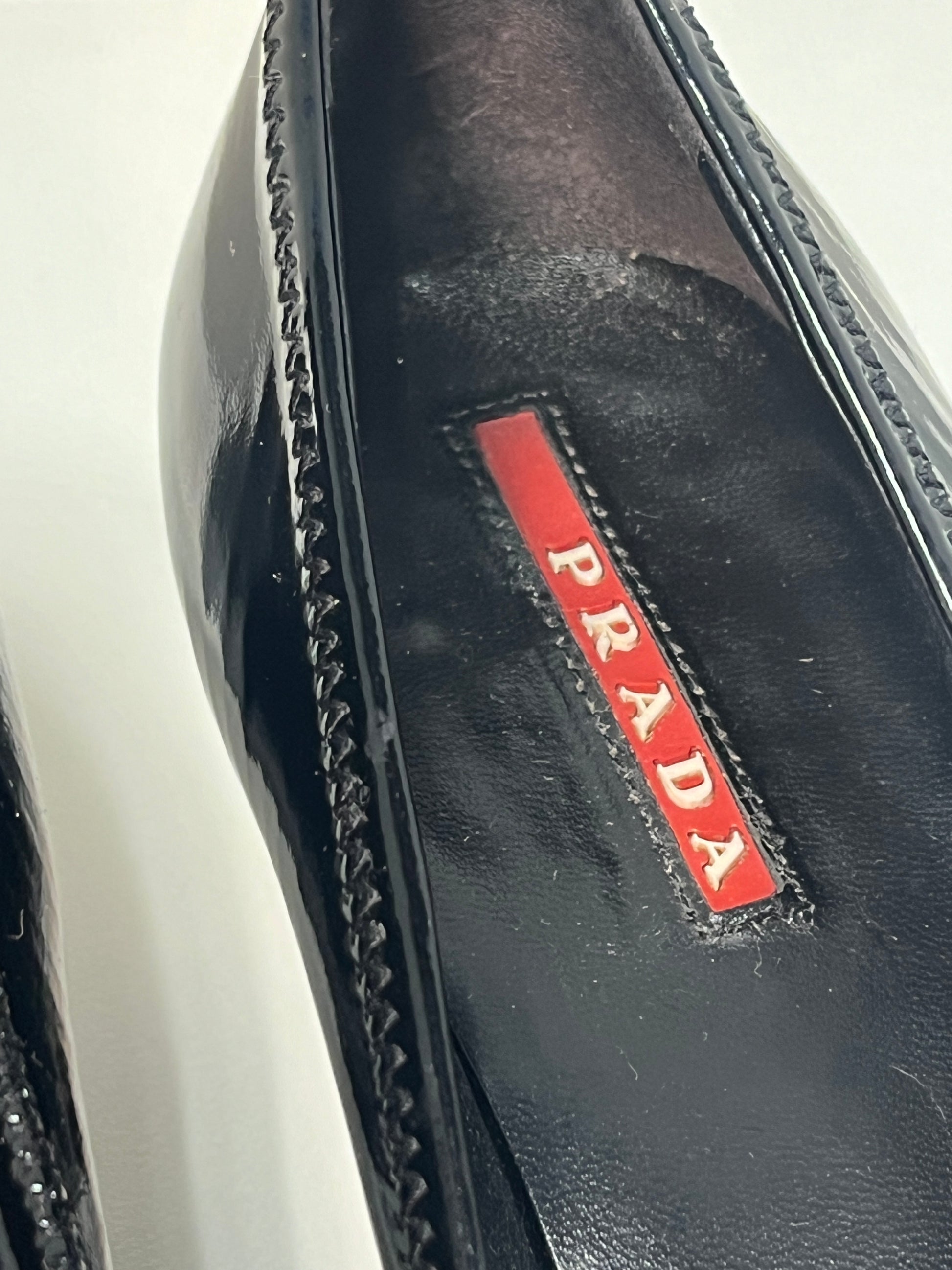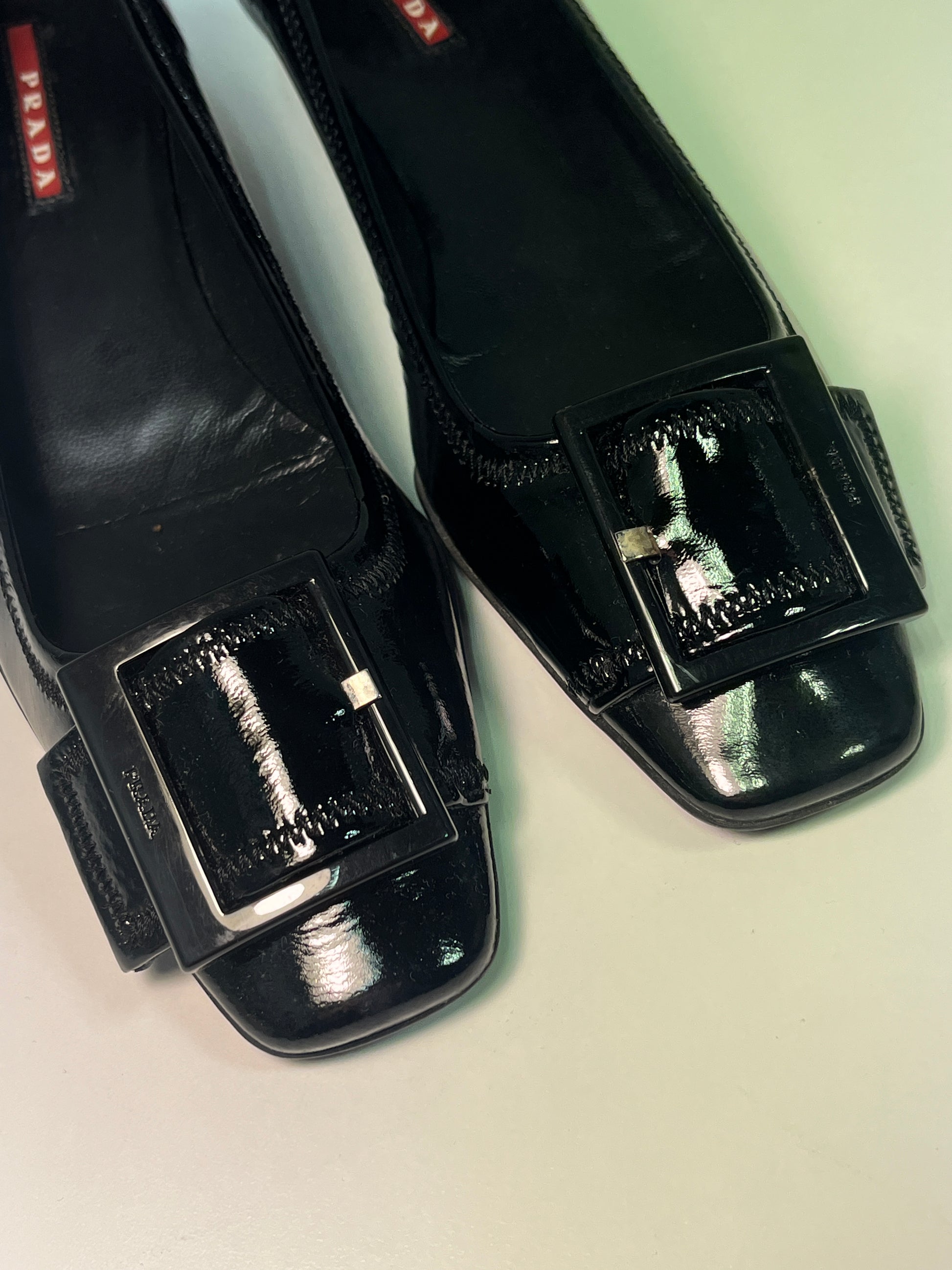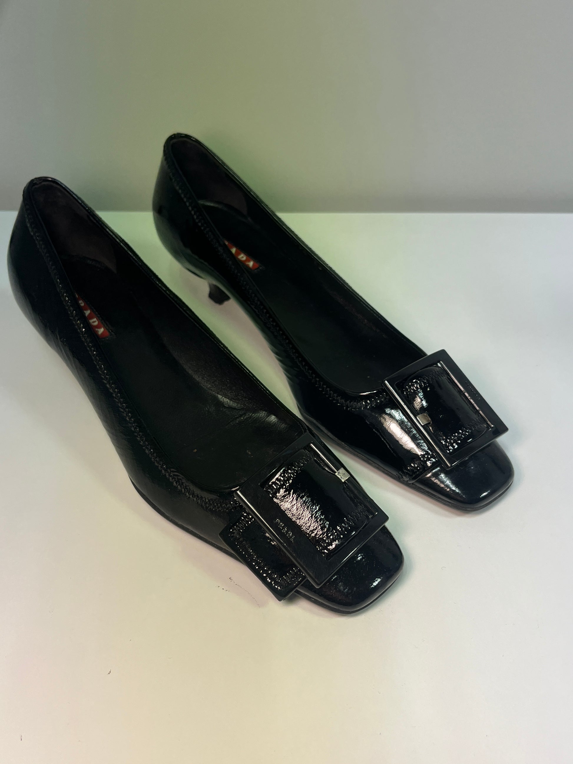 PRADA leather black buckled squared toe kitten heels (36IT/37EU)